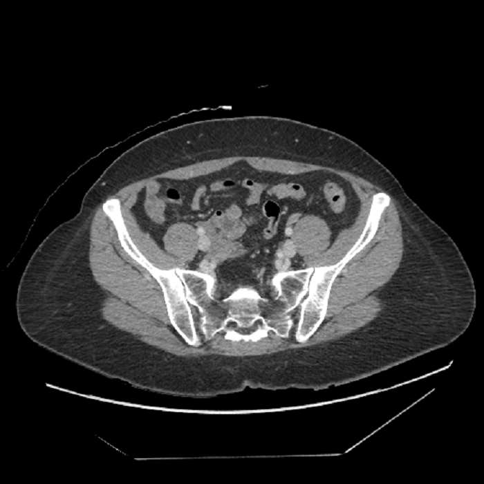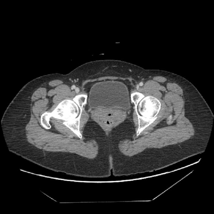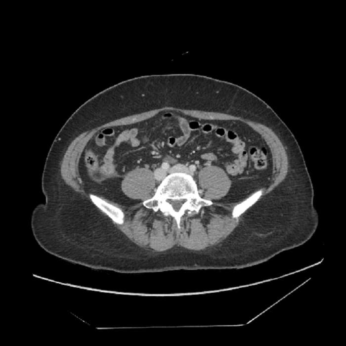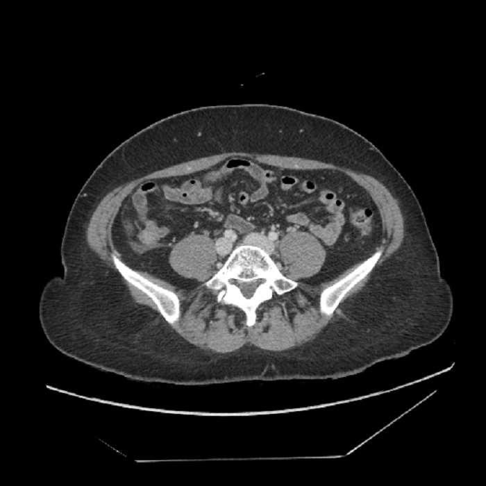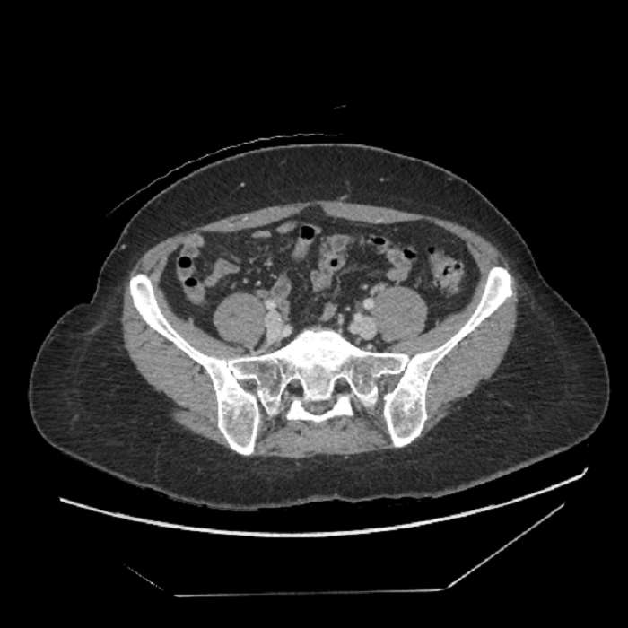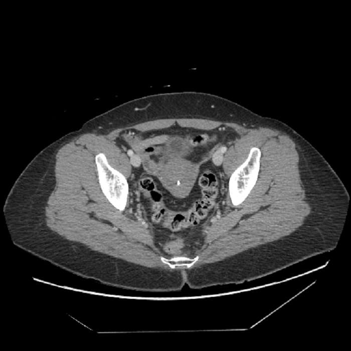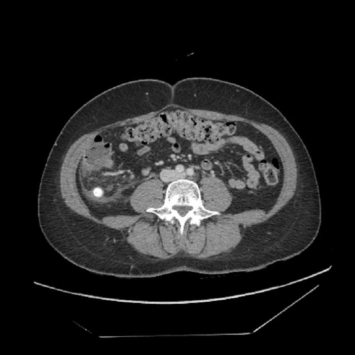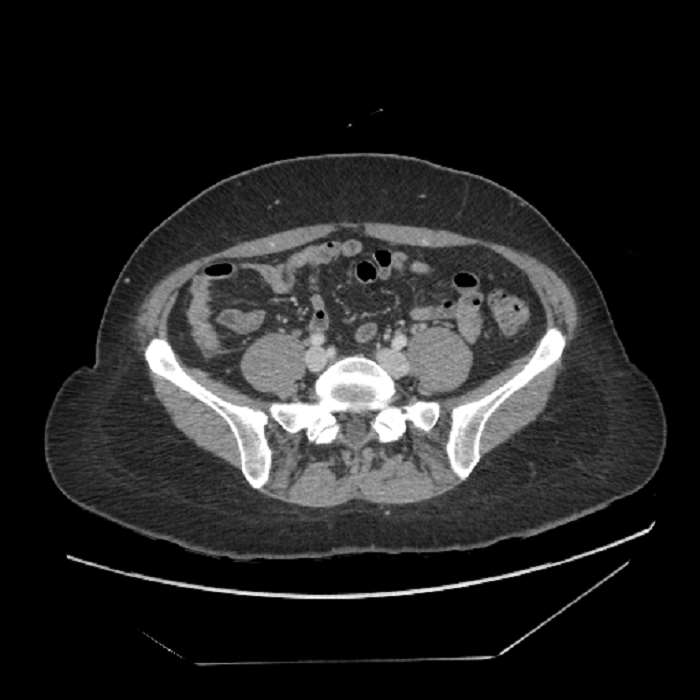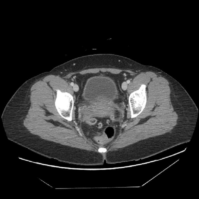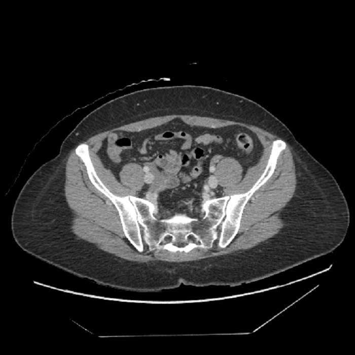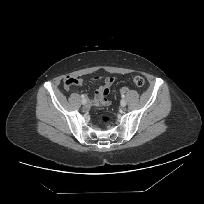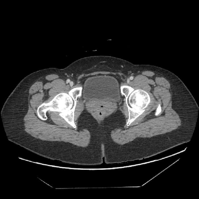 | Gangrenous | Right lower quadrant pain | Areas of mural hypoenhancement |
