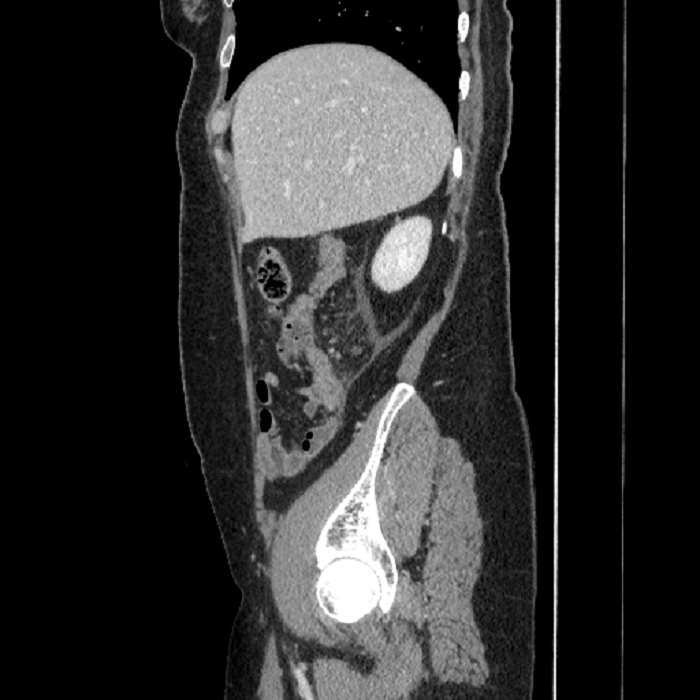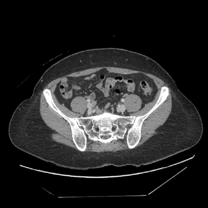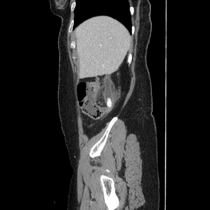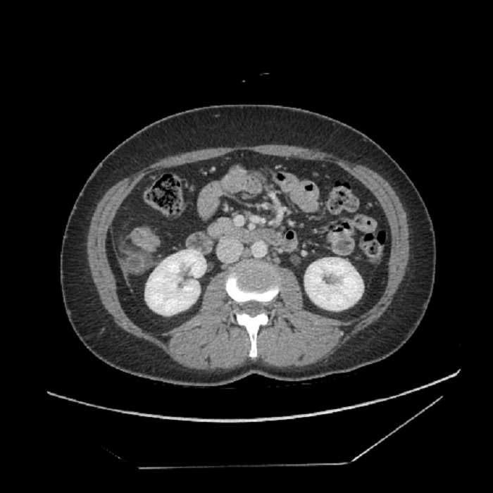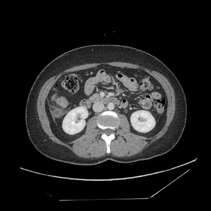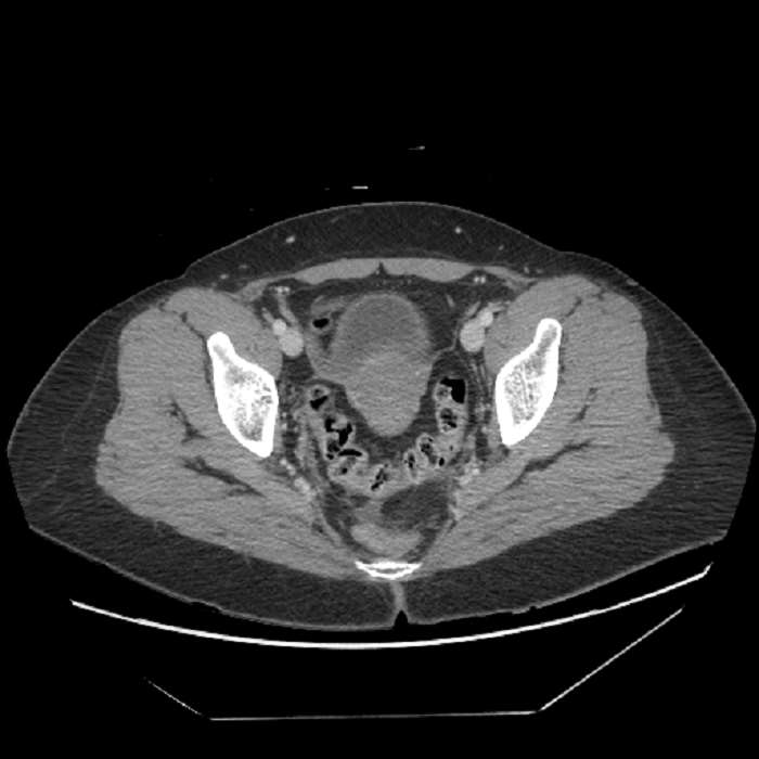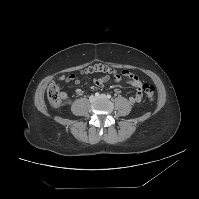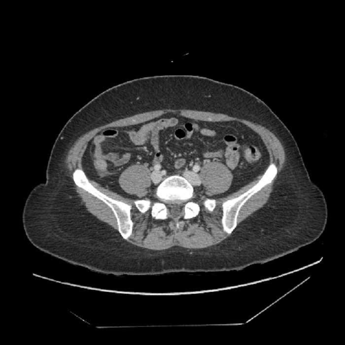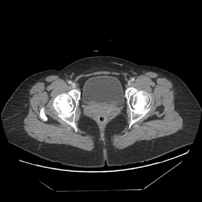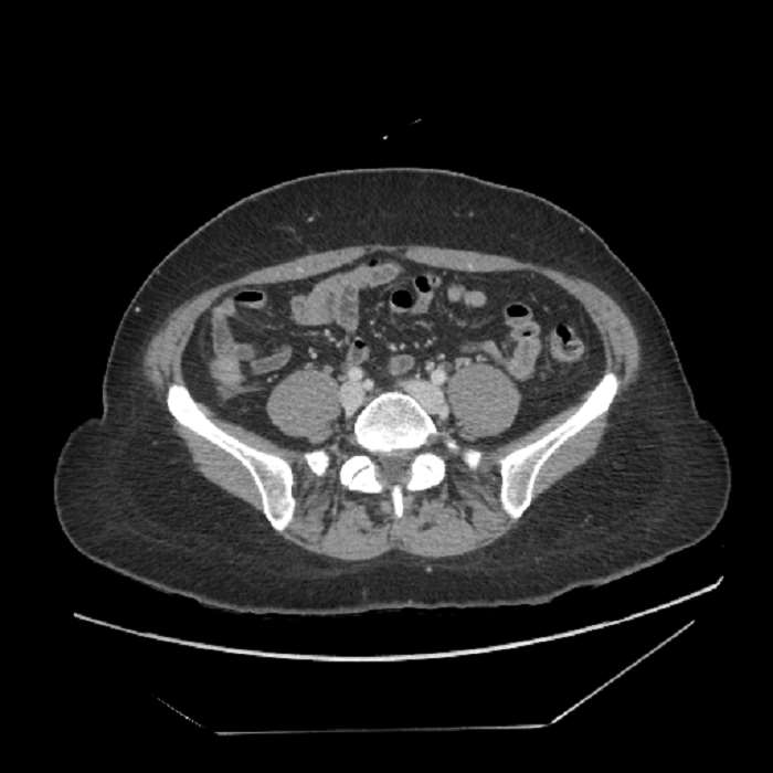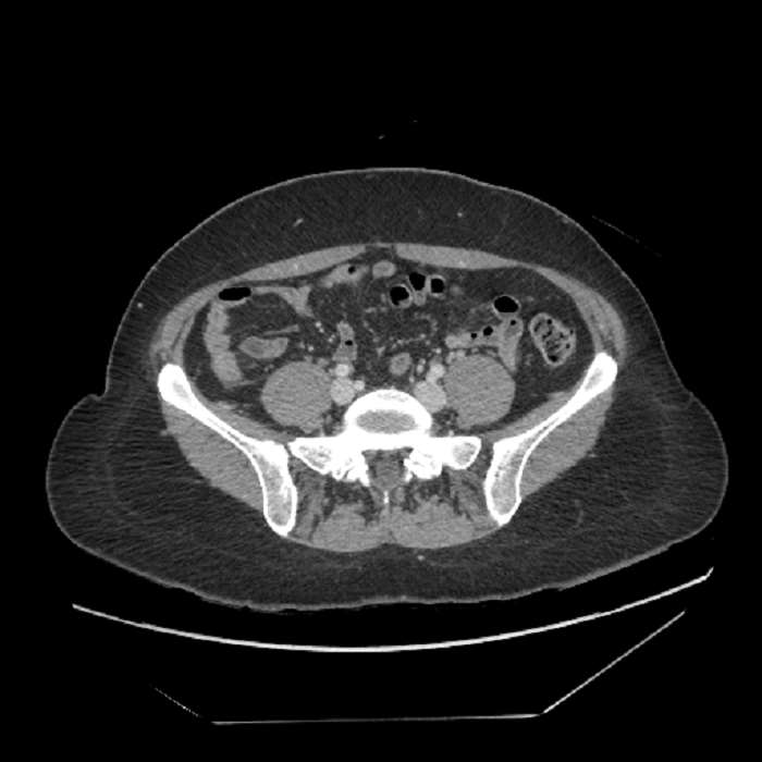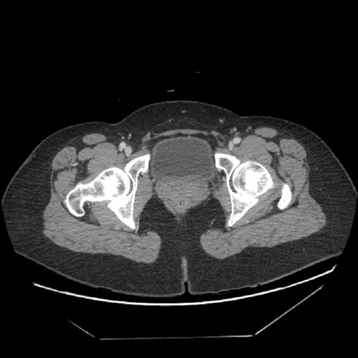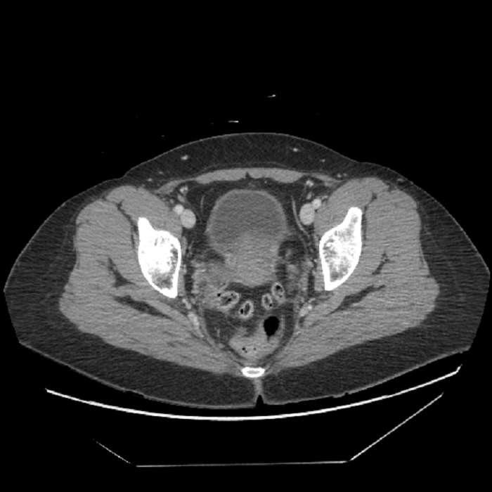 | Gangrenous | Right lower quadrant pain | Areas of mural hypoenhancement |