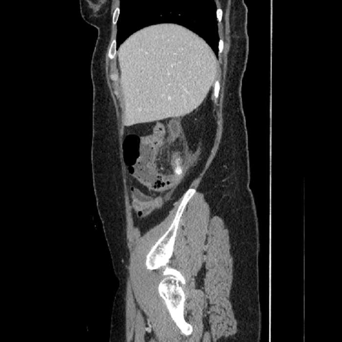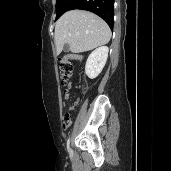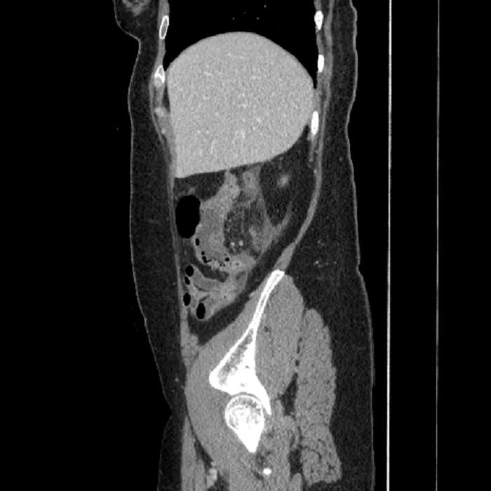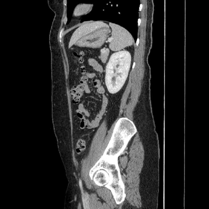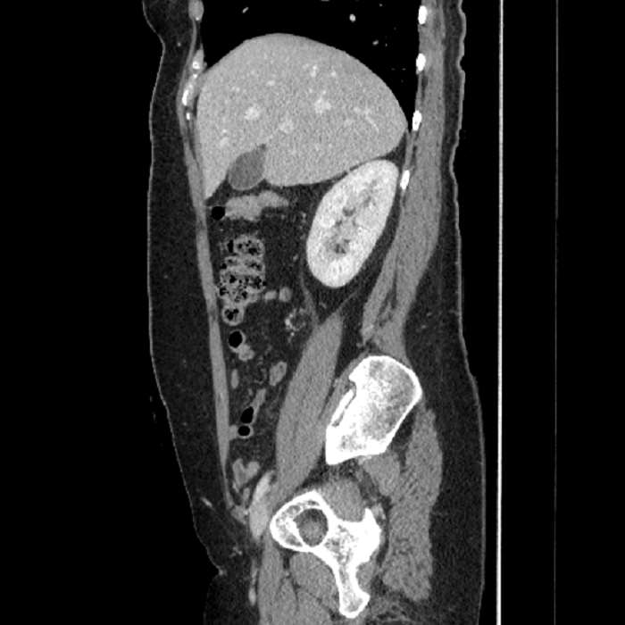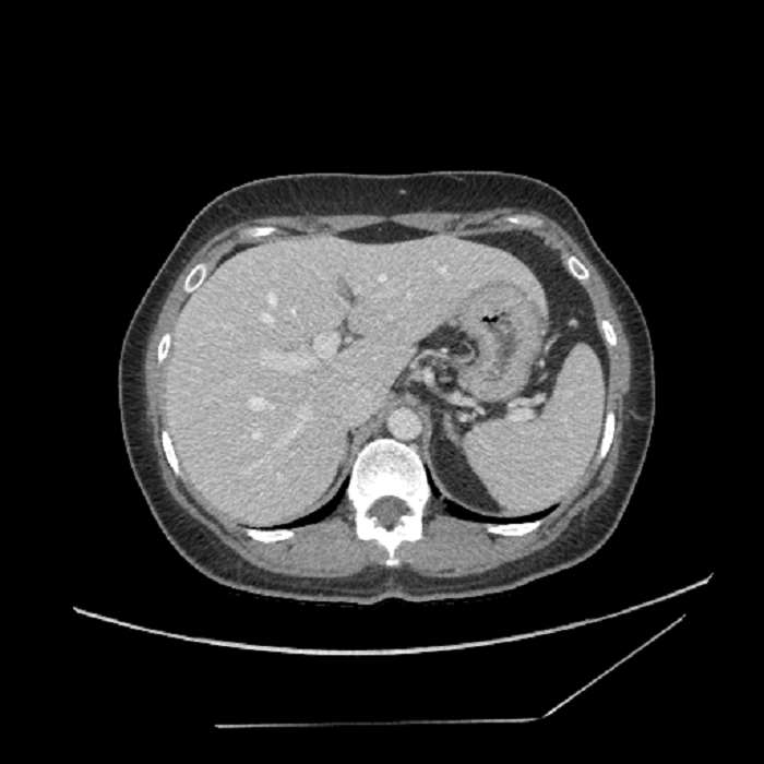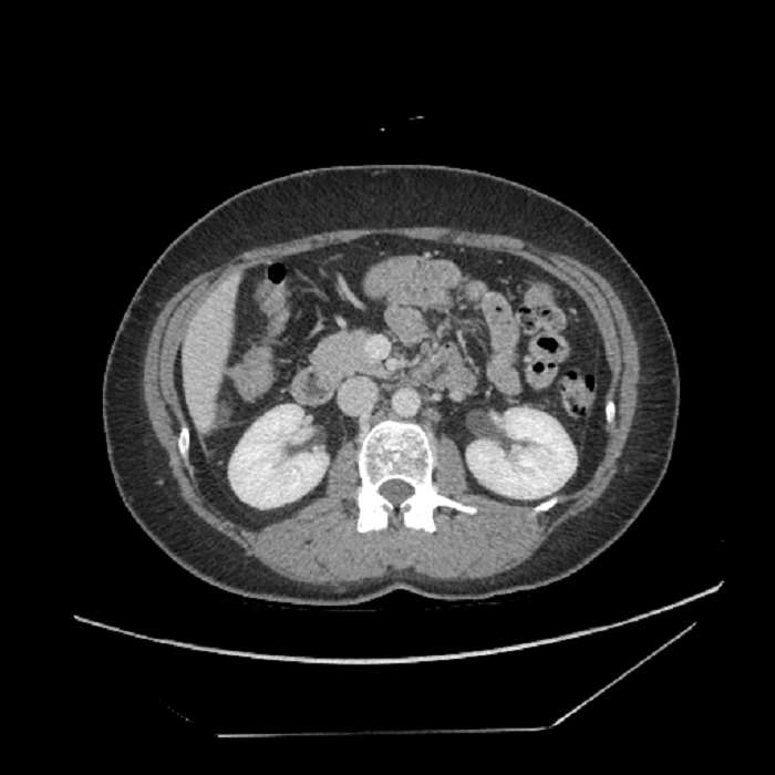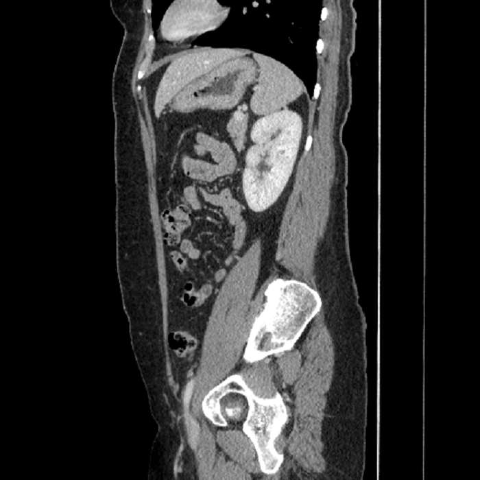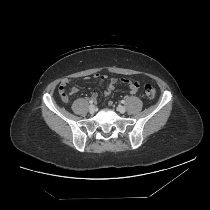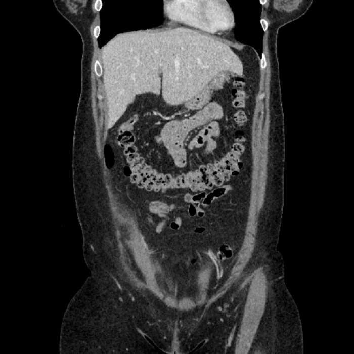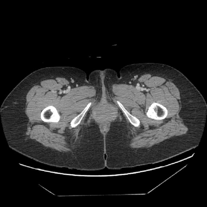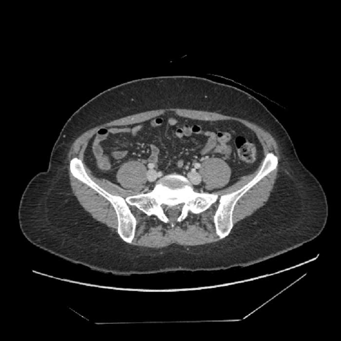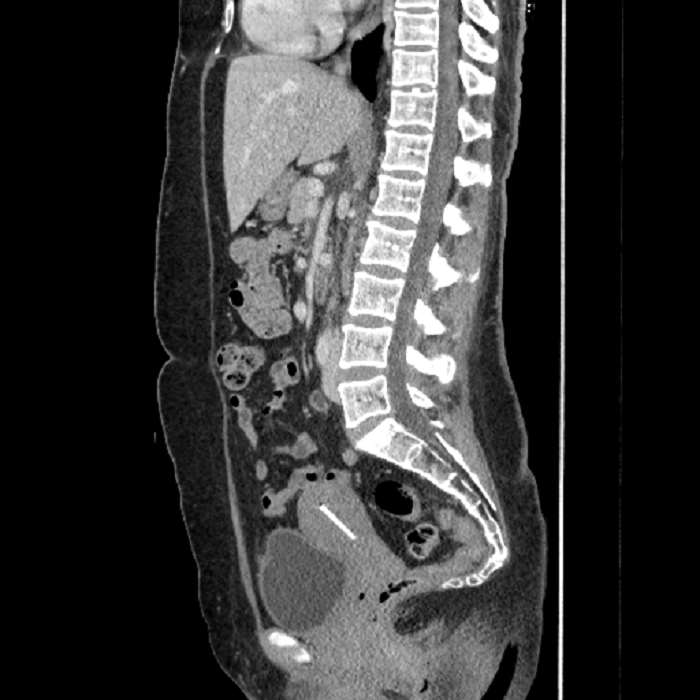 | Gangrenous | Right lower quadrant pain | Areas of mural hypoenhancement |