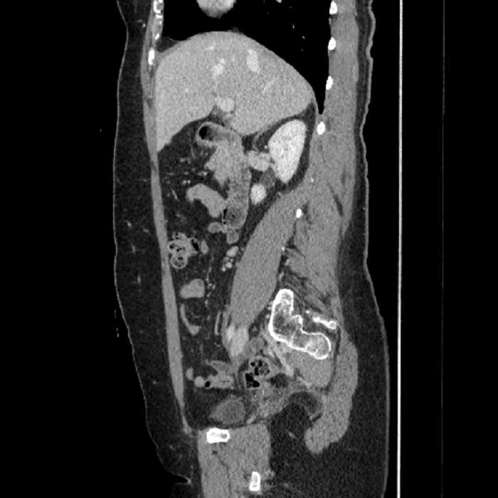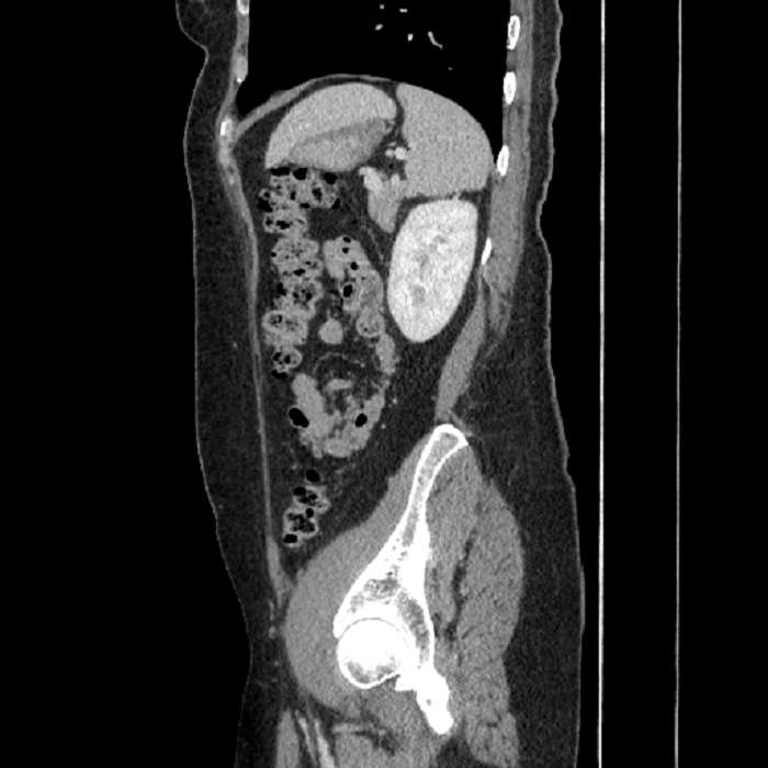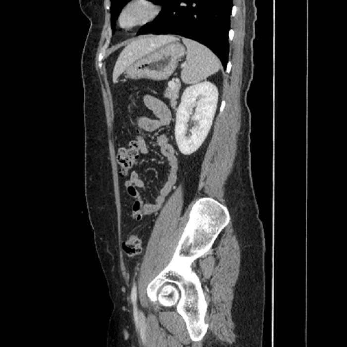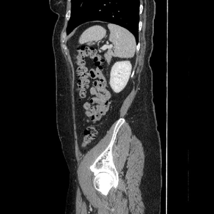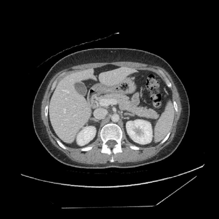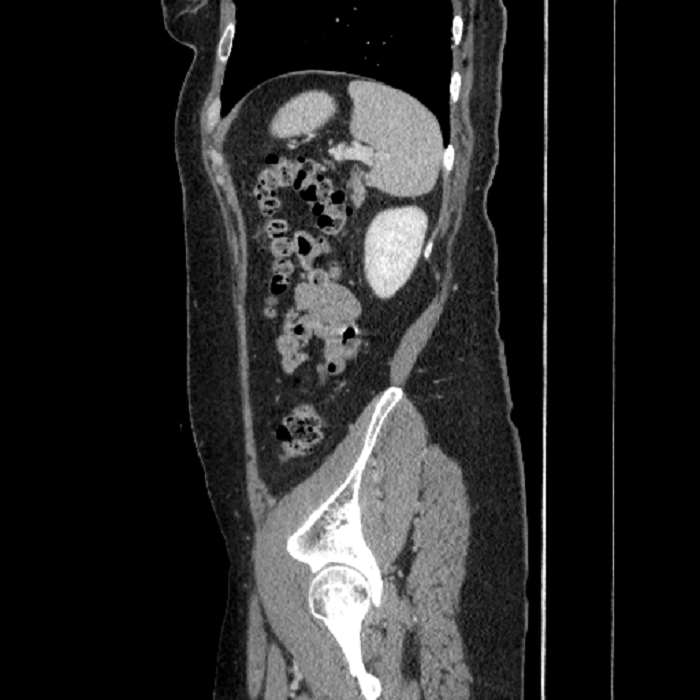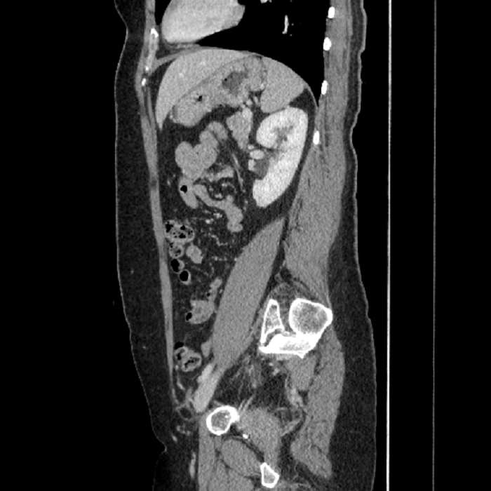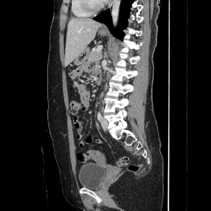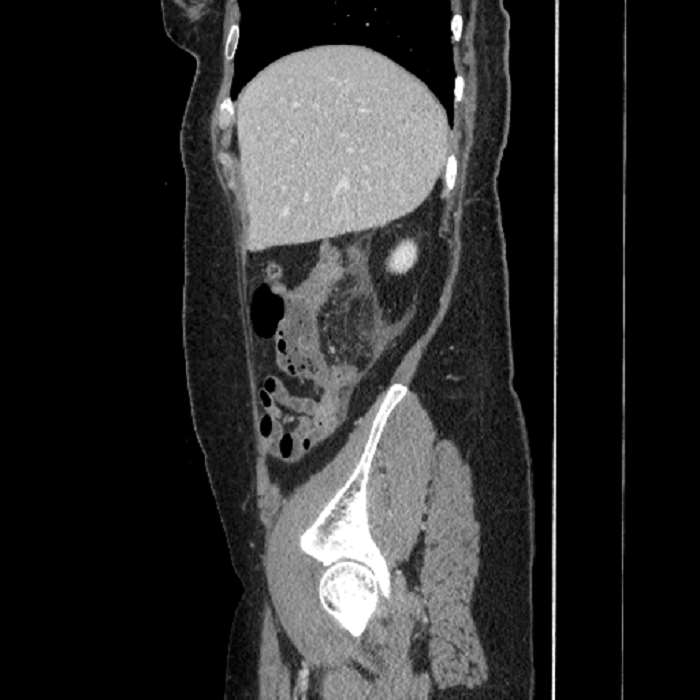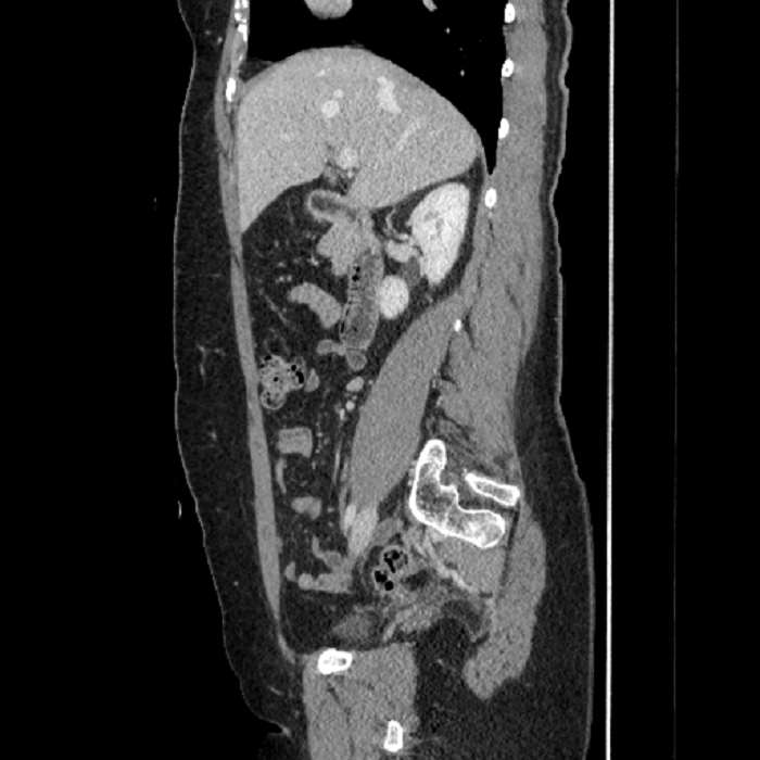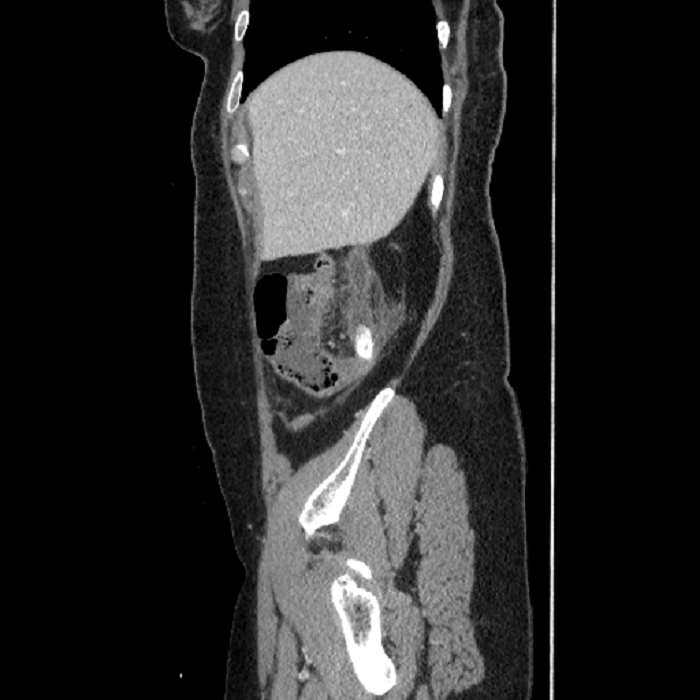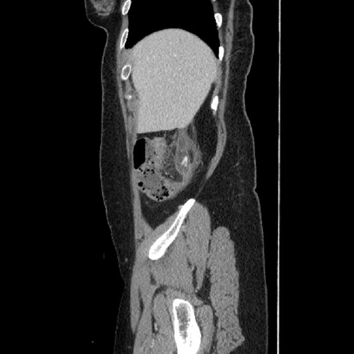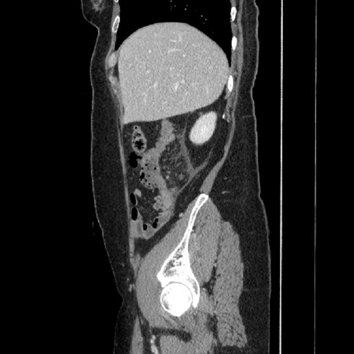 | Gangrenous | Right lower quadrant pain | Areas of mural hypoenhancement |
