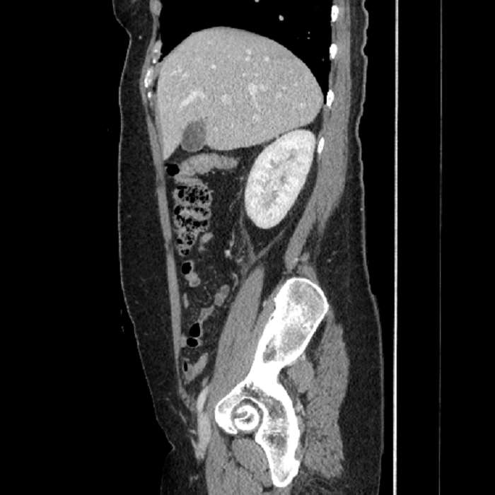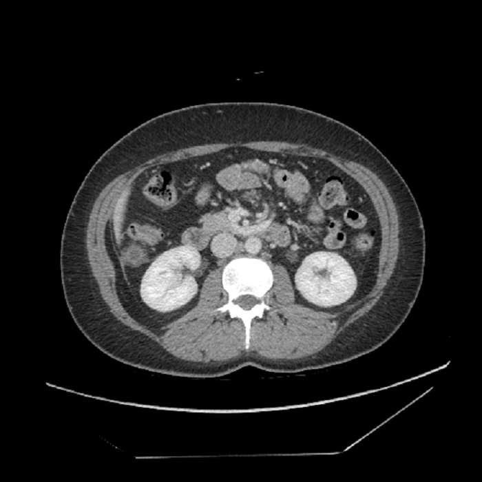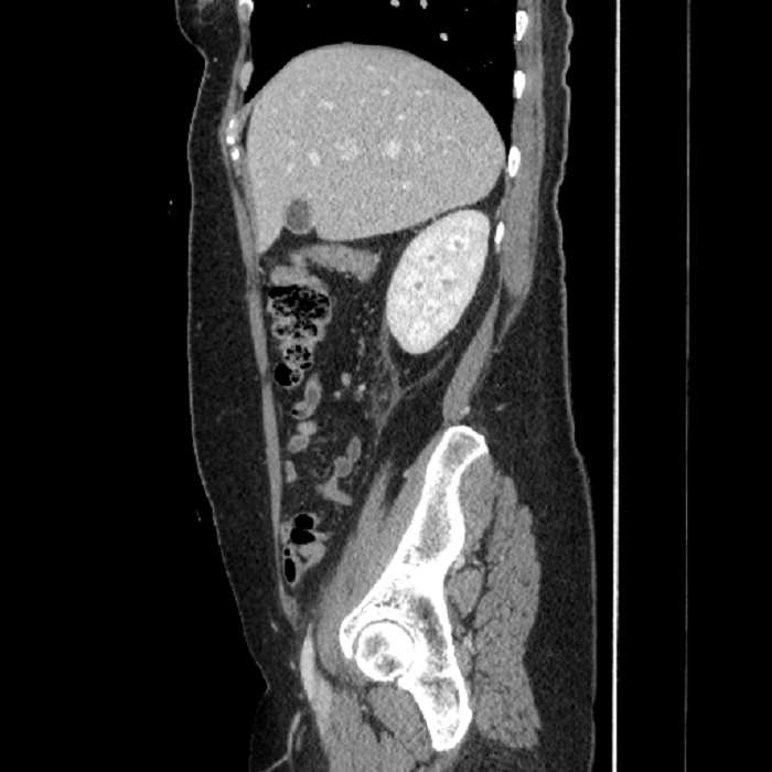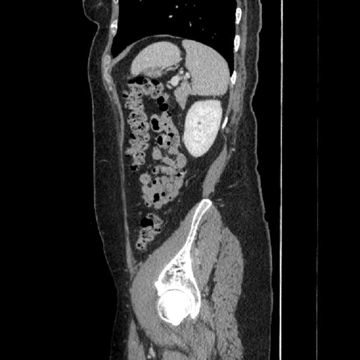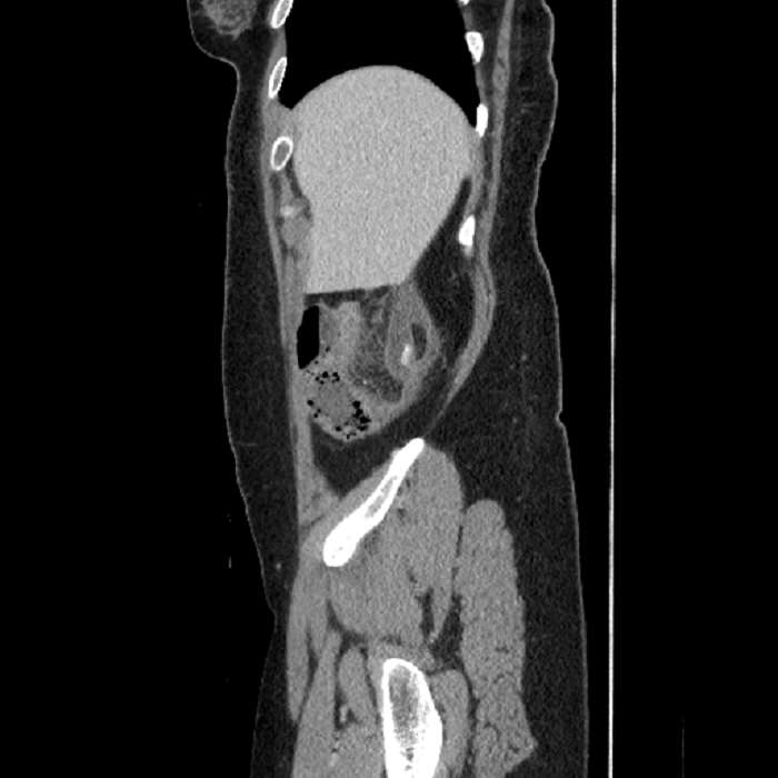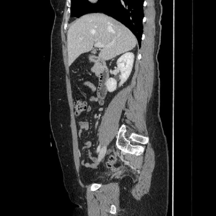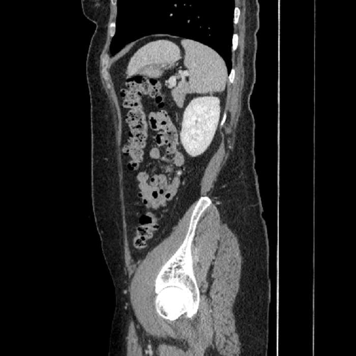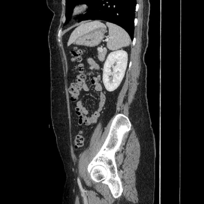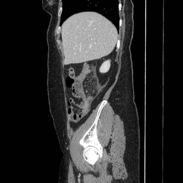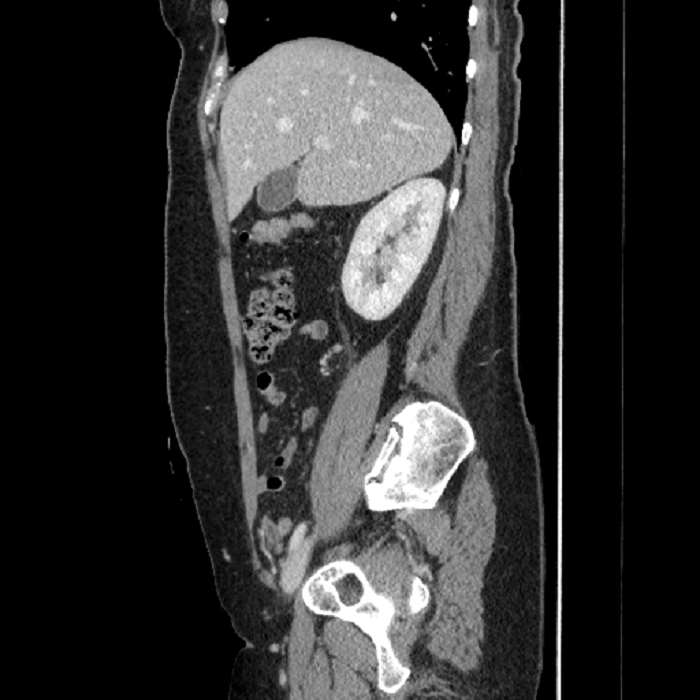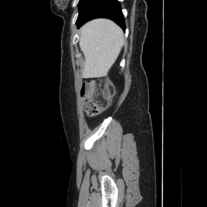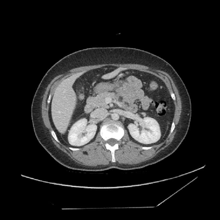 | Gangrenous | Right lower quadrant pain | Areas of mural hypoenhancement |