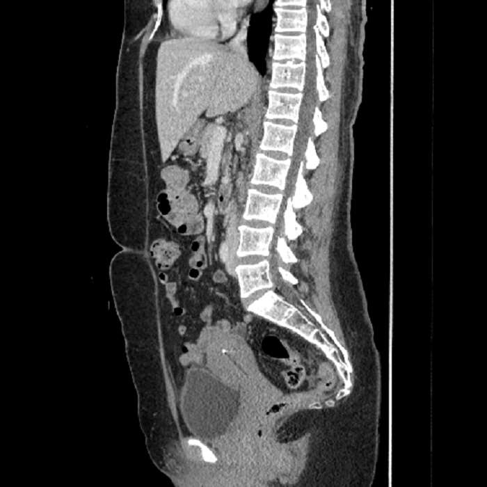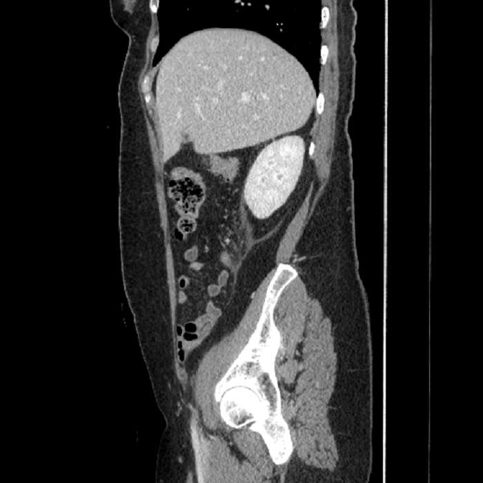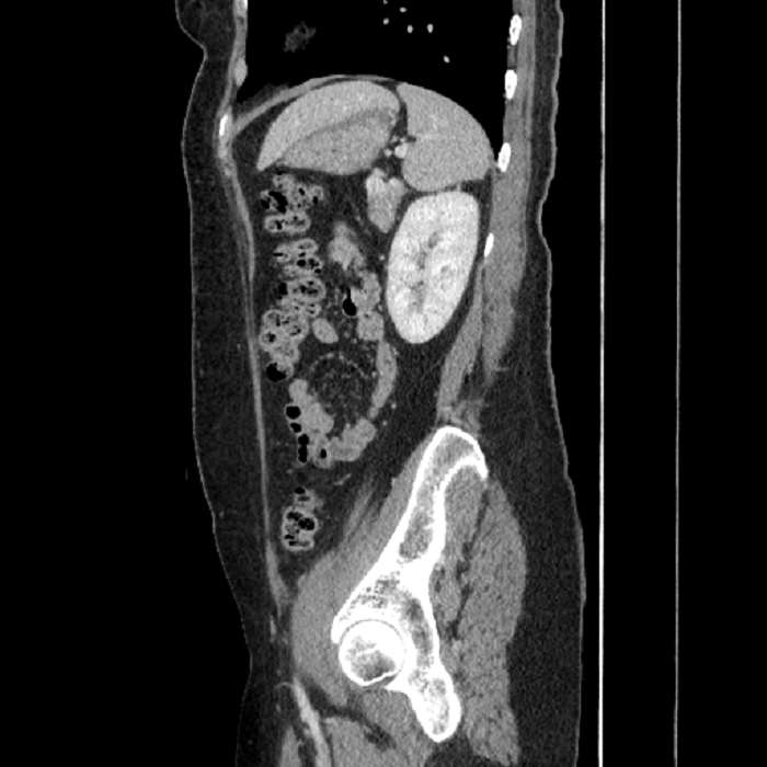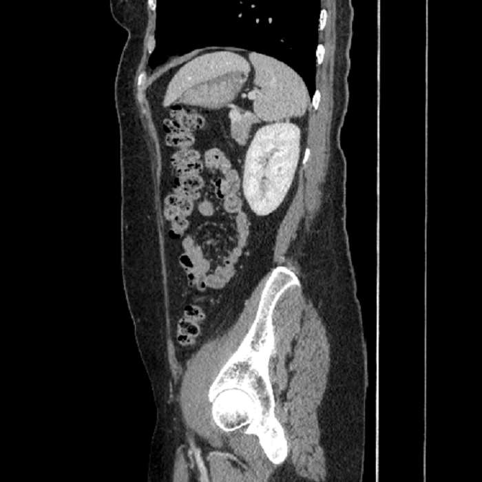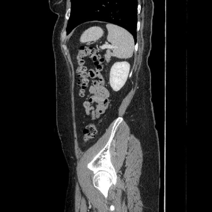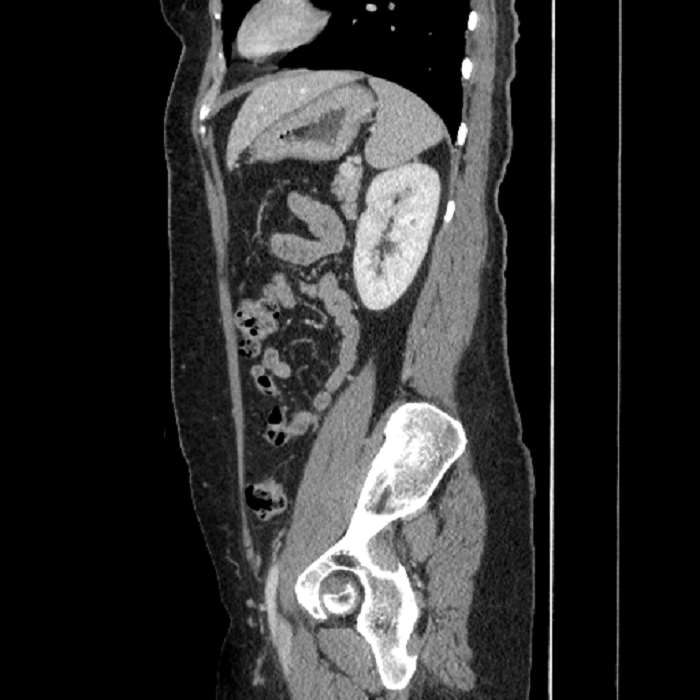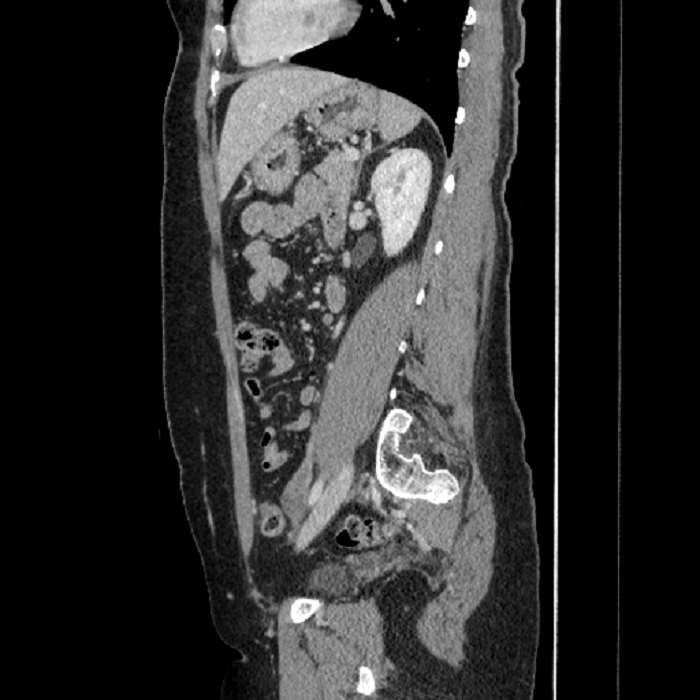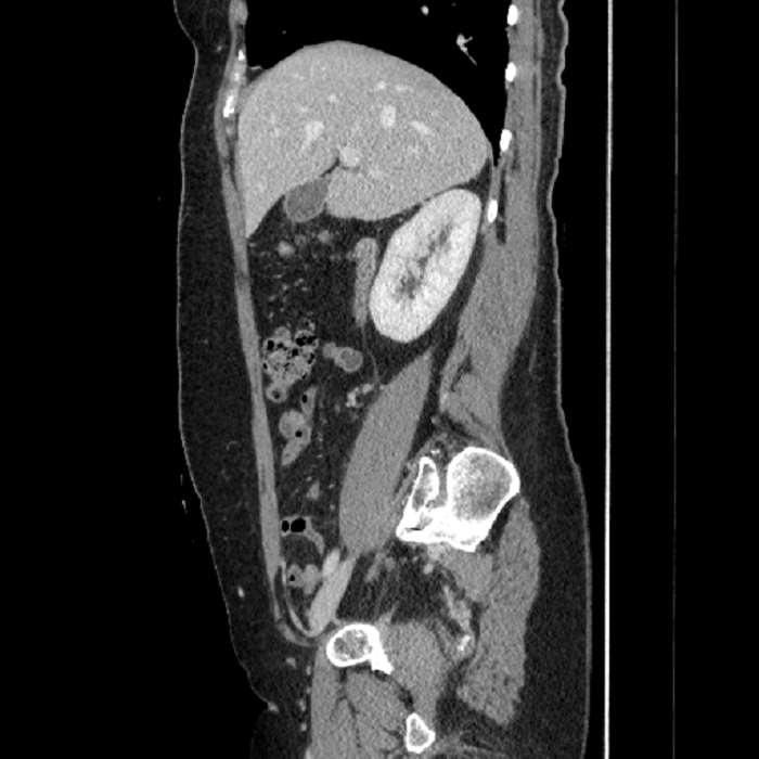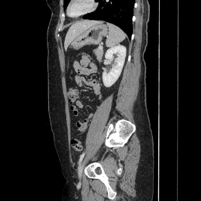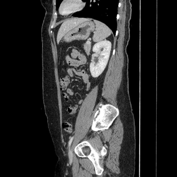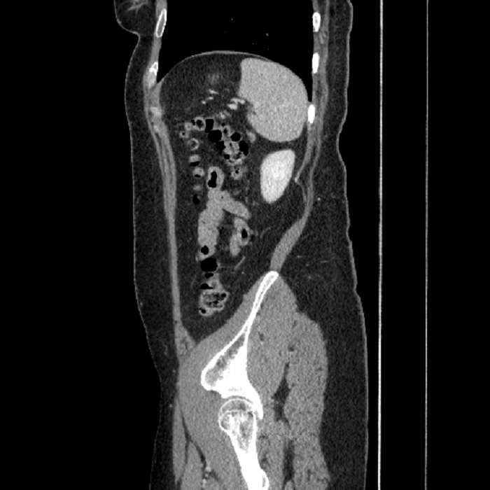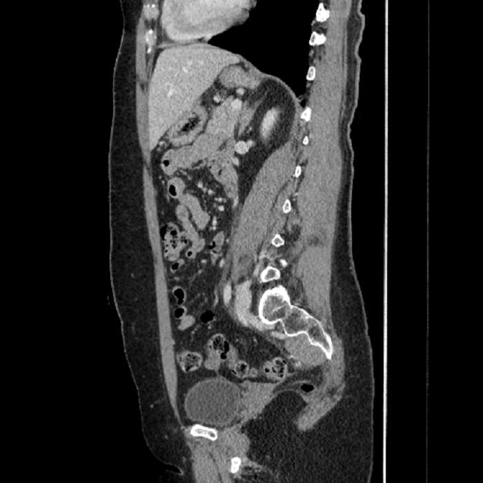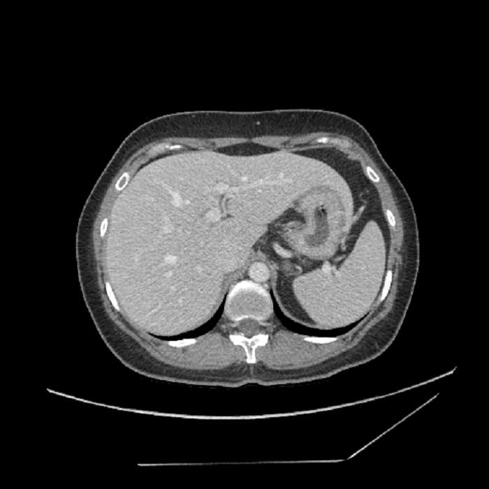 | Gangrenous | Right lower quadrant pain | Areas of mural hypoenhancement |