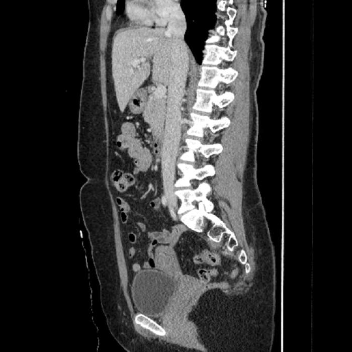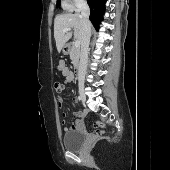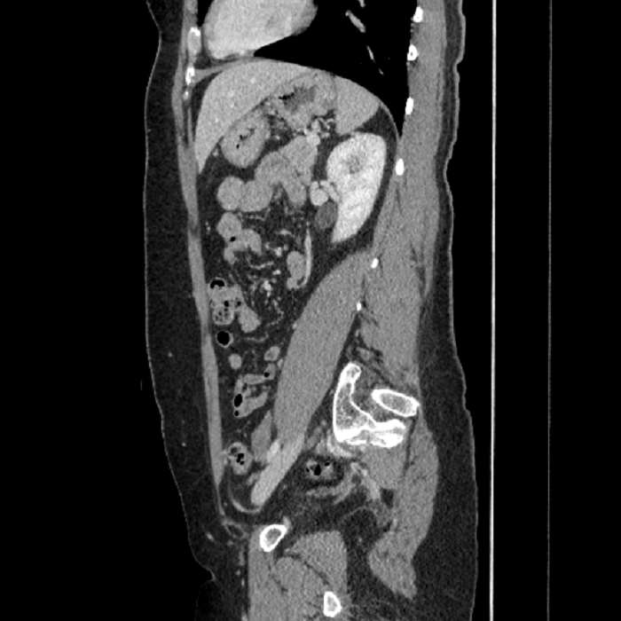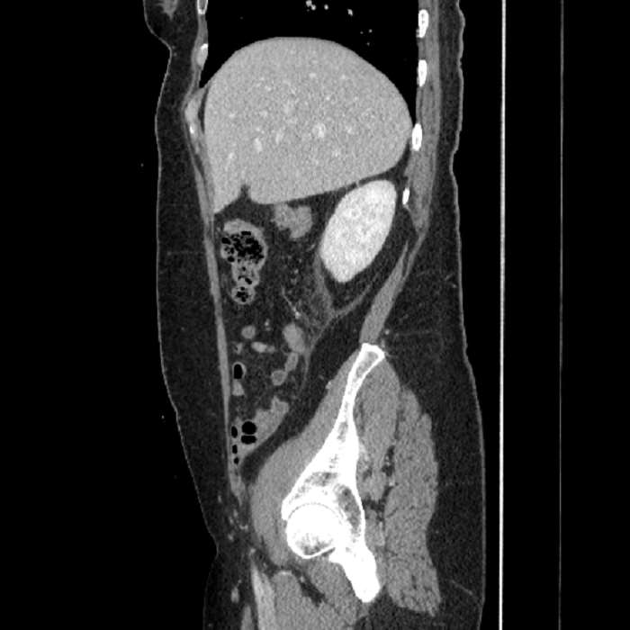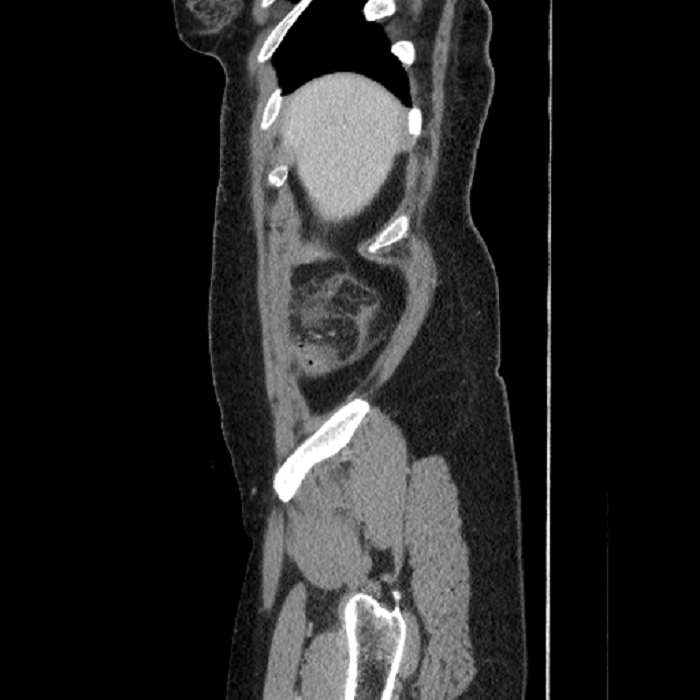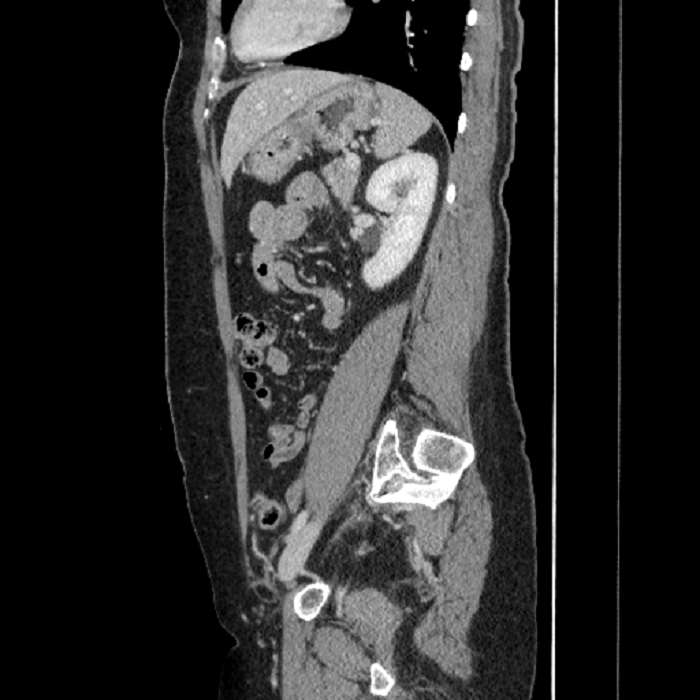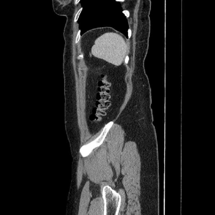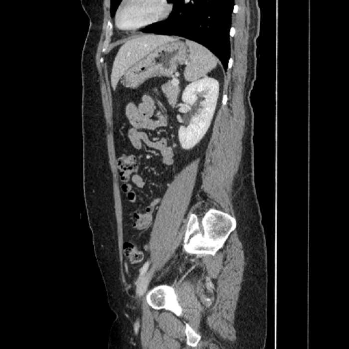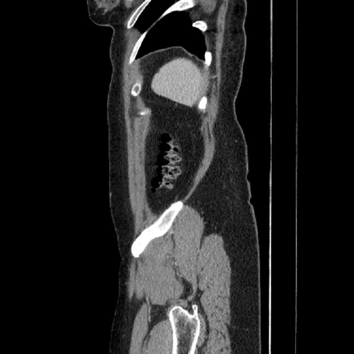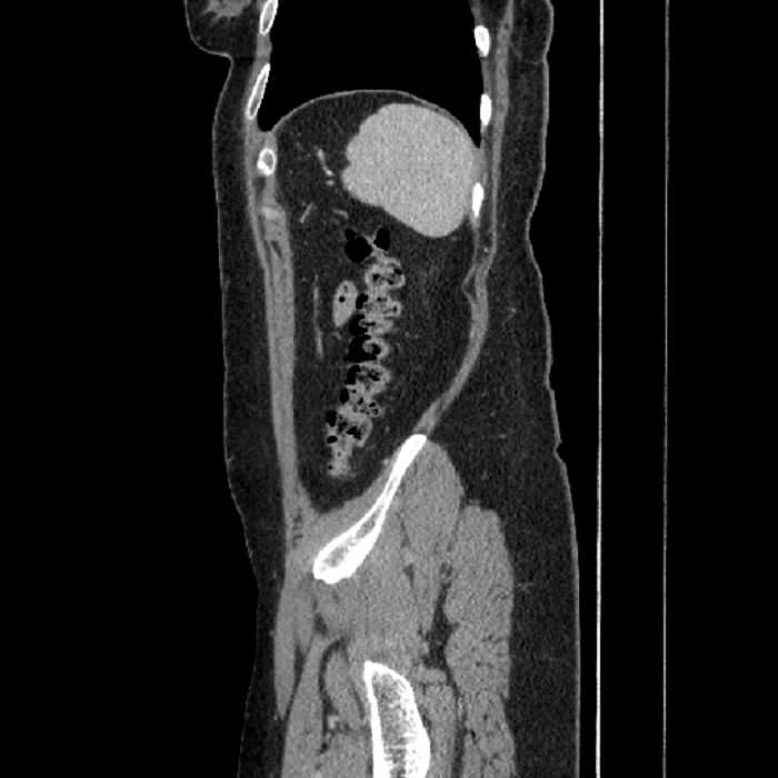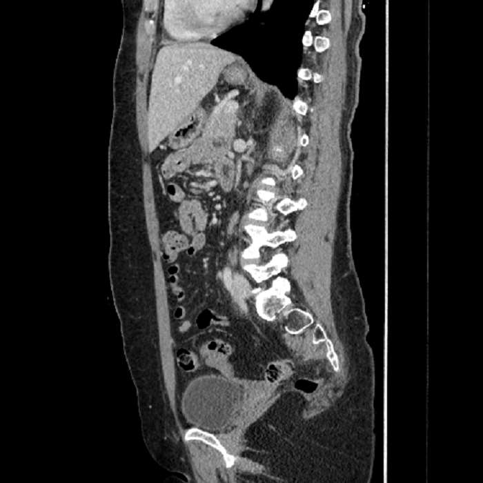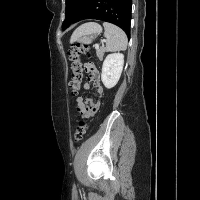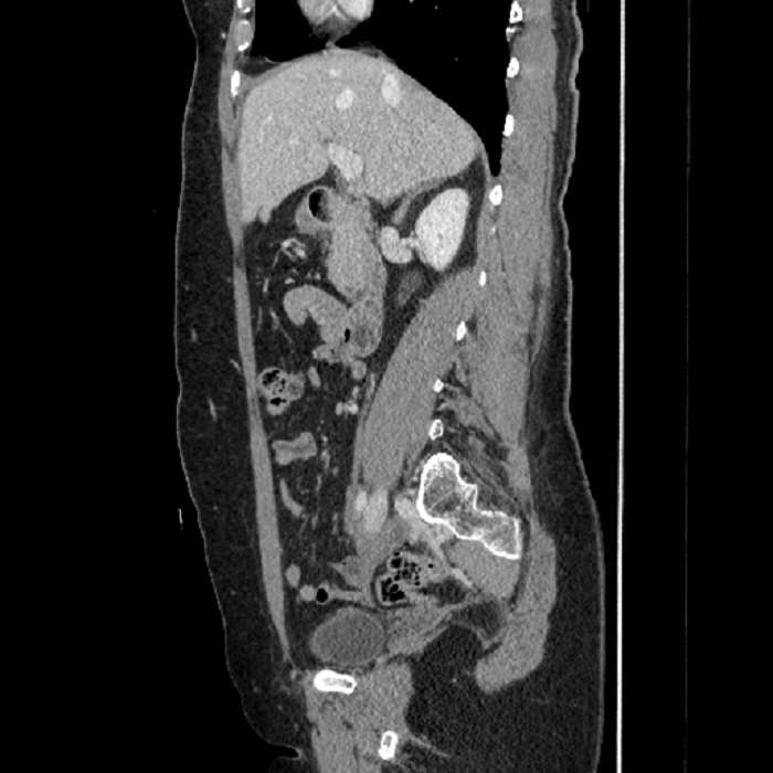 | Gangrenous | Right lower quadrant pain | Areas of mural hypoenhancement |