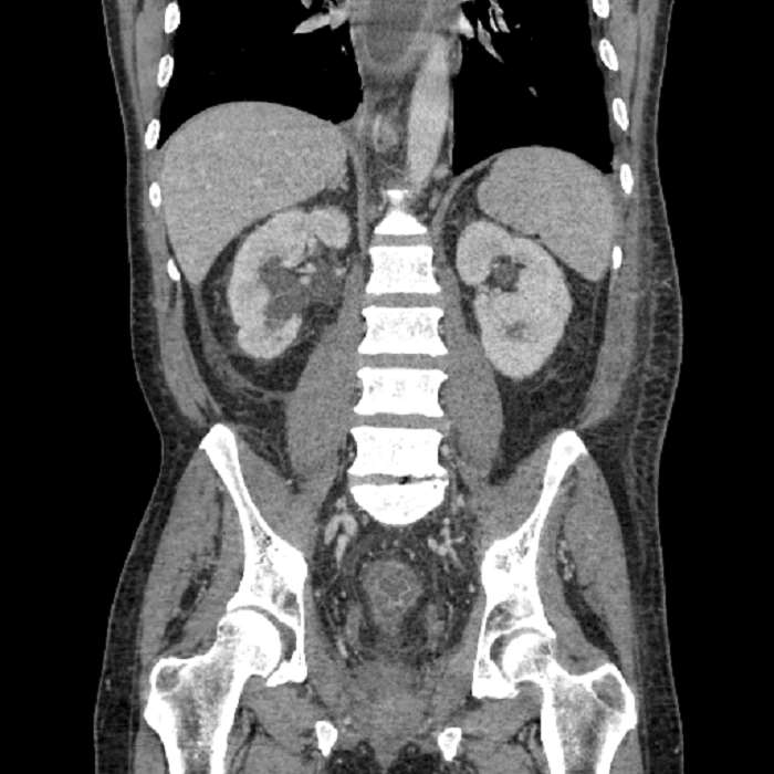 Mild fullness of the bilateral renal collecting systems with urothelial thickening and enhancement of both ureters. While this could be secondary to adjacent inflammation, recommend correlation with urinalysis if there is clinical concern for urinary tract infection.