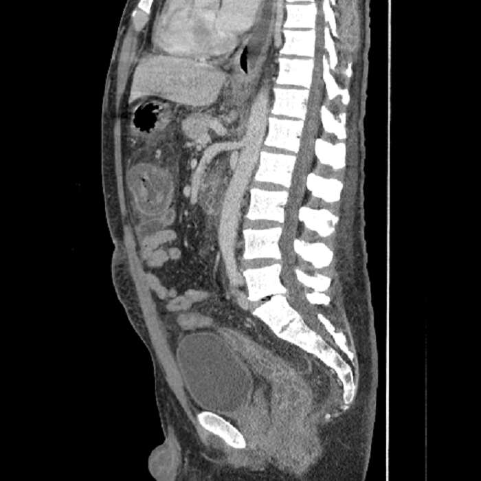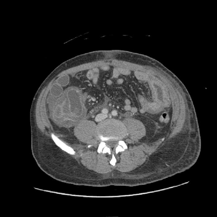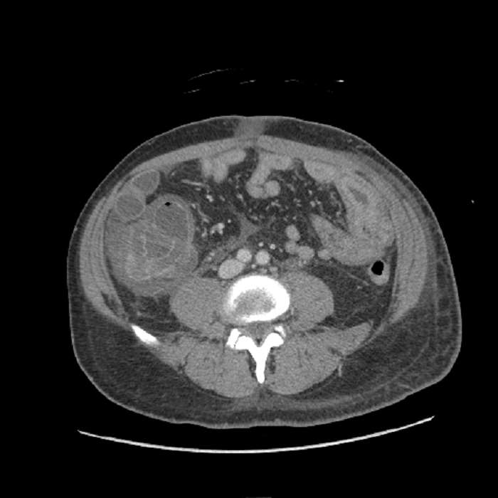 Indication: Abdominal pain, recent appendectomy, history of lupus