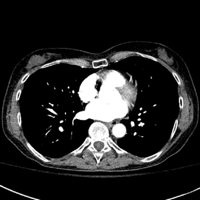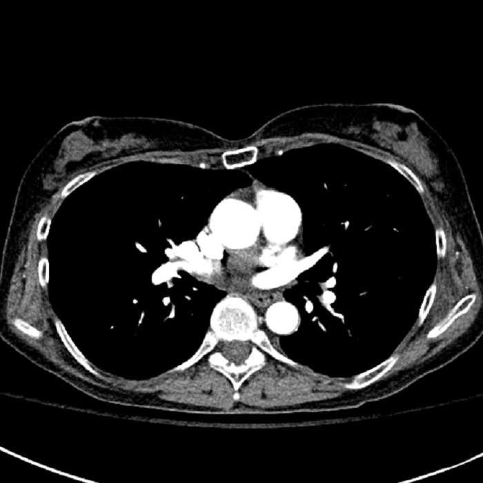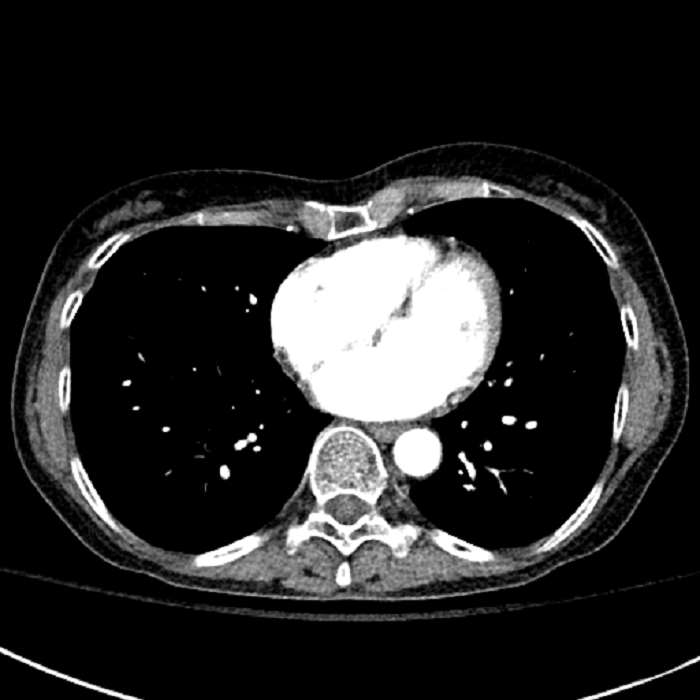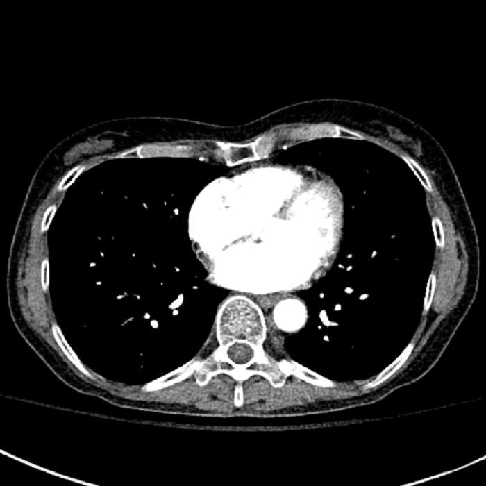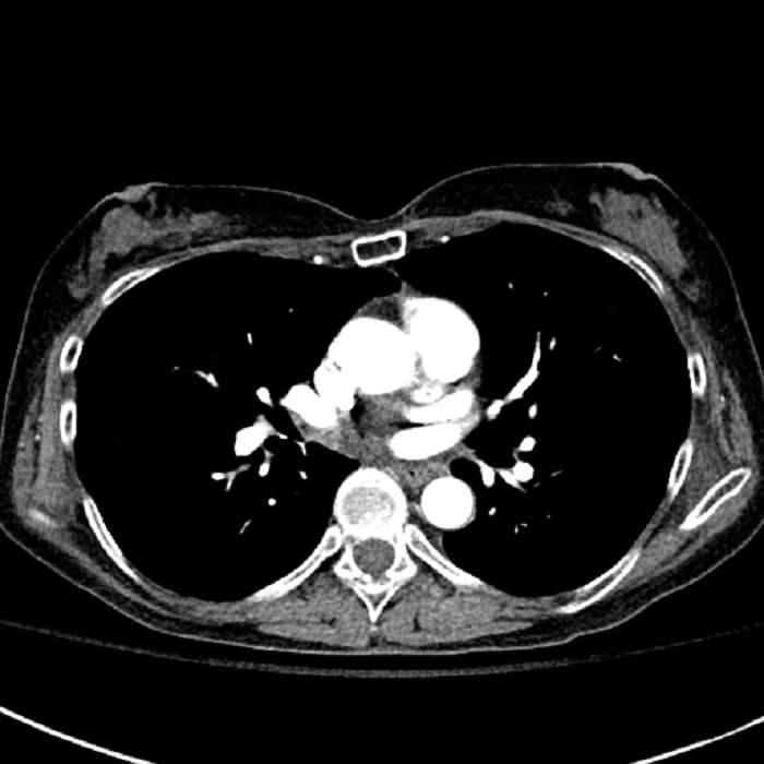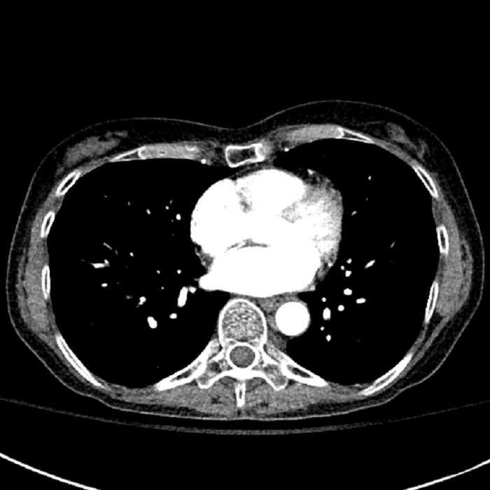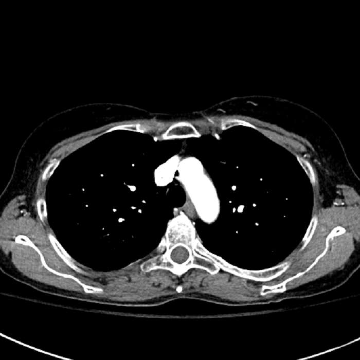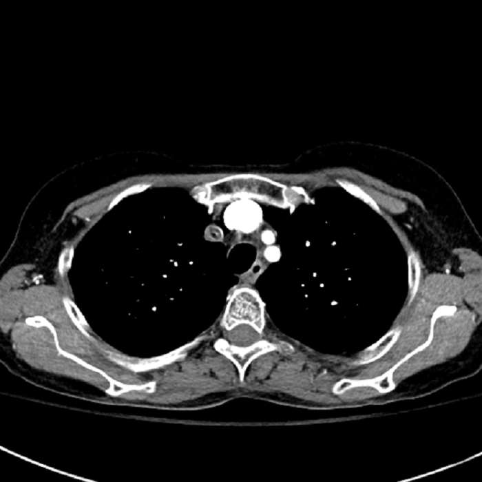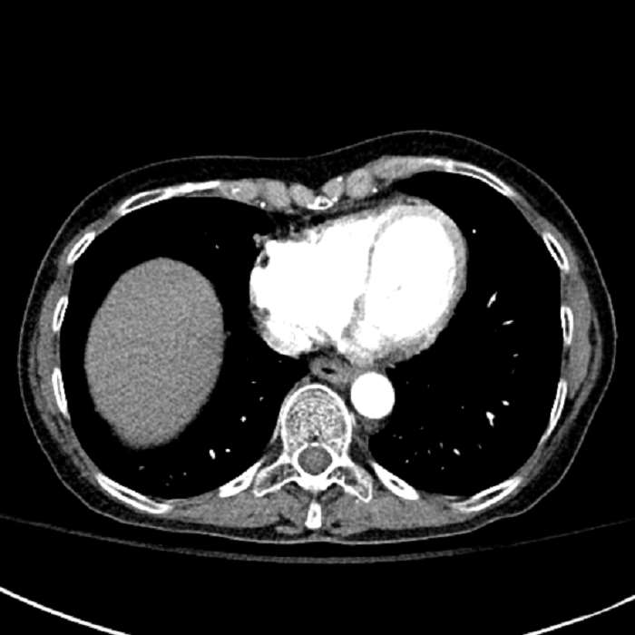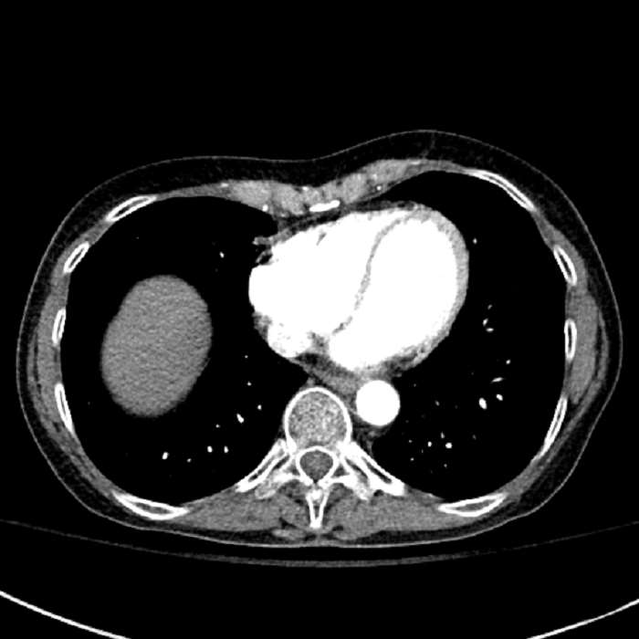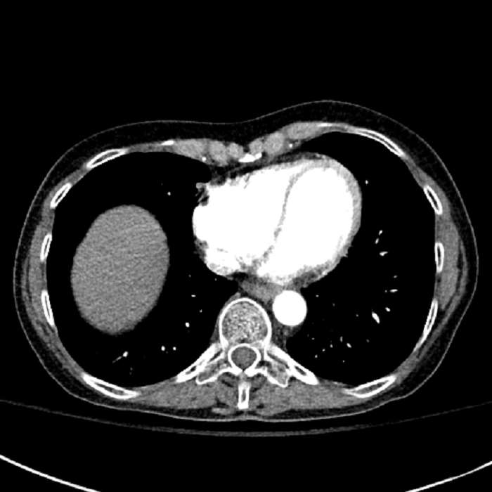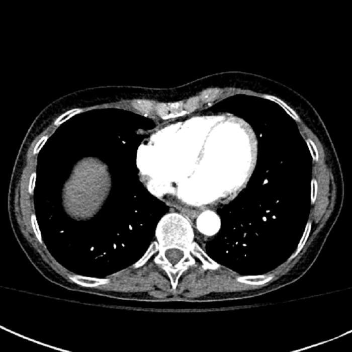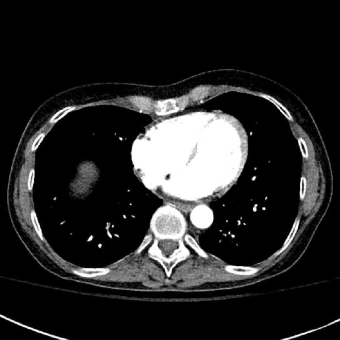 10 mm right middle lobe nodule. Recommend correlation with prior imaging if available to document stability. Otherwise, consider PET/CT for further evaluation.