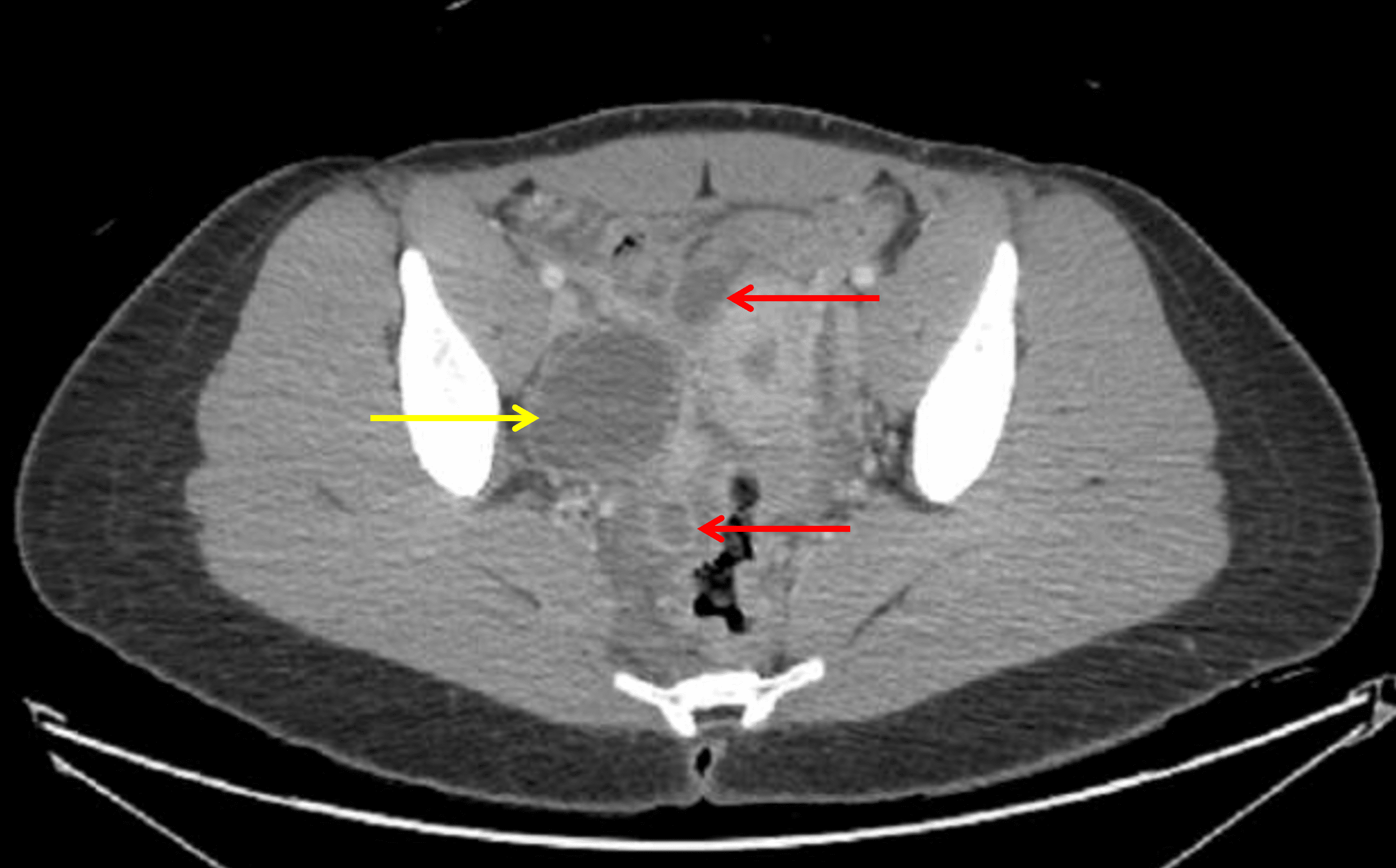 Sample ReportFindings concerning for bilateral pyosalpinx and possible right tubo-ovarian abscess. Small volume perihepatic fluid could relate to associated perihepatitis (Fitz-Hugh-Curtis syndrome).