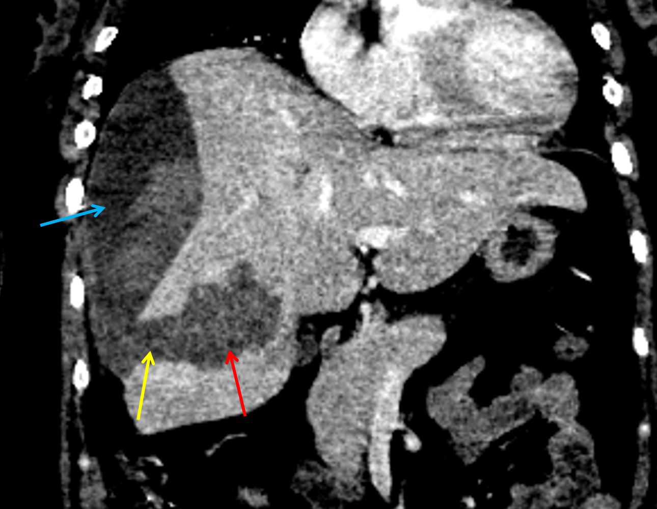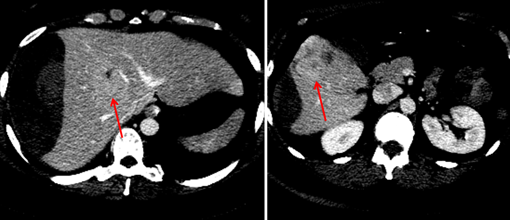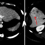 Sample ReportLarge hepatic subcapsular hematoma measuring 14 x 5 x 16 cm, which is in continuity with an intrahepatic hematoma in the inferior aspect of the right hepatic lobe measuring 6 x 6 x 7 cm. Adjacent to the parenchymal hematoma, there are ill-defined hyperenhancing hepatic lesions in segments 5 and 8, which are favored to represent adenomas in the absence of history of malignancy and are the likely source for hemorrhage. Recommend surgical evaluation and followup liver protocol MRI for further assessment.