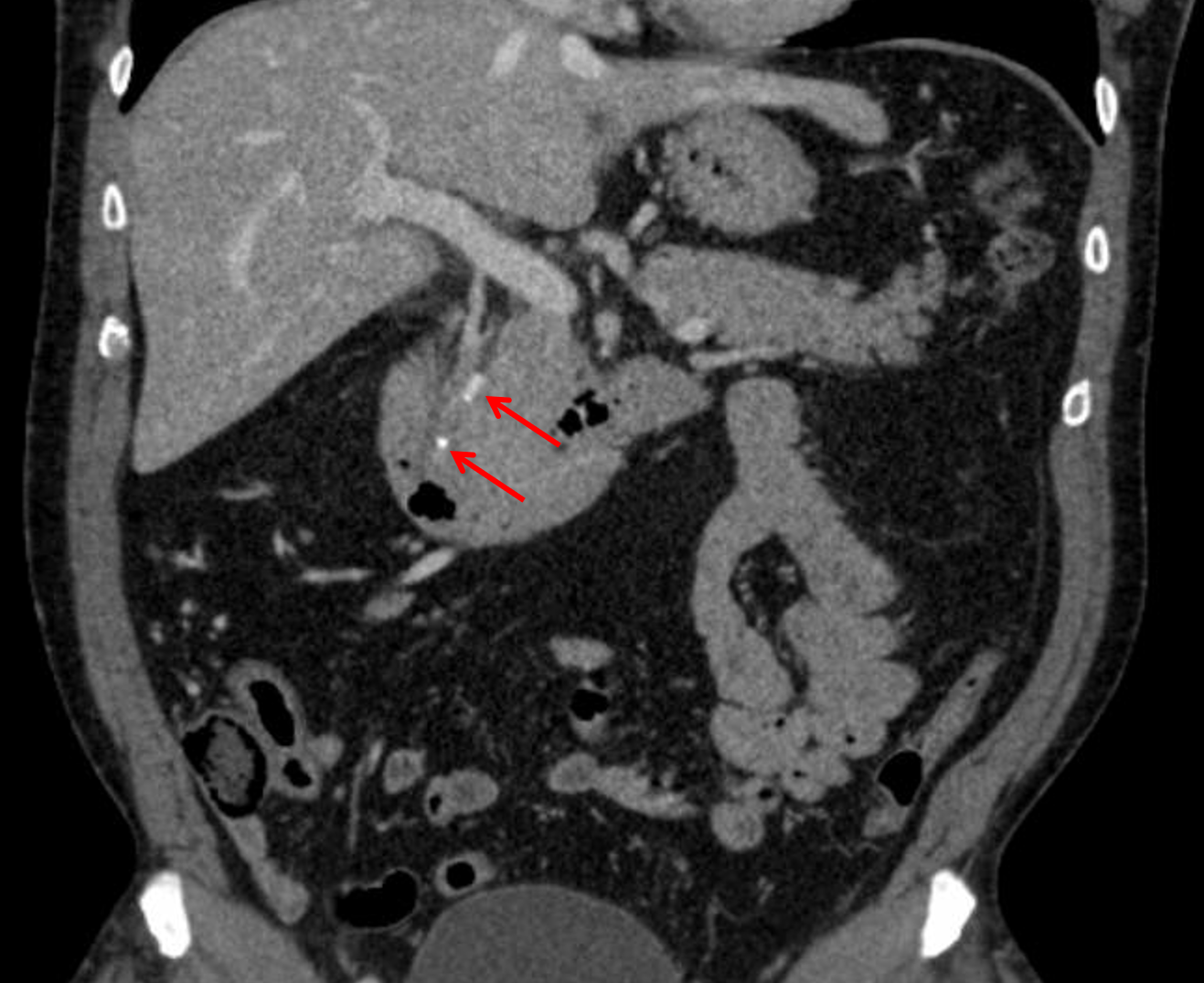 Sample ReportCholedocholithiasis with findings concerning for ascending cholangitis. No biliary duct dilation.