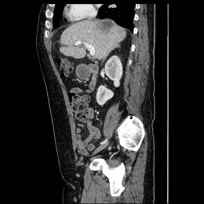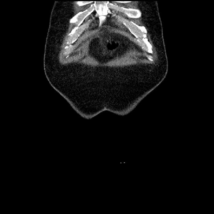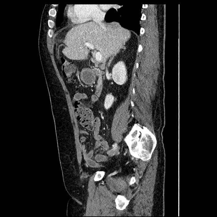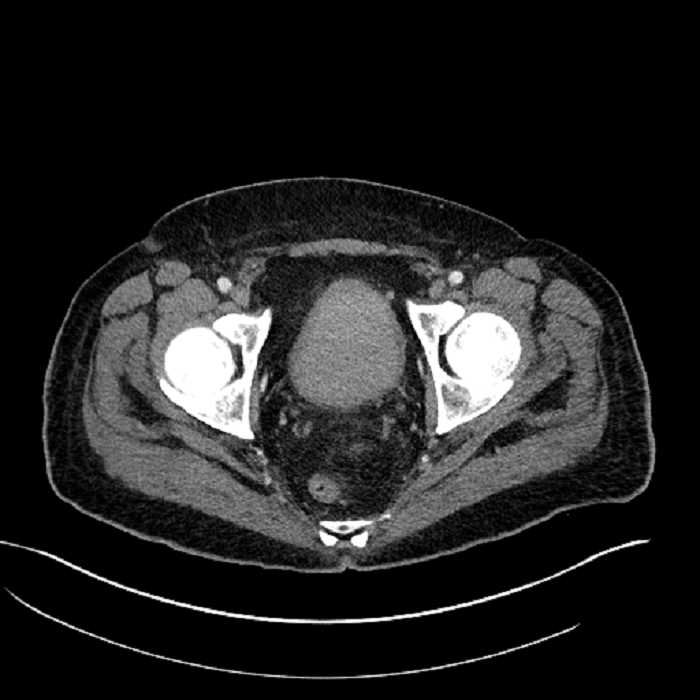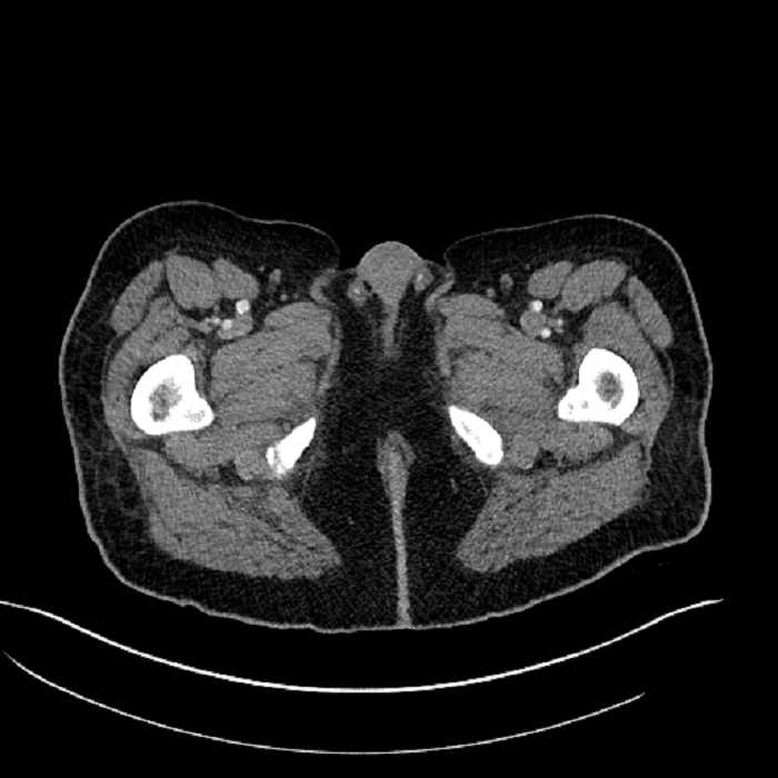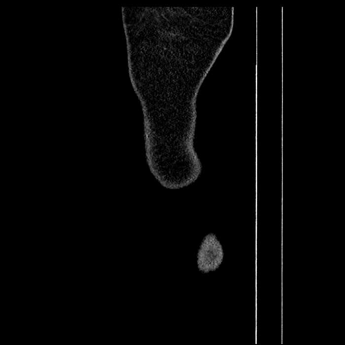 • The classic CT imaging appearance is a double target sign with internal low density surrounded by an internal enhancing rim (capsule) and a low density external rim (edema)
