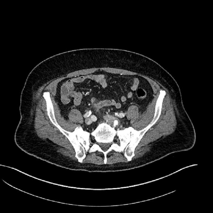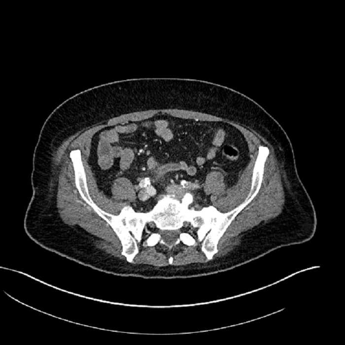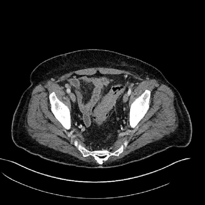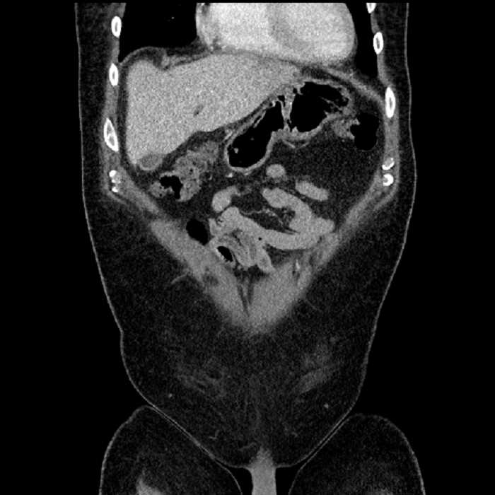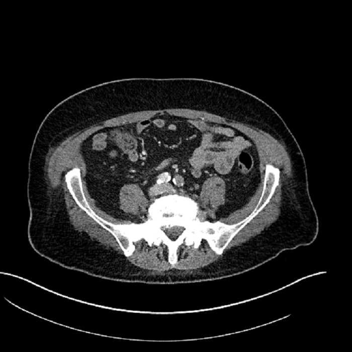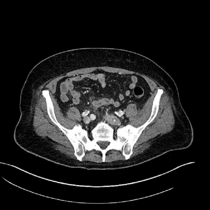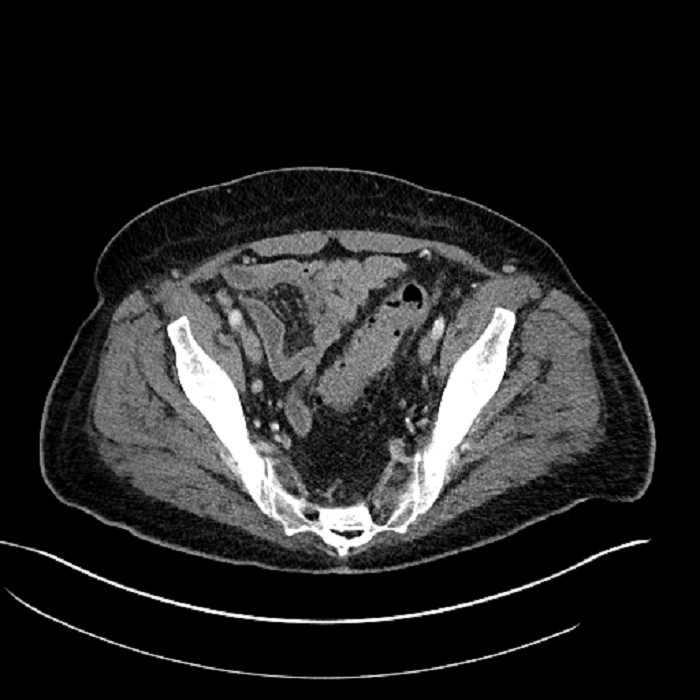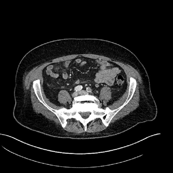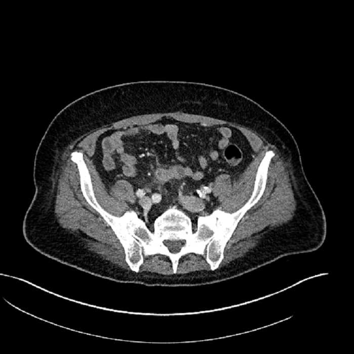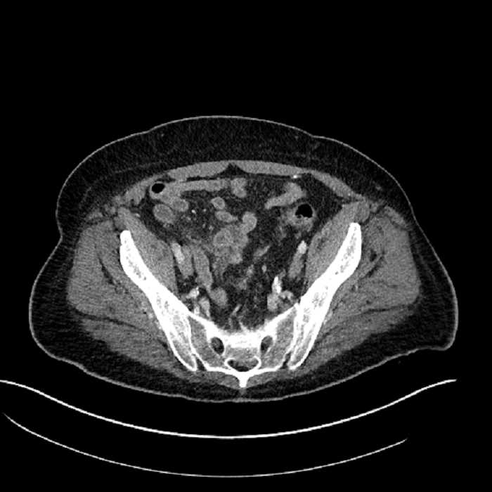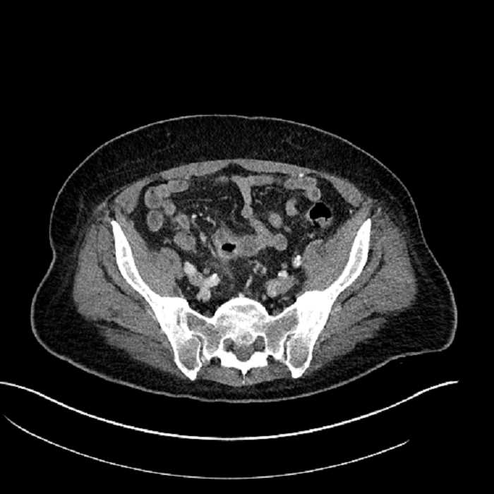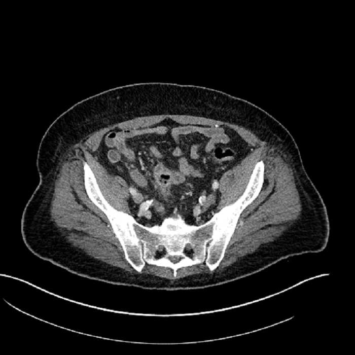 • Loss of the normal fat plane between this collection and adjacent loops of small bowel, which demonstrate mural thickening