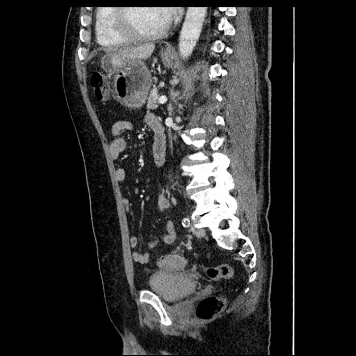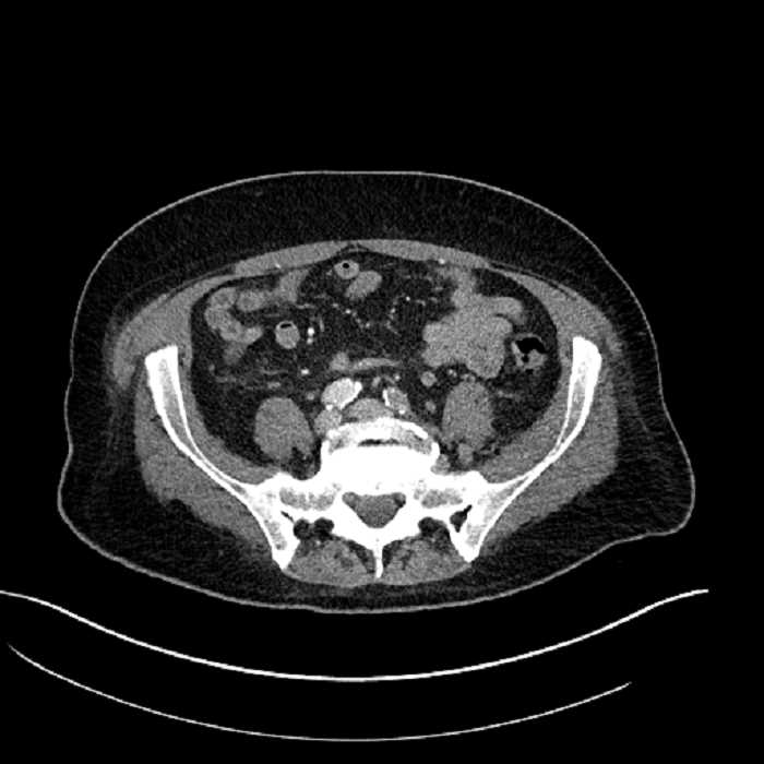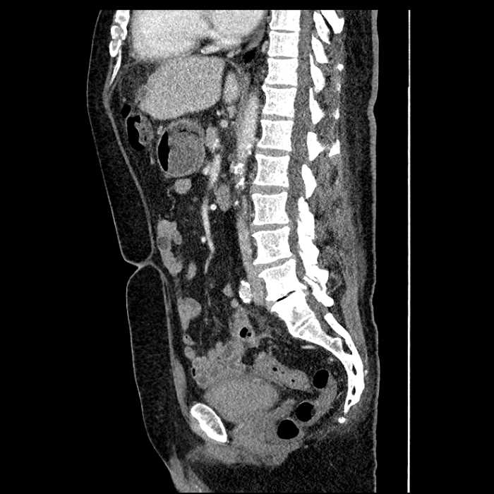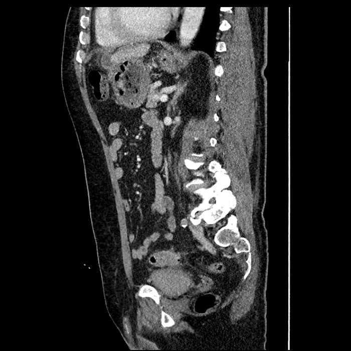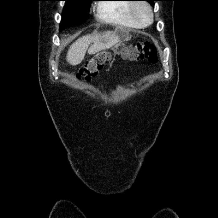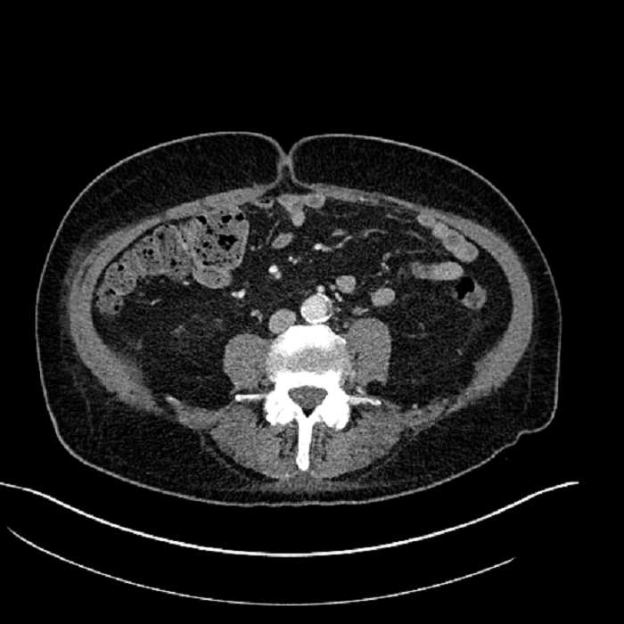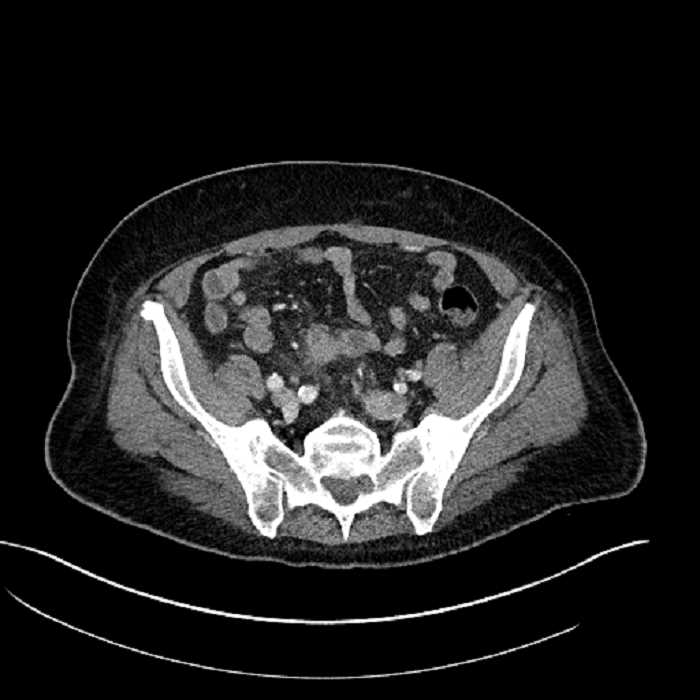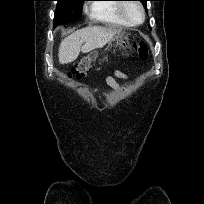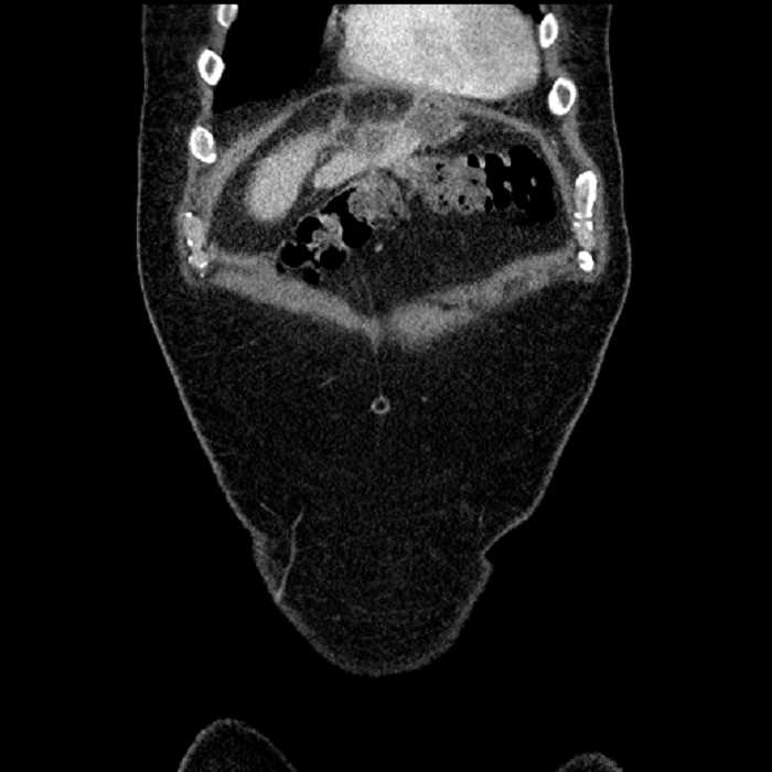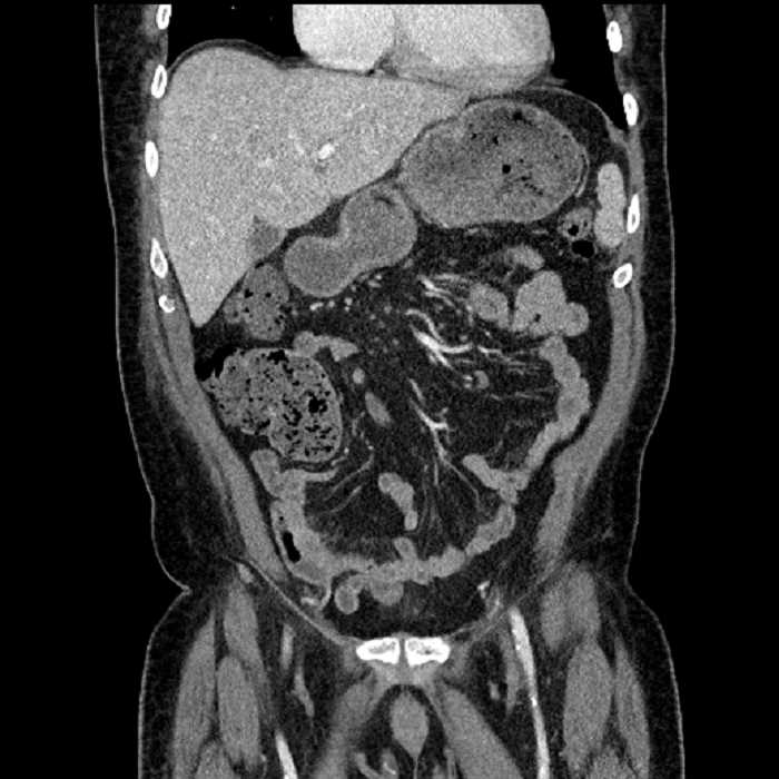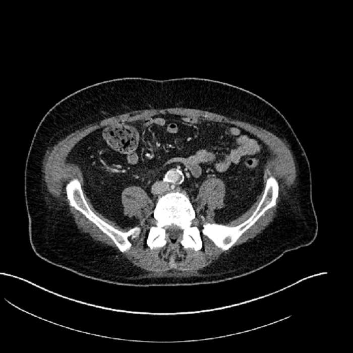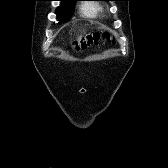 • Loss of the normal fat plane between this collection and adjacent loops of small bowel, which demonstrate mural thickening