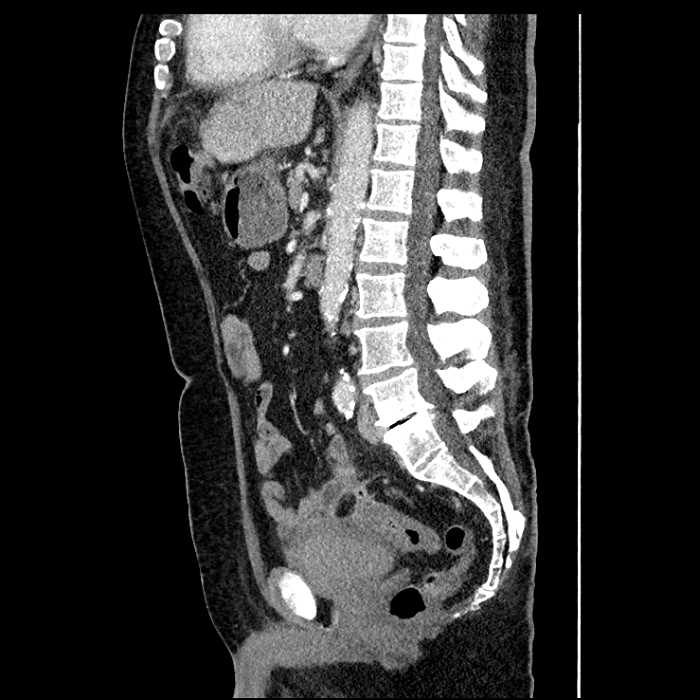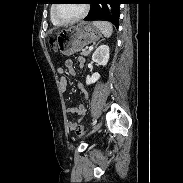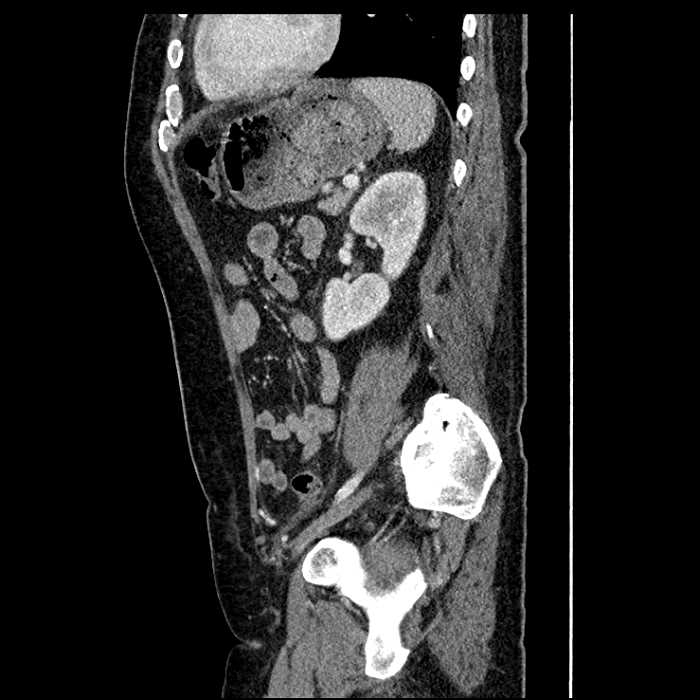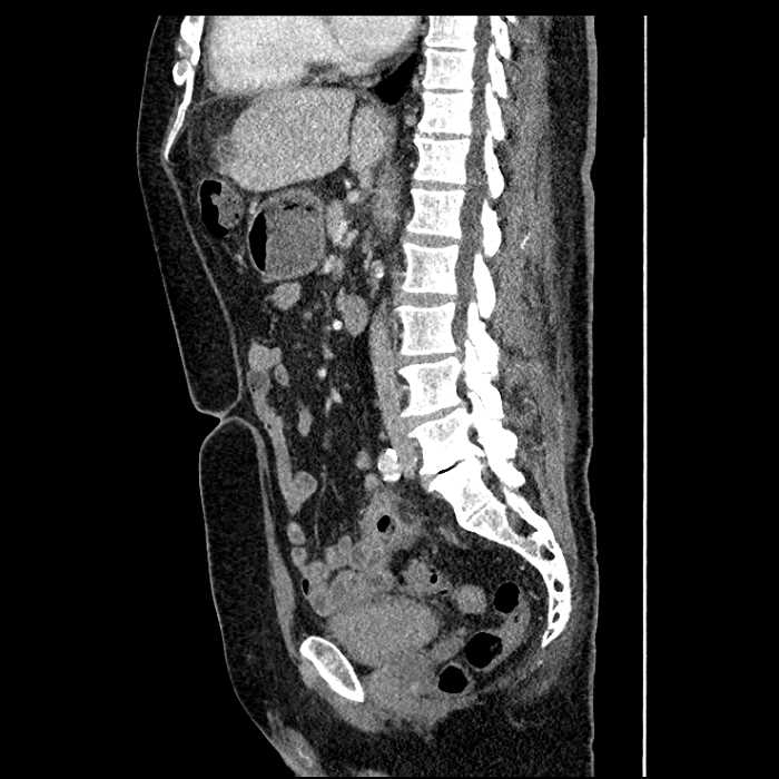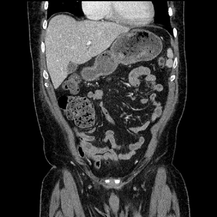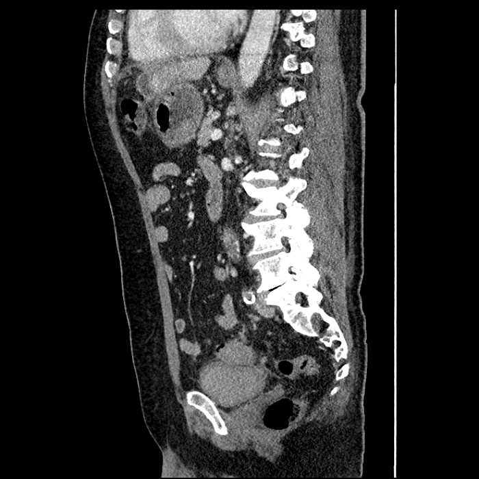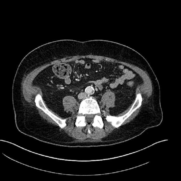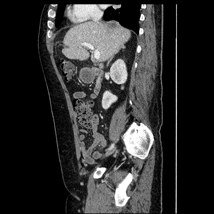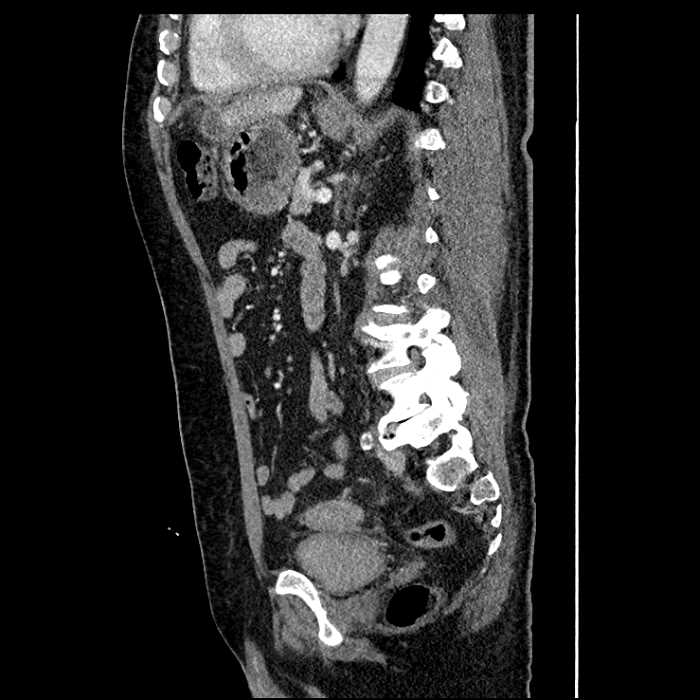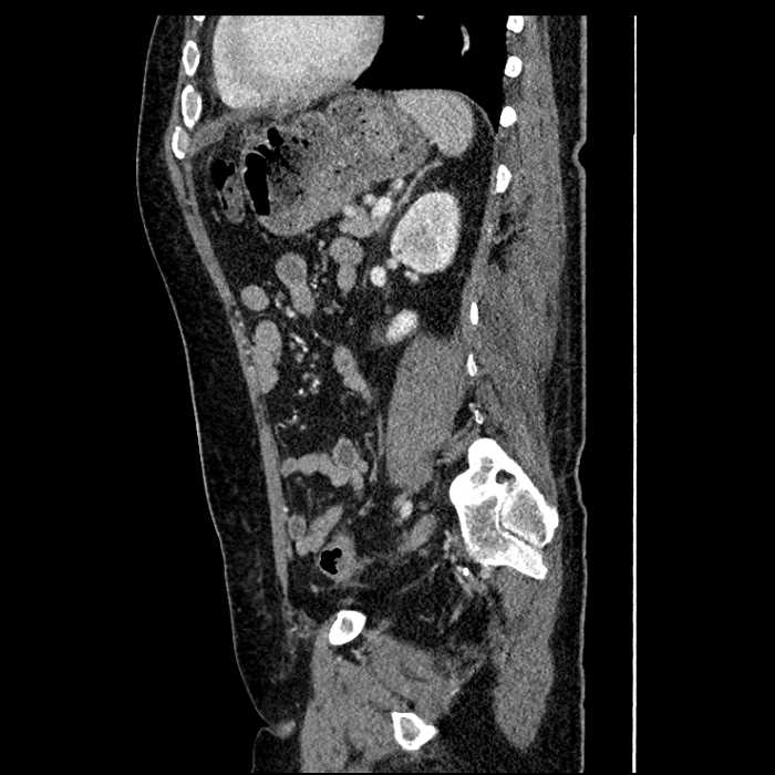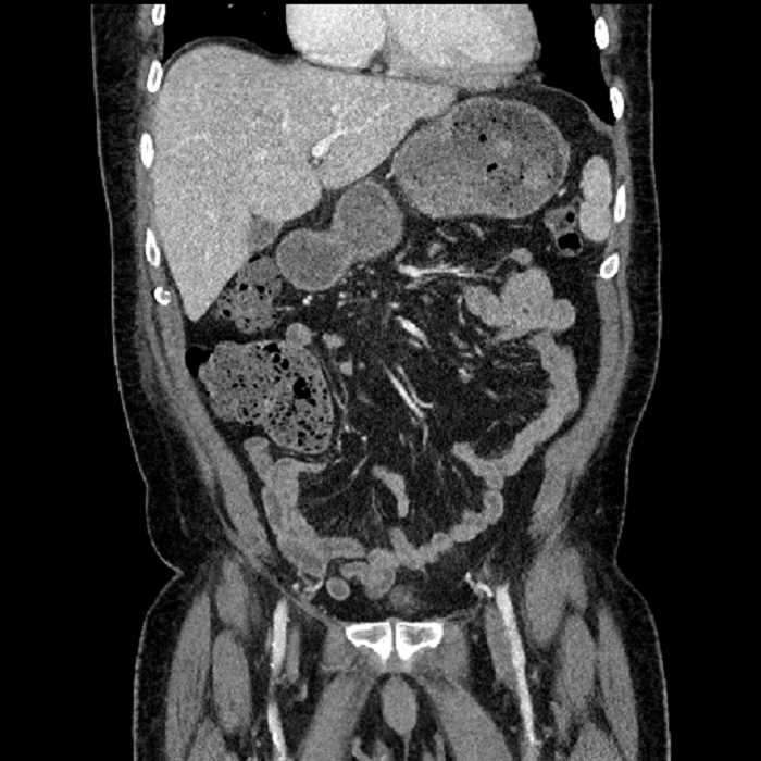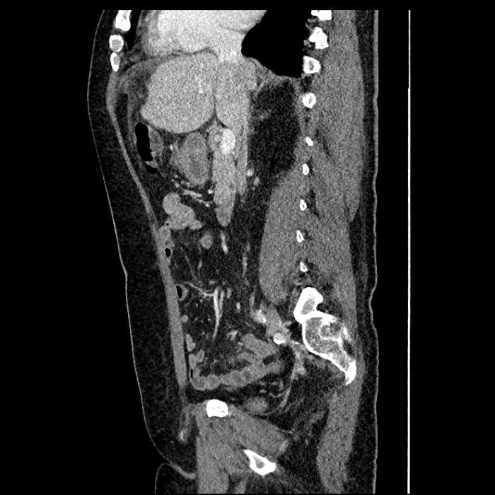 • Loss of the normal fat plane between this collection and adjacent loops of small bowel, which demonstrate mural thickening