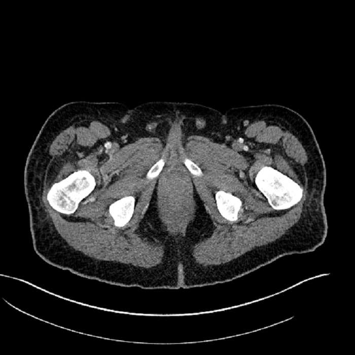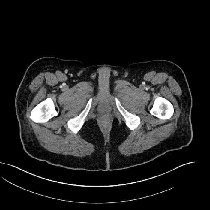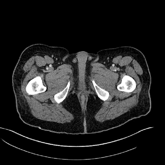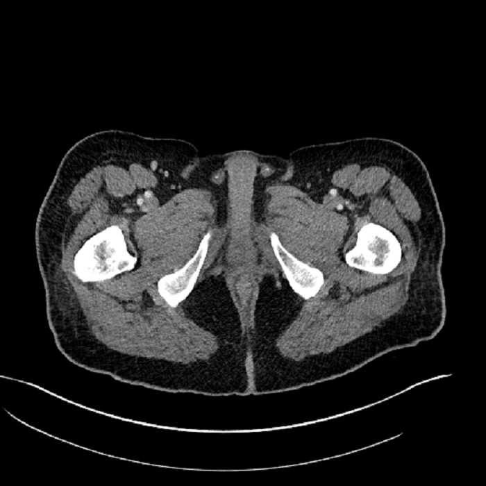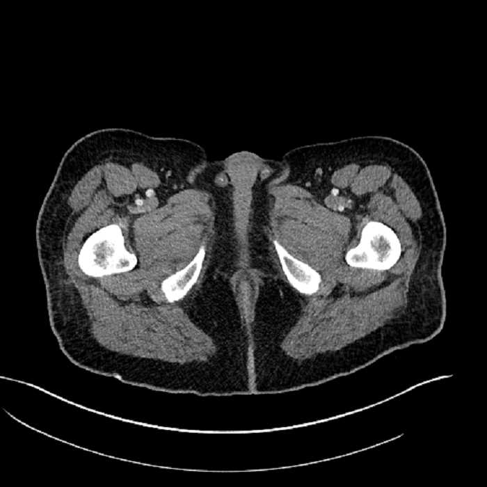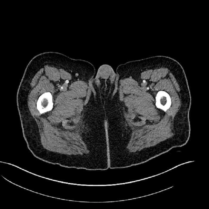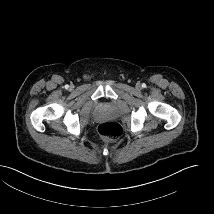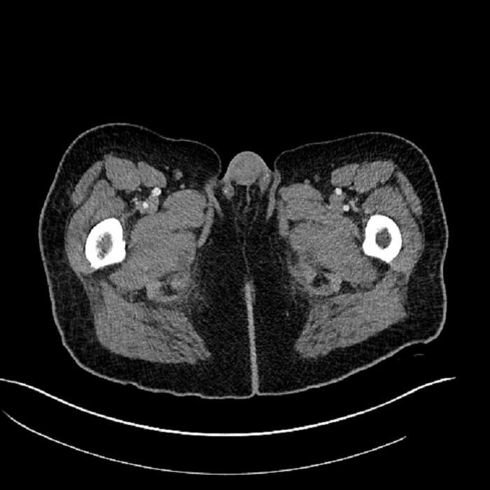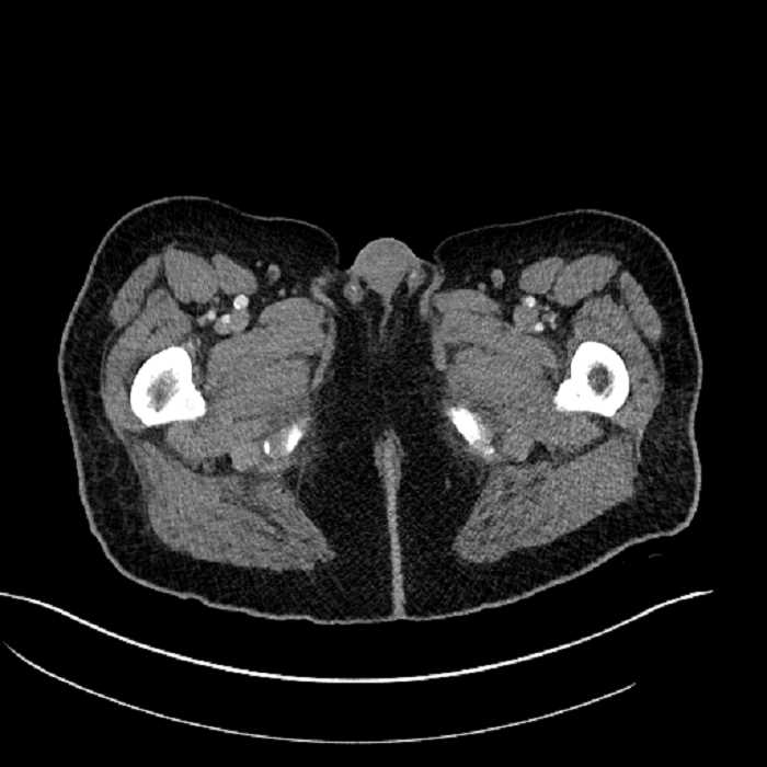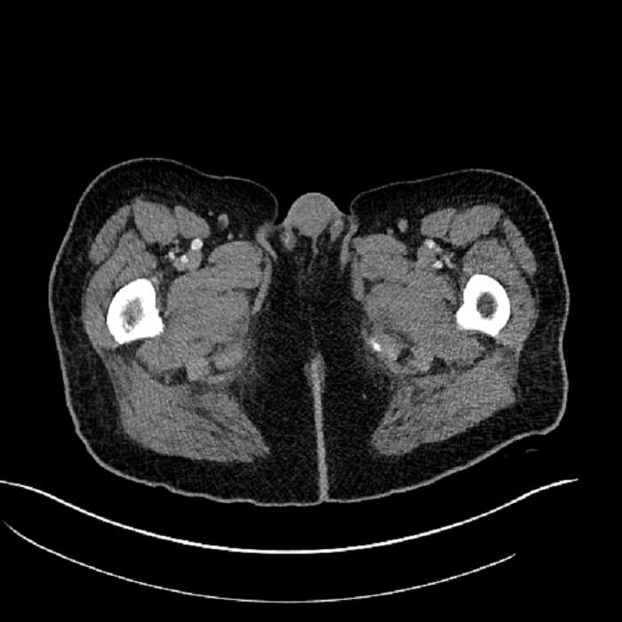 • High grade stenosis of the left common iliac artery, with the left internal and external iliac arteries remaining patent