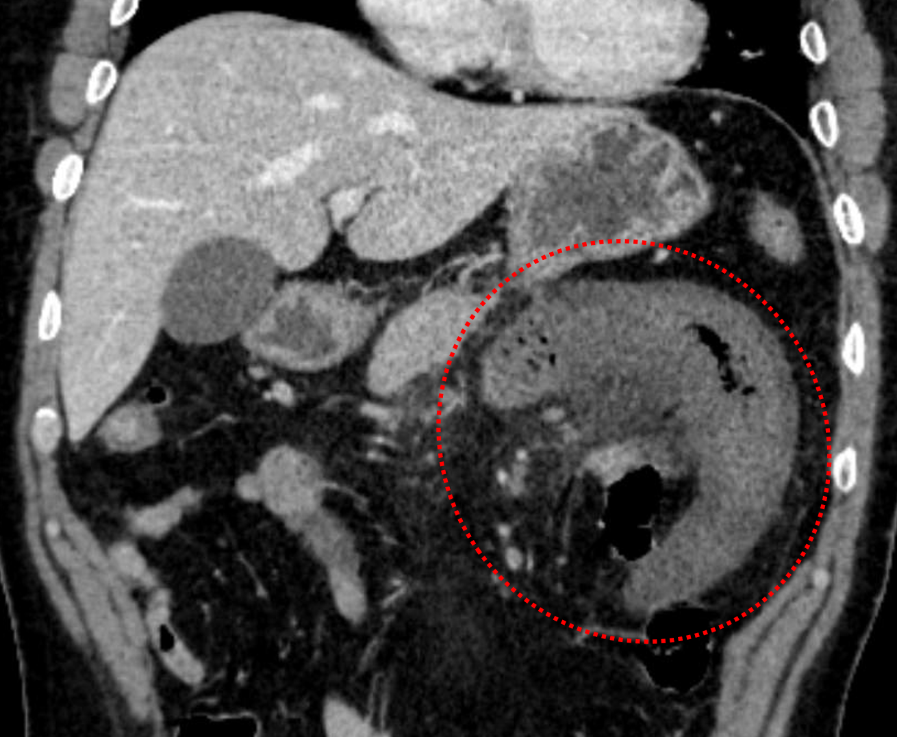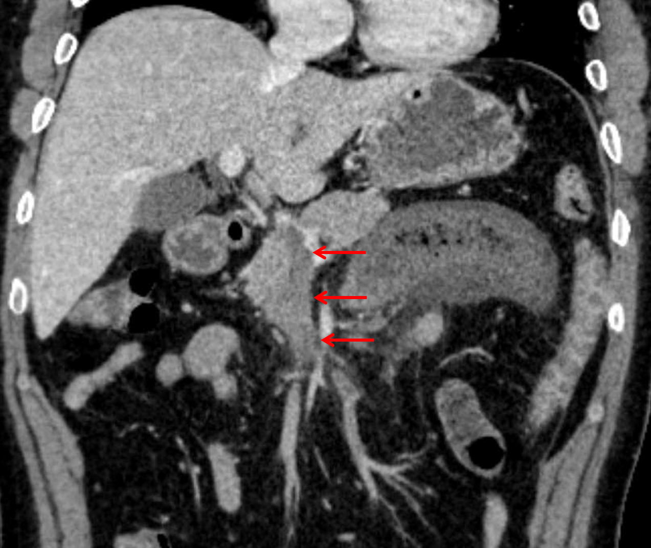 Sample ReportFindings concerning for developing segmental ischemia involving the proximal jejunum secondary to SMV thrombosis. Nonocclusive thrombus also extends slightly into the main portal vein. No pneumatosis, portal venous gas, or pneumoperitoneum.