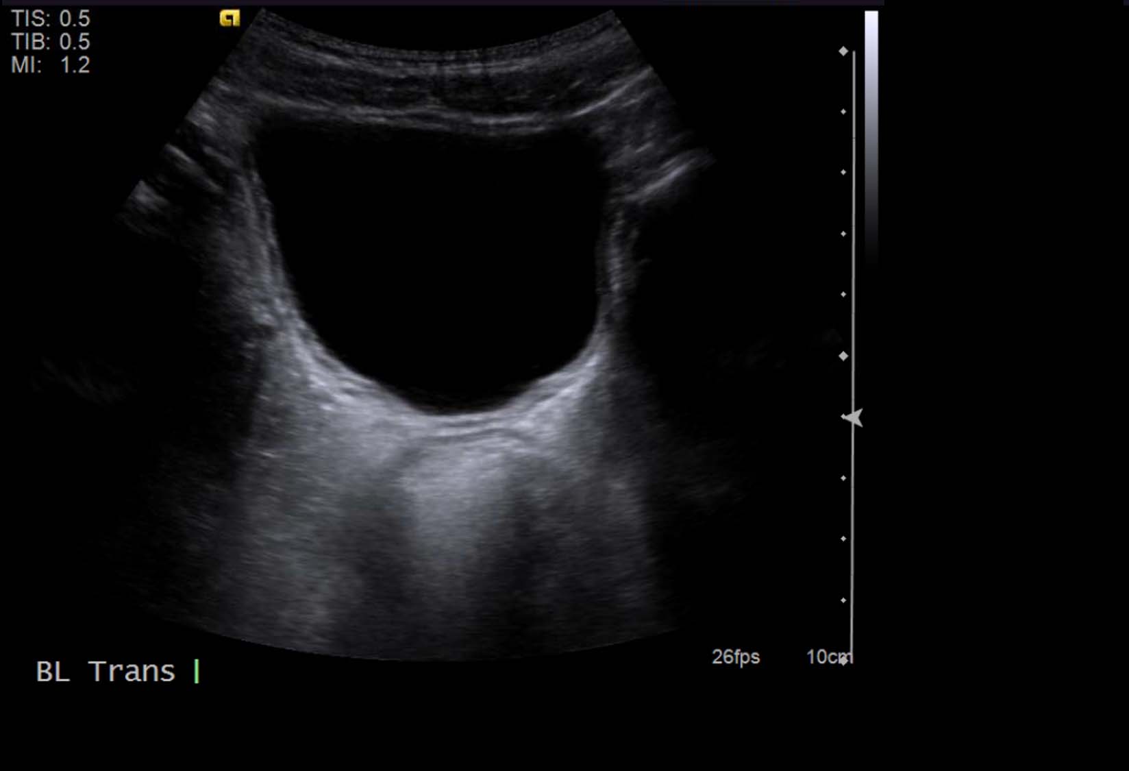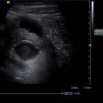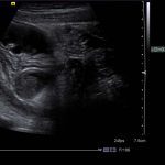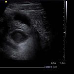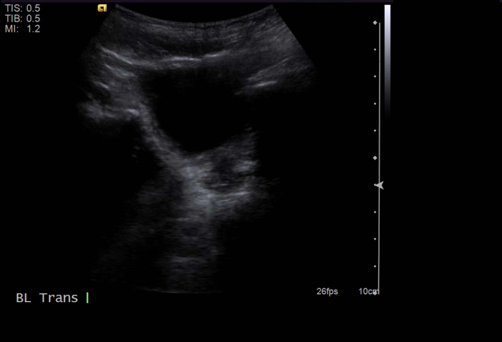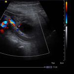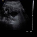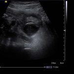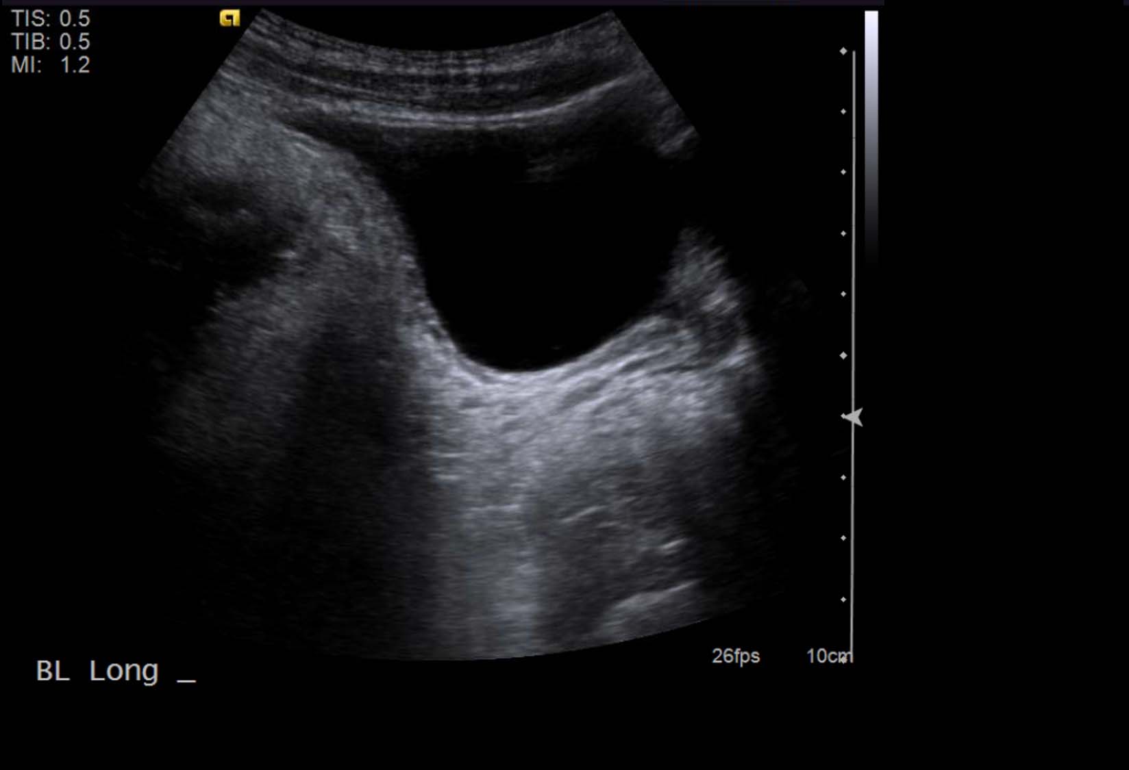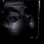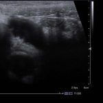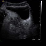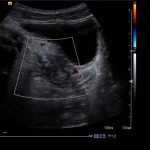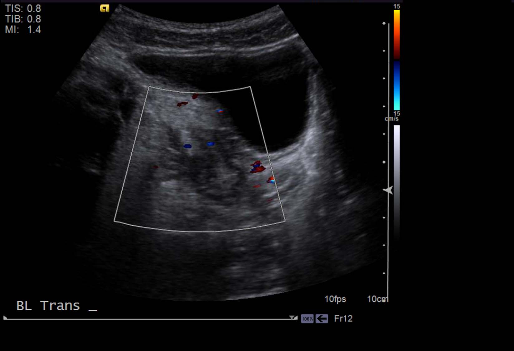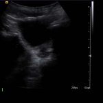 • Superficial to this is a 2 x 2.5 cm ovoid hypoechoic structure which appears separate from the adjacent bowel and shows no internal vascularity