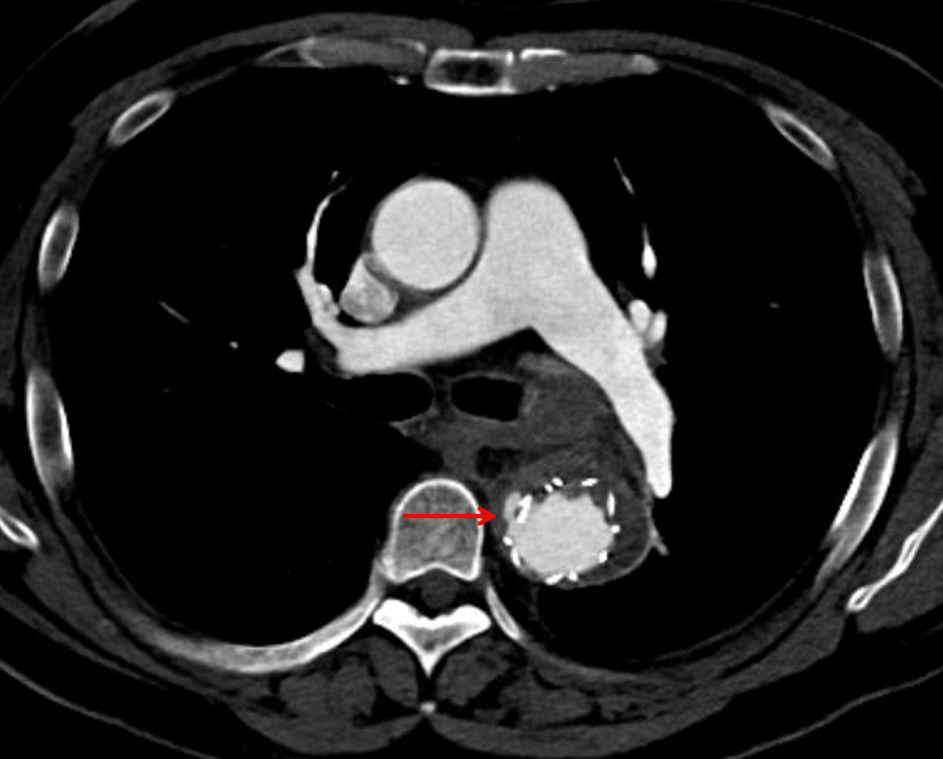 • Surgical changes of endograft repair of the distal aortic arch and descending thoracic aorta