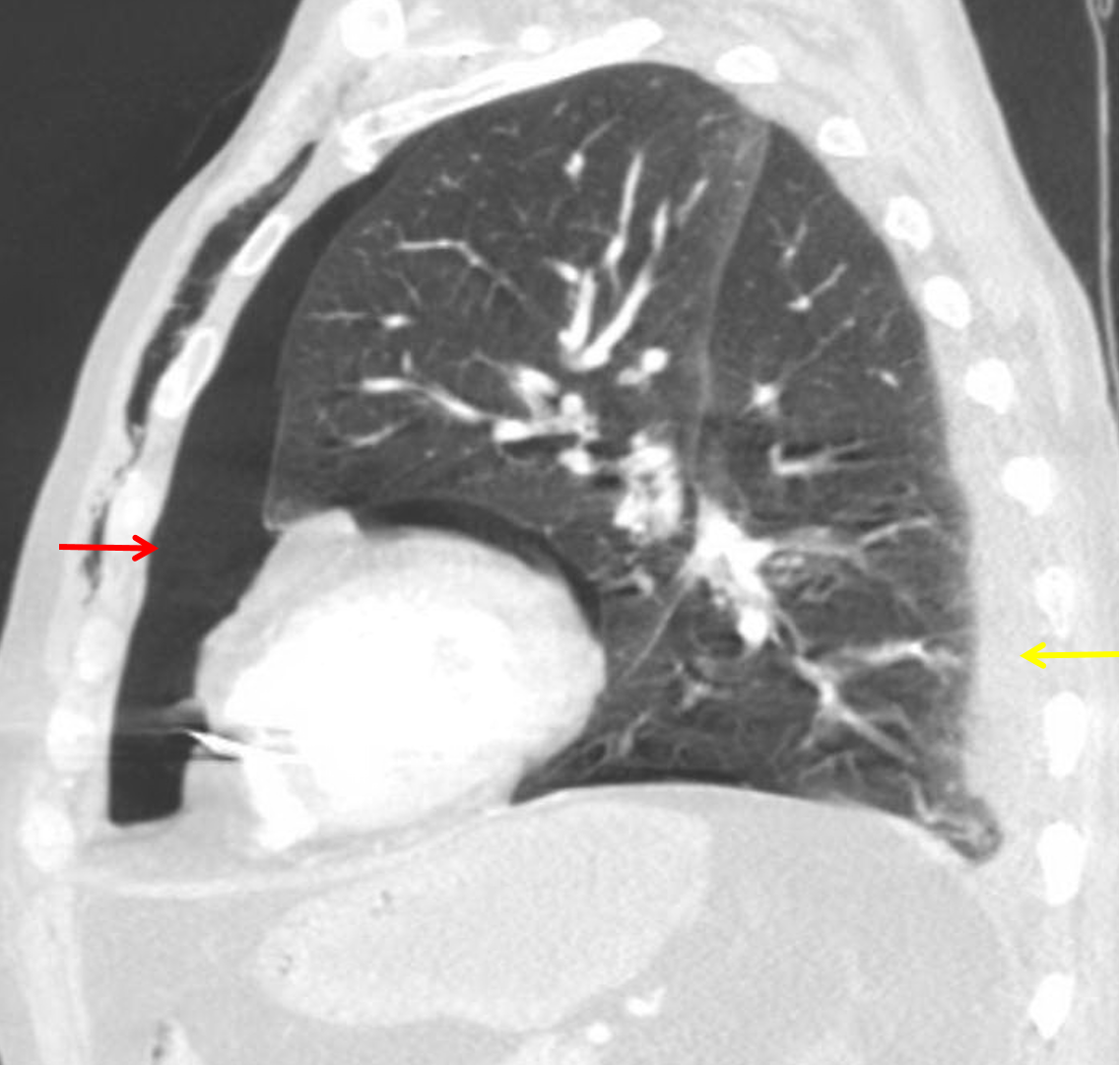 Sample ReportAcute mildly displaced left anterolateral fourth through seventh rib fractures with a moderate-sized left hemopneumothorax. No mediastinal shift.
