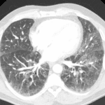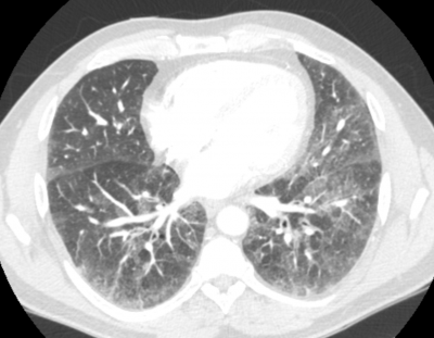 Sample ReportDiffuse bilateral fine reticular opacification most likely representing chronic changes of interstitial lung disease. Recommend nonemergent interstitial lung disease protocol chest CT for further evaluation.