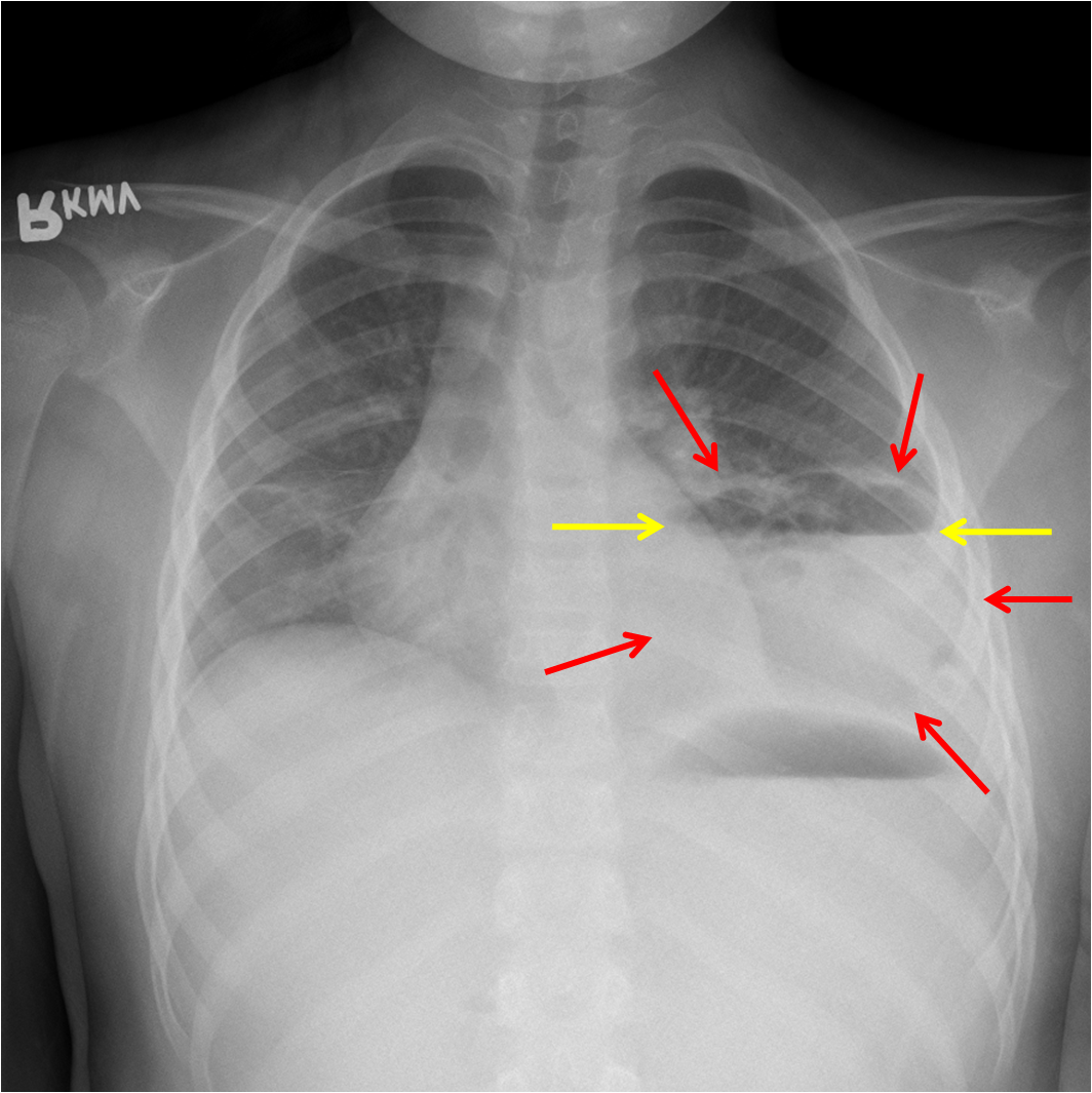 Sample ReportLeft lower lobe rounded opacification with an air-fluid level, which is concerning for a lung abscess.