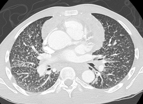 Sample ReportMiliary pattern of nodularity throughout both lungs for which the primary diagnostic consideration is atypical infection, including tuberculosis and fungi. Consider chest CT for further evaluation.