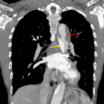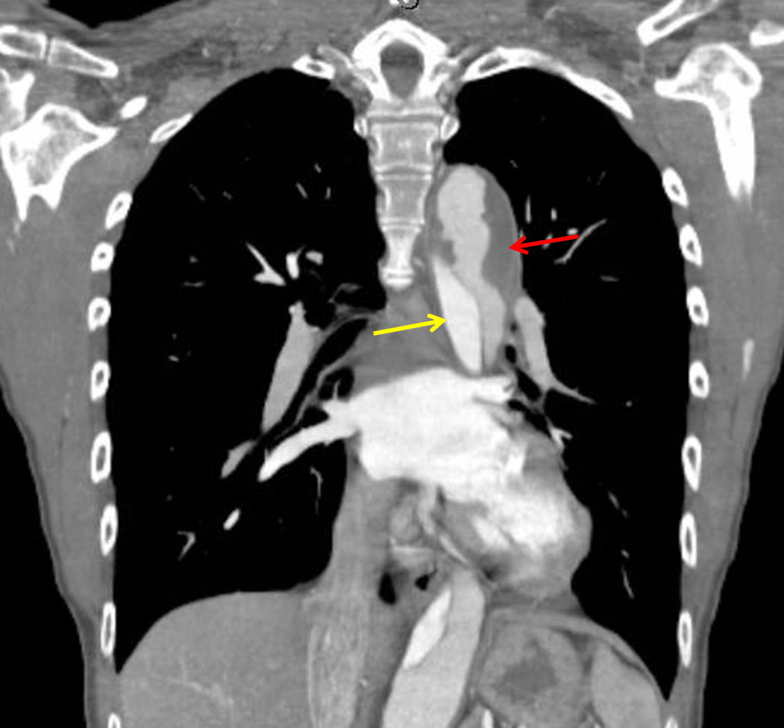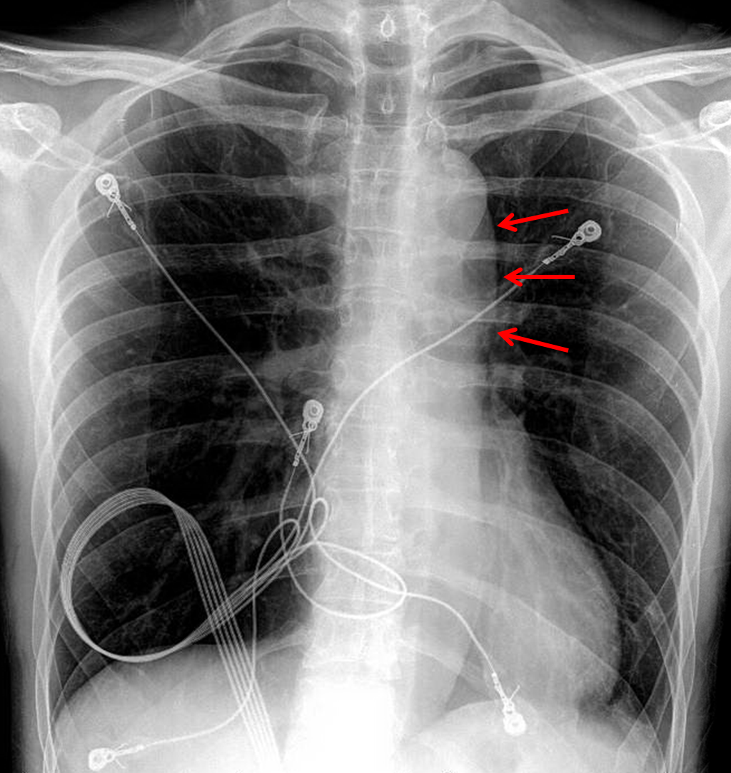 Sample ReportEnlarged, bulging silhouette of the proximal descending thoracic aorta raises concern for acute aortic pathology such as aortic dissection. Recommend chest CTA for further evaluation.