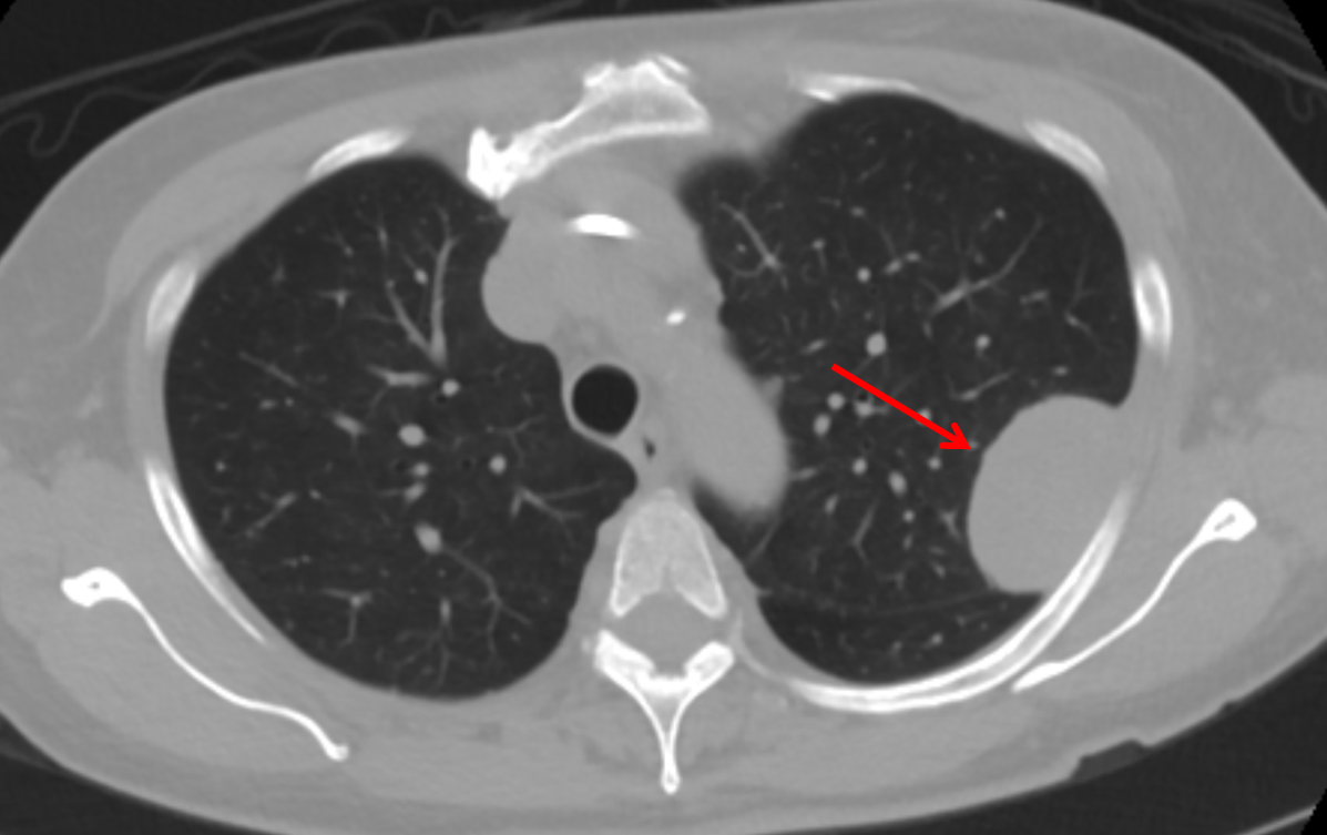 Sample ReportLarge mass projecting over the lateral left lung apex, which given indistinctness of its lateral margin may be pleural based. Recommend chest CT for further evaluation.