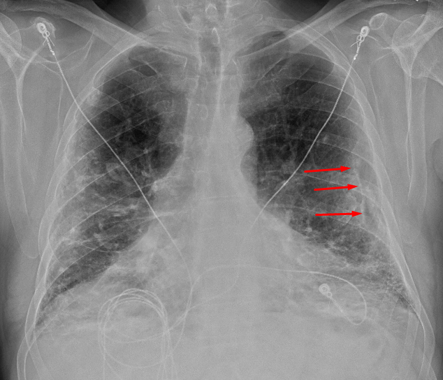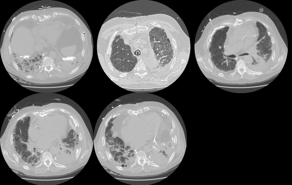 Sample ReportBilateral pleural plaques and interstitial coarsening, most prominent at the lung bases. Findings are most suggestive of asbestosis. Consider chest CT for further evaluation.