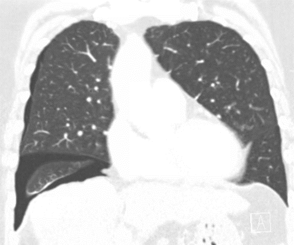 • Thin curvilinear density along the lateral aspect of the right hemithorax