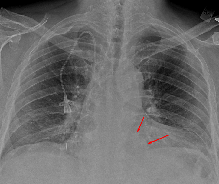 Sample ReportRounded opacity in the medial left lung base, which could represent a hiatal hernia or mass. Consider chest CT for further characterization.