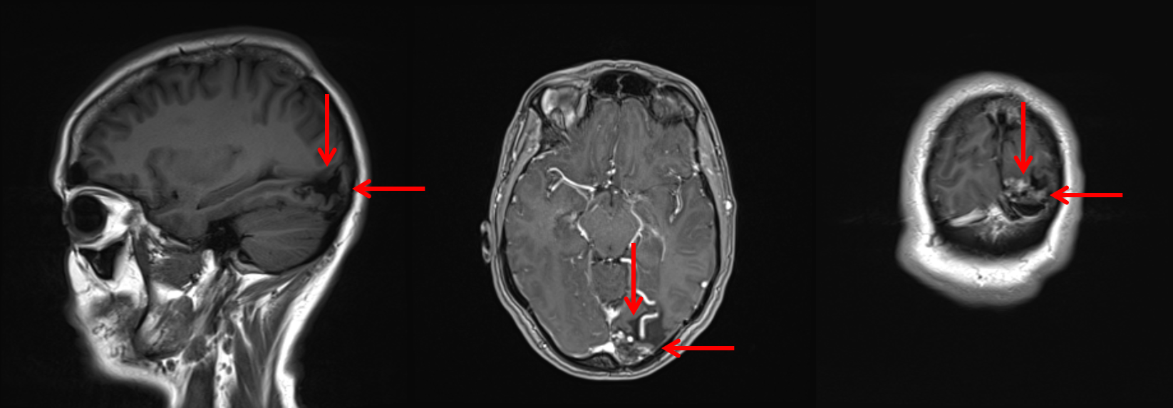 The location of the vascular malformation on each of the sequences is shown in the annotated image below.