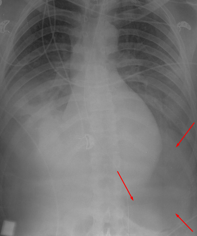 Sample ReportLarge left pneumothorax. No mediastinal shift.