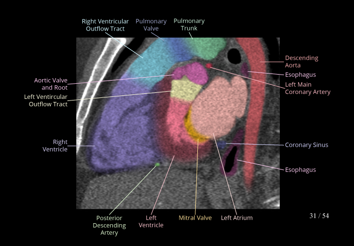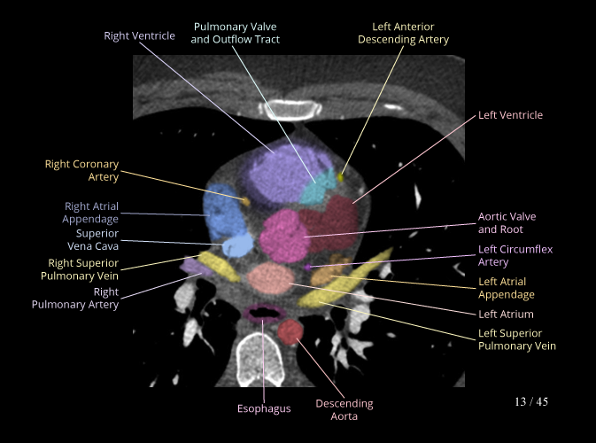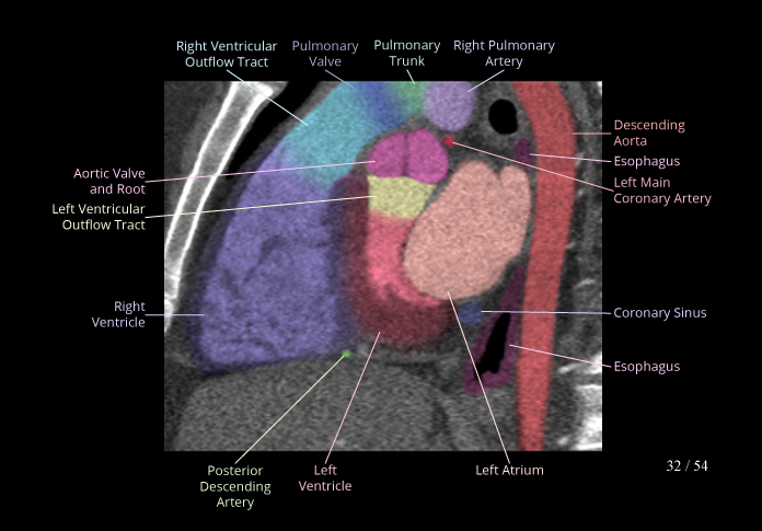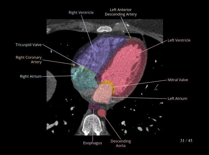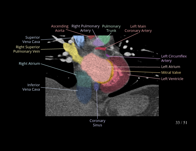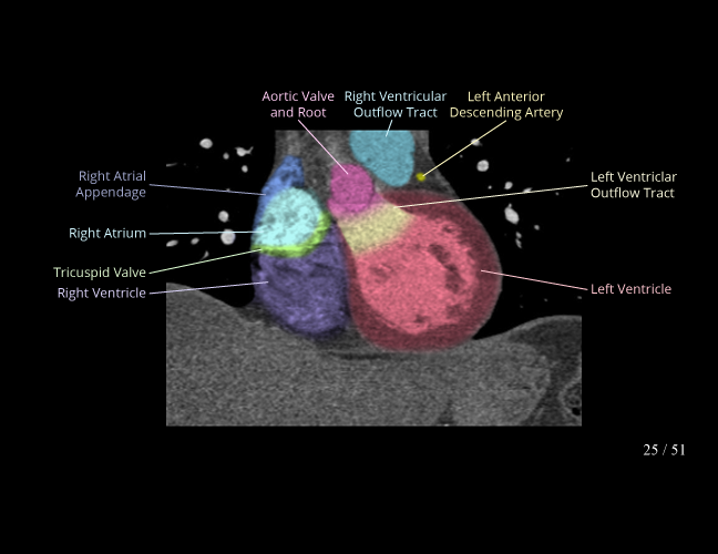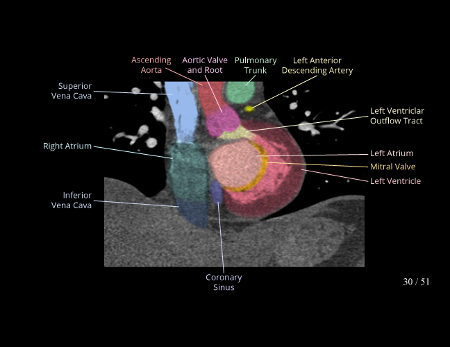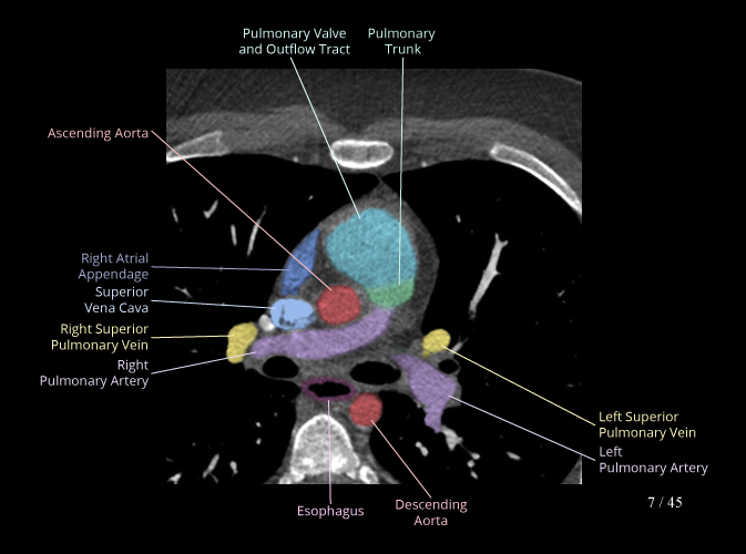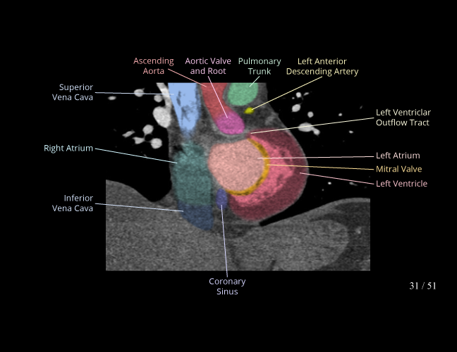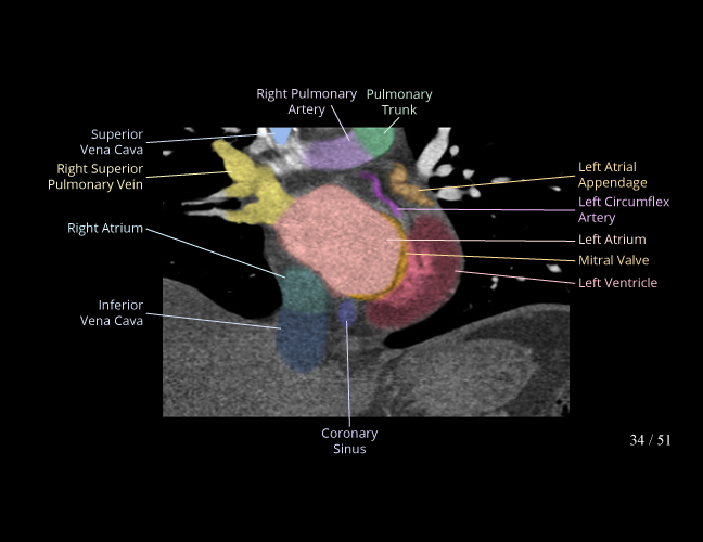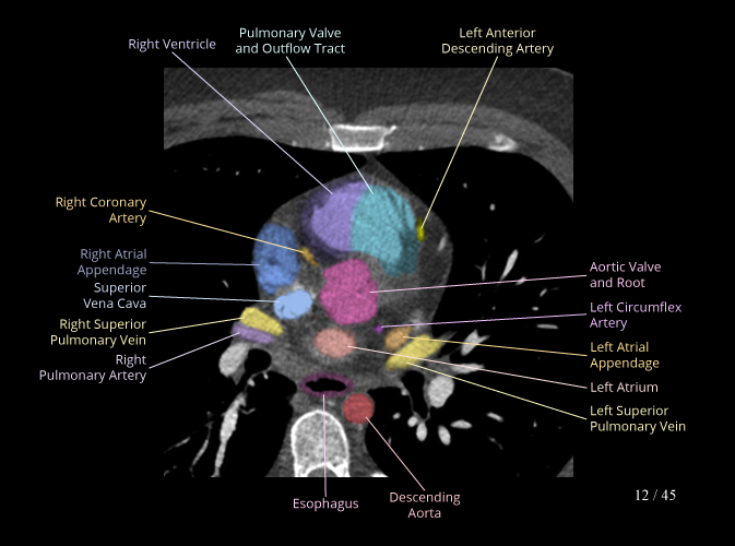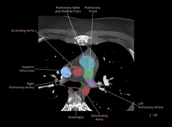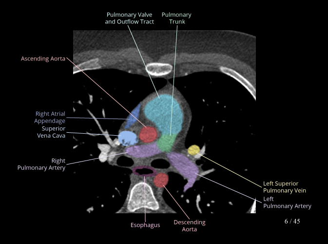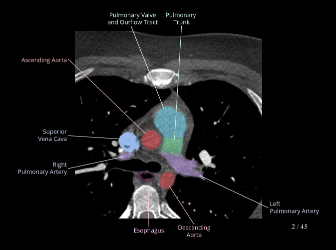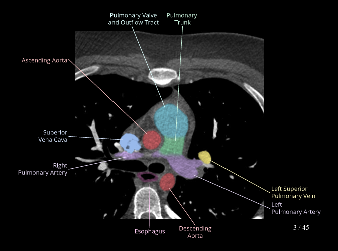 Labelled radiographs and CT/MRI series teaching anatomy with a level of detail appropriate for medical students and junior residents.