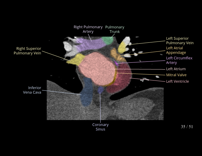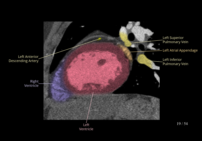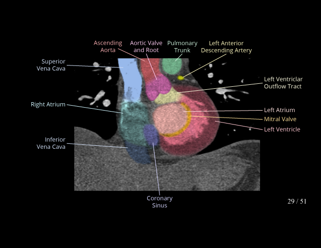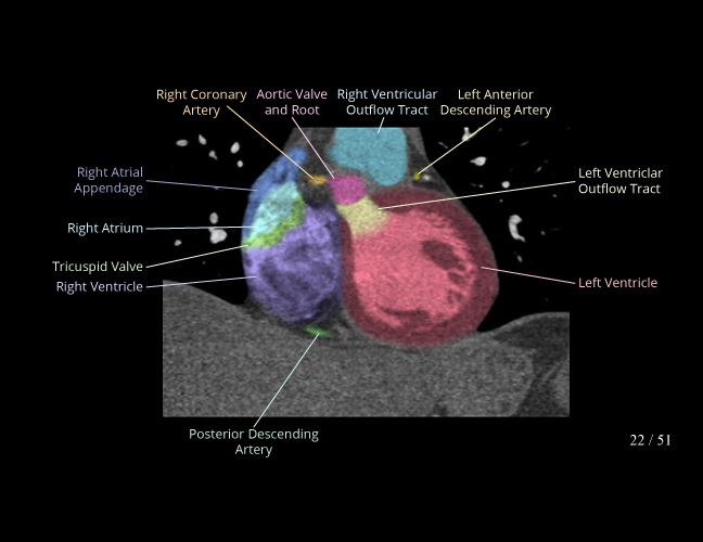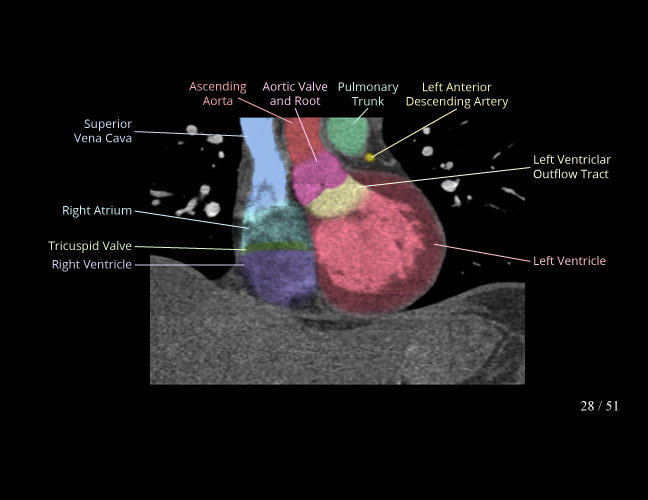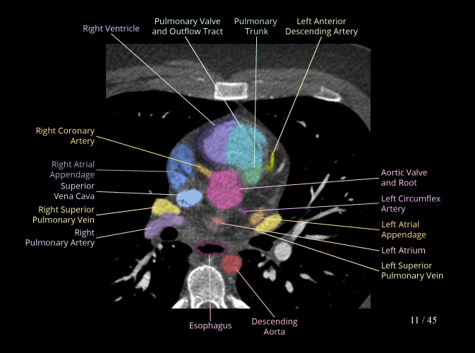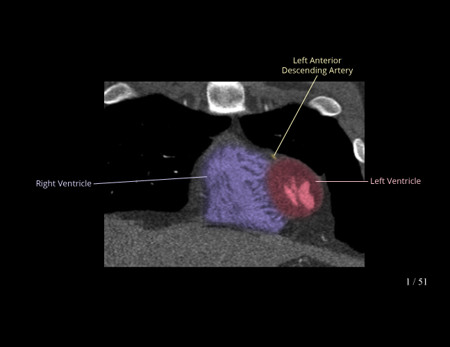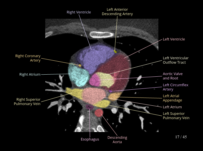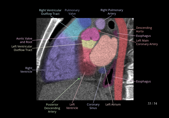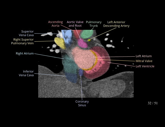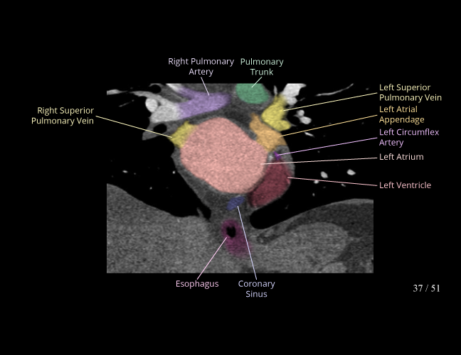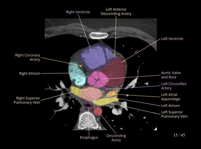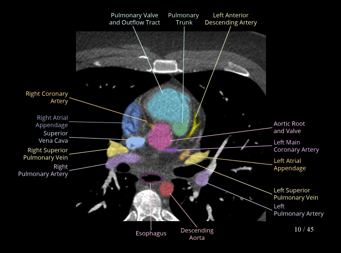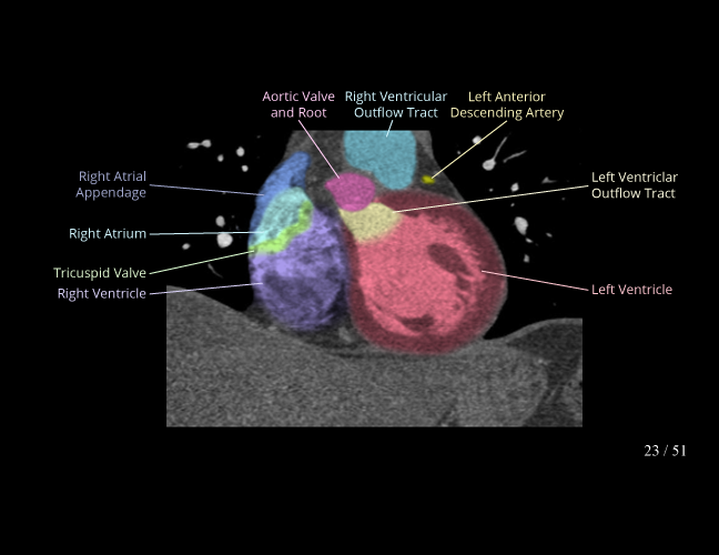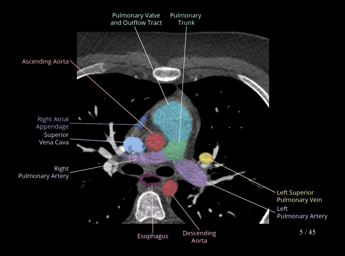 Labelled radiographs and CT/MRI series teaching anatomy with a level of detail appropriate for medical students and junior residents.