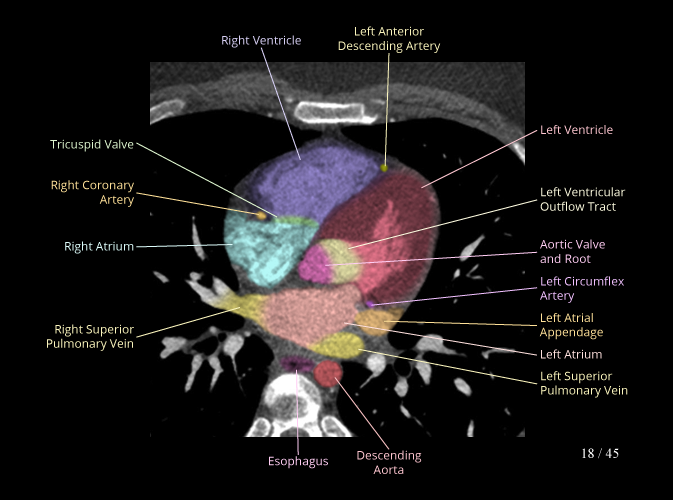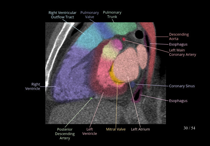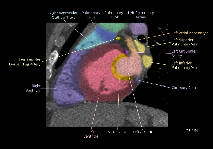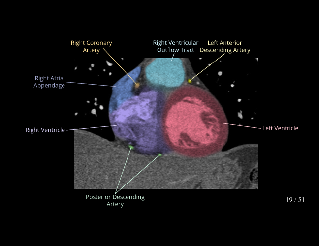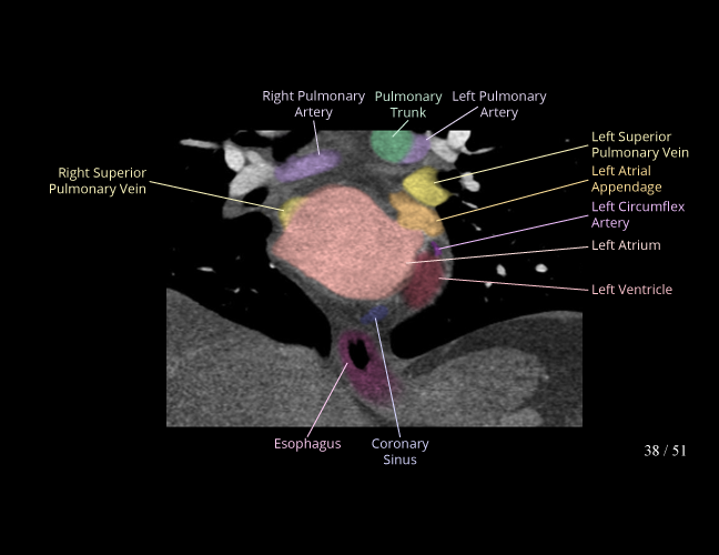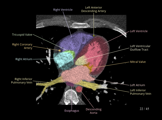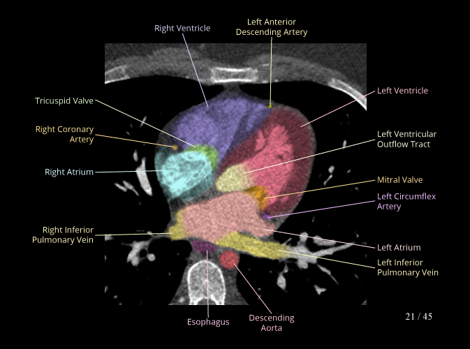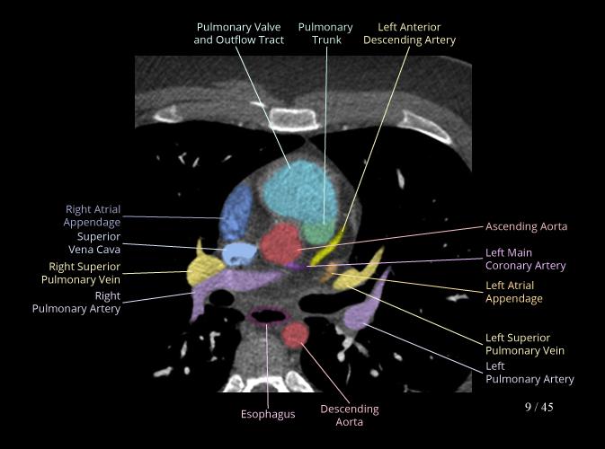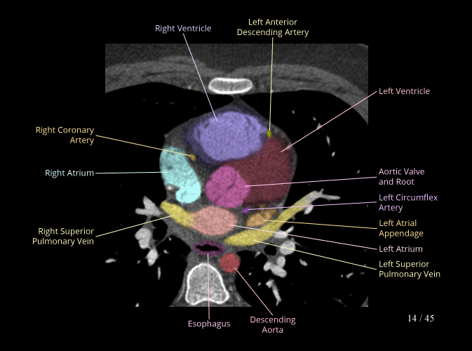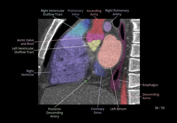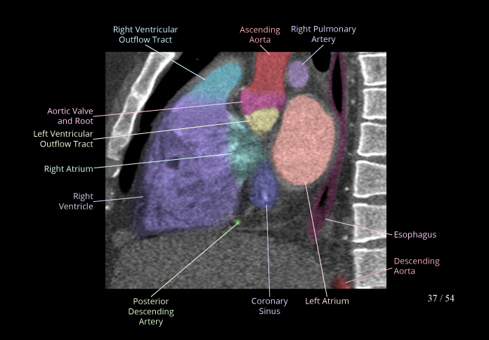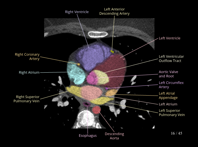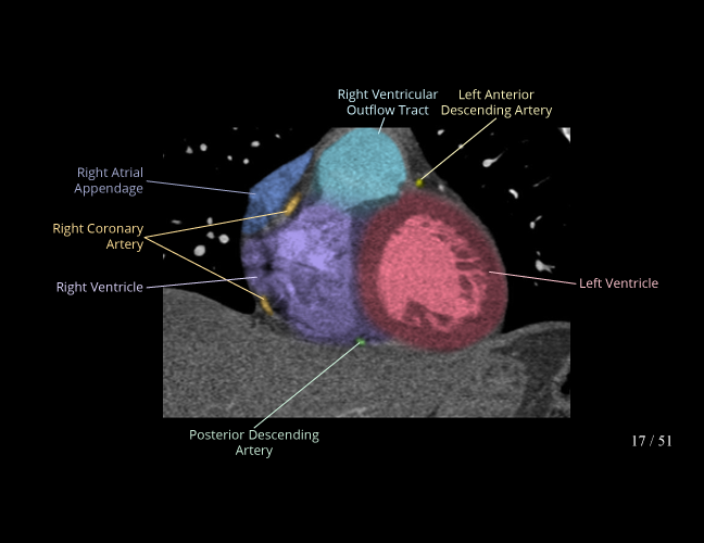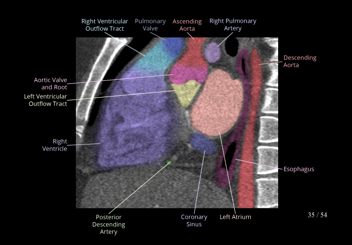 Labelled radiographs and CT/MRI series teaching anatomy with a level of detail appropriate for medical students and junior residents.
