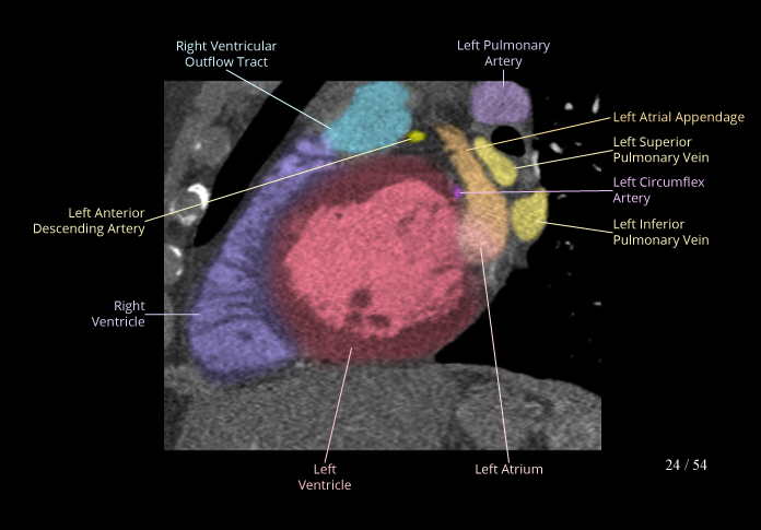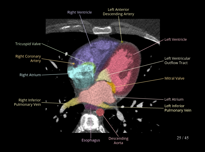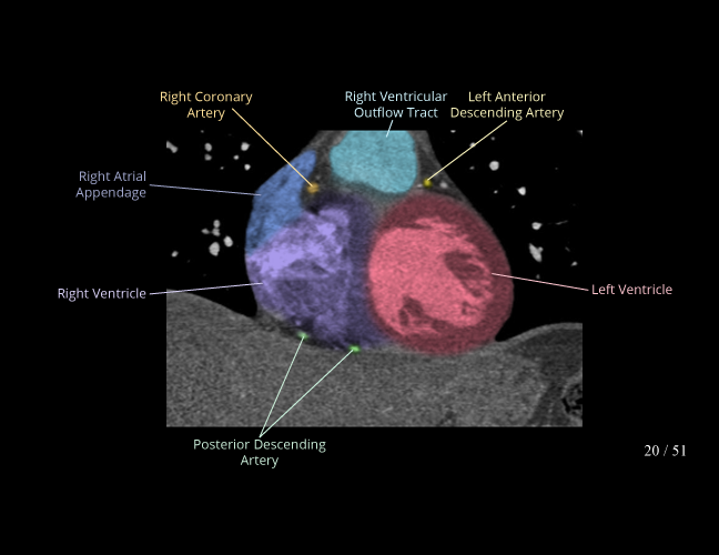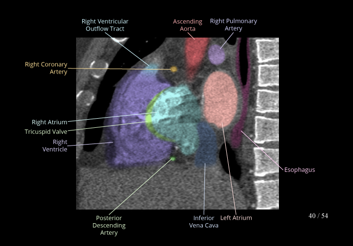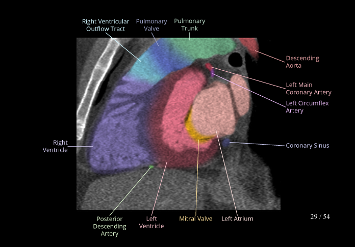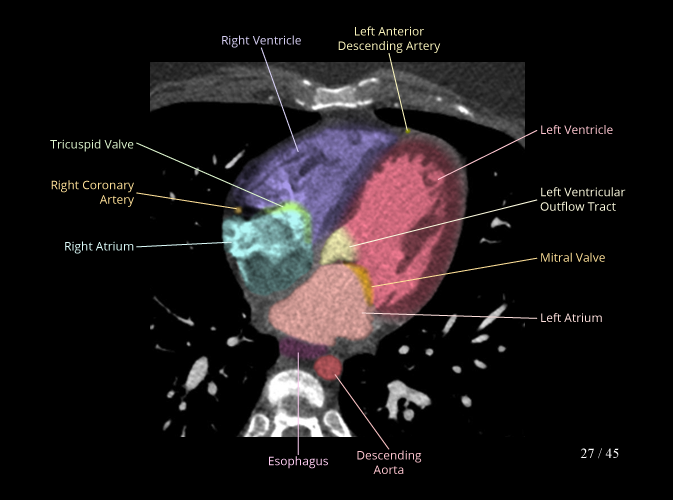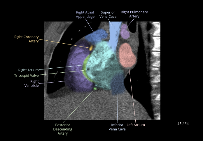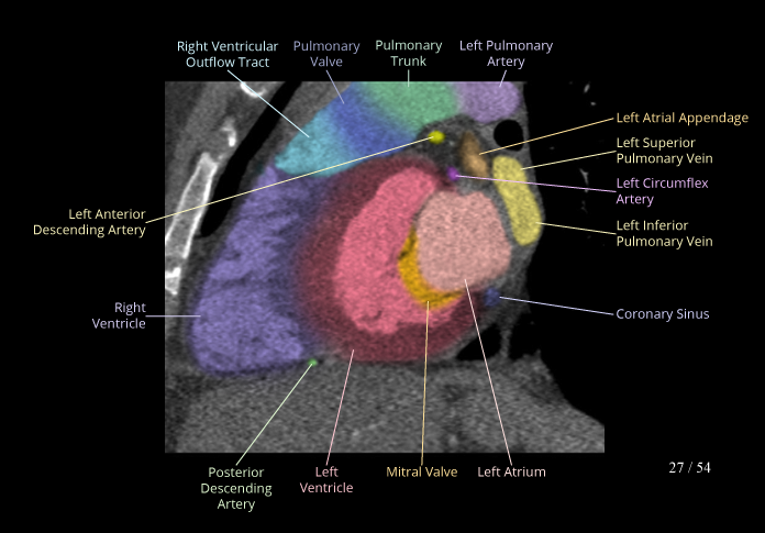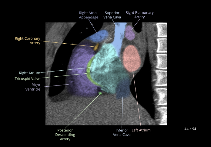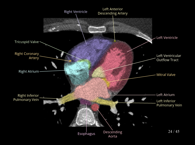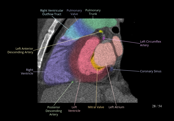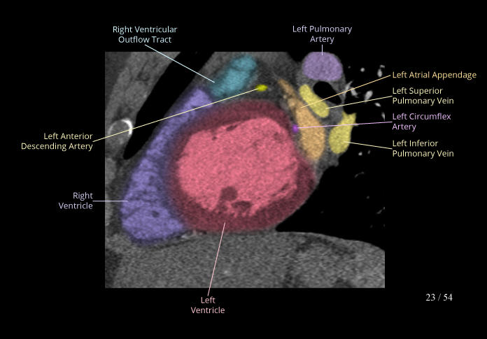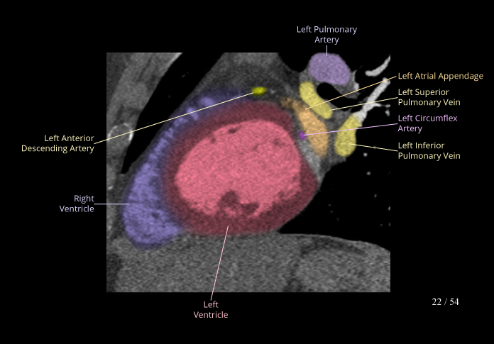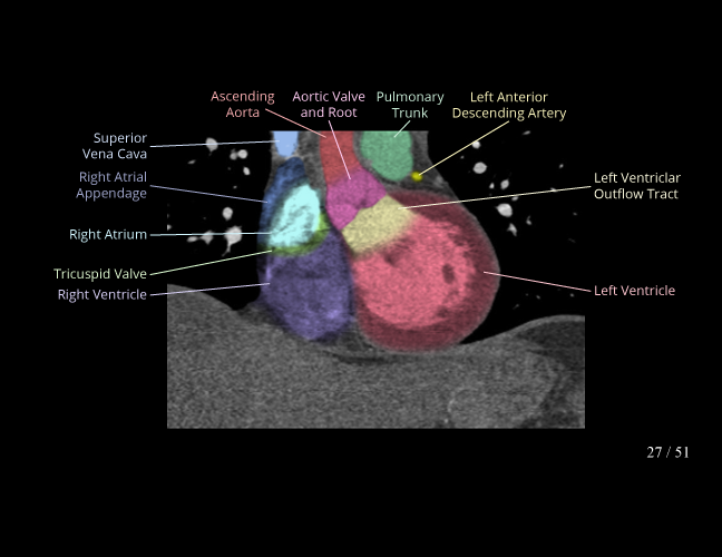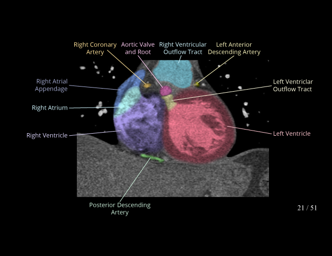 Labelled radiographs and CT/MRI series teaching anatomy with a level of detail appropriate for medical students and junior residents.