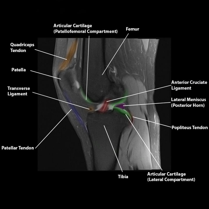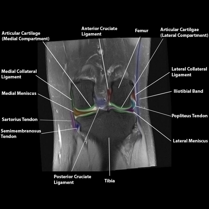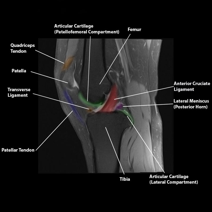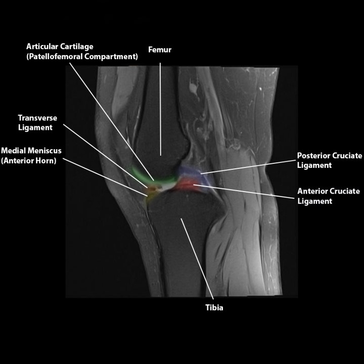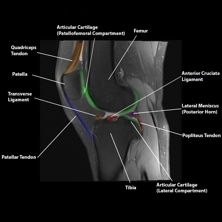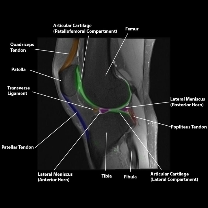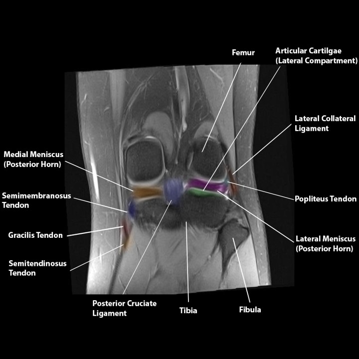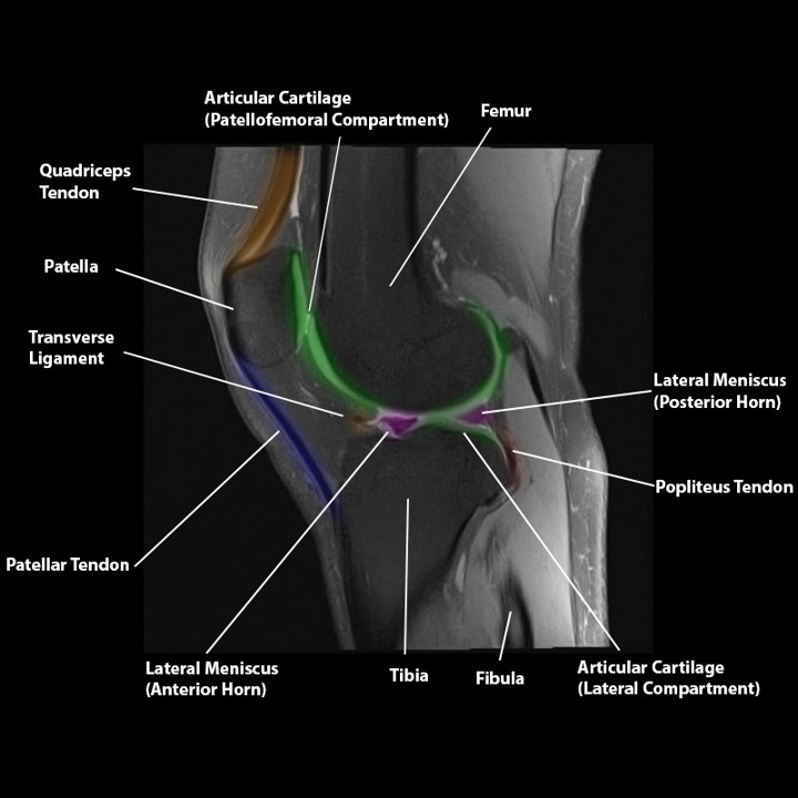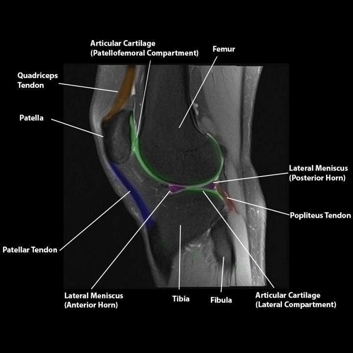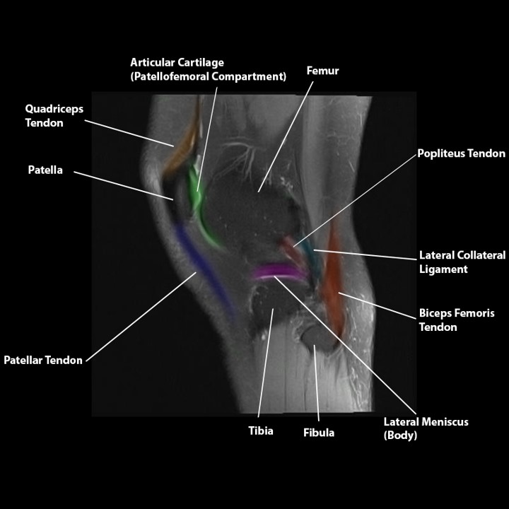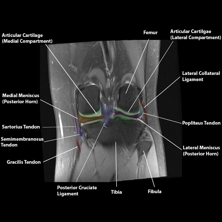 Labelled radiographs and CT/MRI series teaching anatomy with a level of detail appropriate for medical students and junior residents.
