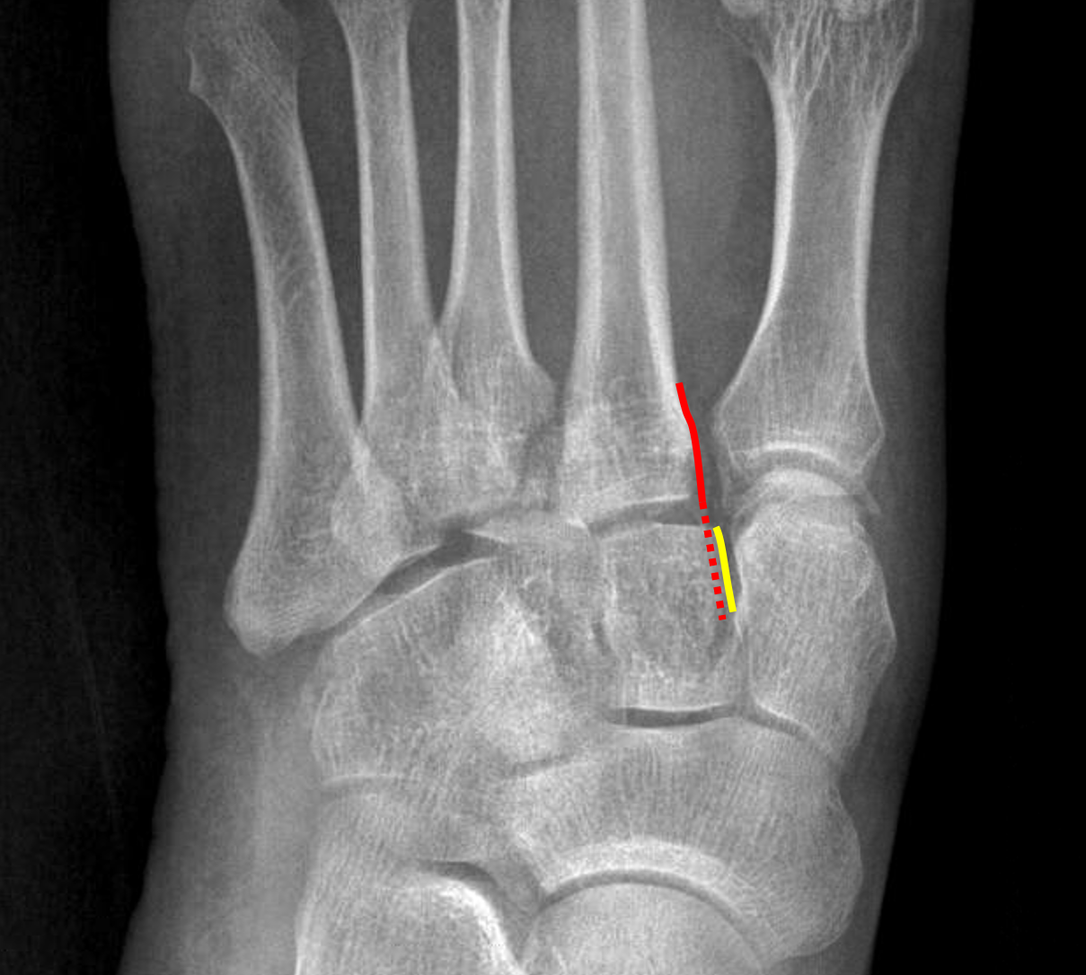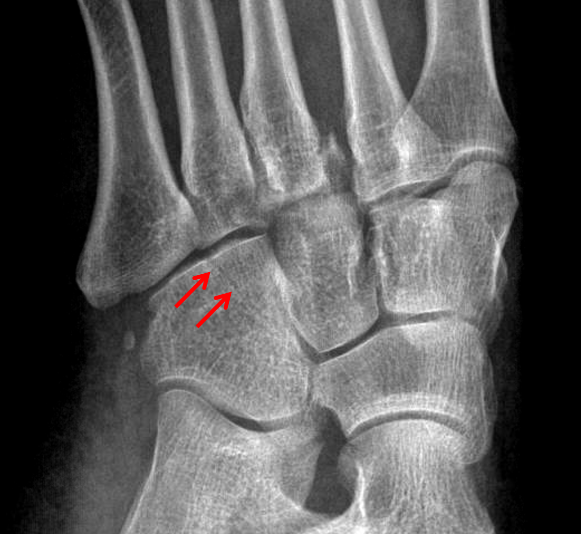 Sample ReportAcute homolateral Lisfranc injury with minimally displaced fractures of the first through fourth metatarsal bases, mild dorsal subluxation of the first tarsometatarsal (TMT) joint, and mild lateral subluxation of the second through fourth TMT joints.
