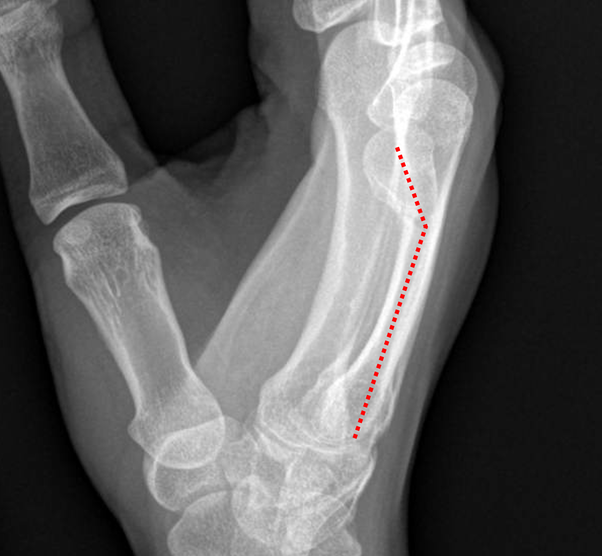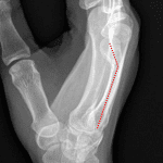 Sample ReportAcute fifth metacarpal neck fracture with volar tilt (Boxer’s fracture). Overlying soft tissue swelling.