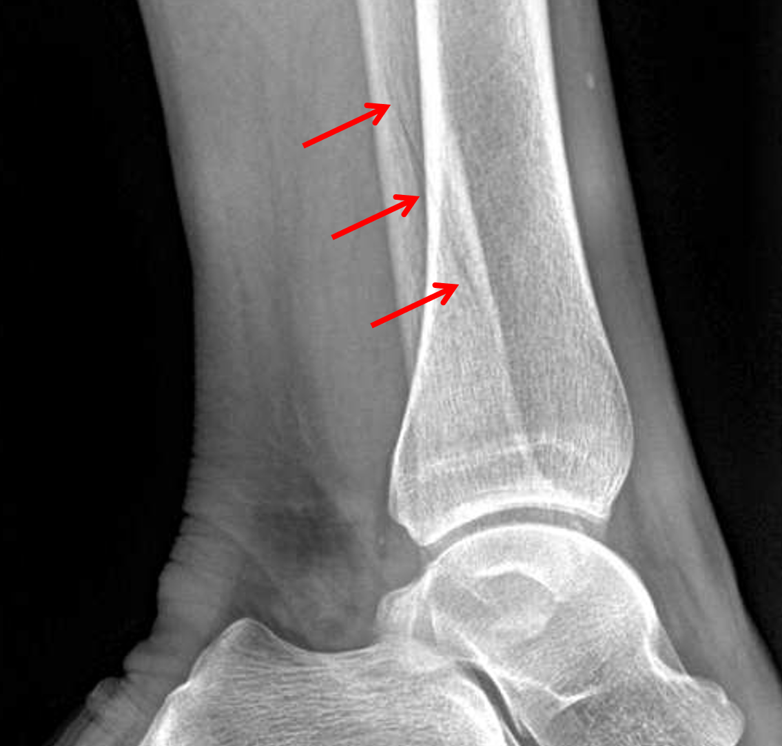 Sample ReportAcute nondisplaced oblique distal fibular diaphyseal fracture (Weber C).