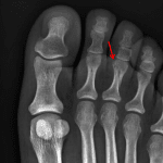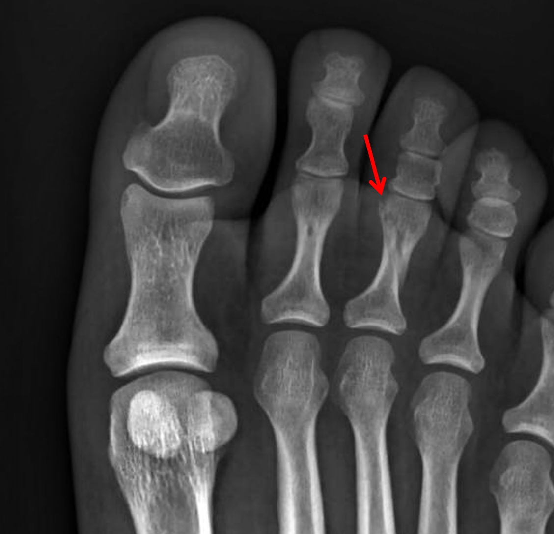 Remote healed fifth metatarsal shaft fracture.