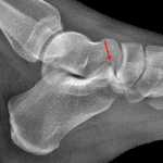 • Acute mildly displaced fracture of the anterior process of the calcaneus