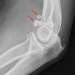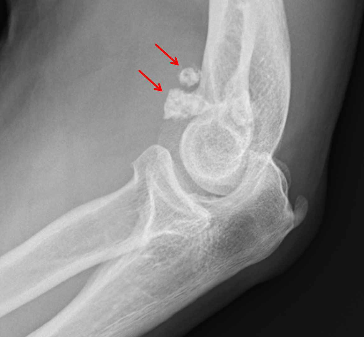 Mild degenerative changes of the ulnohumeral joint.