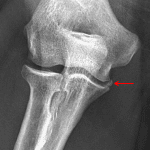 Sample ReportAge-indeterminate minimally displaced fracture of the sublime tubercle of the ulna.