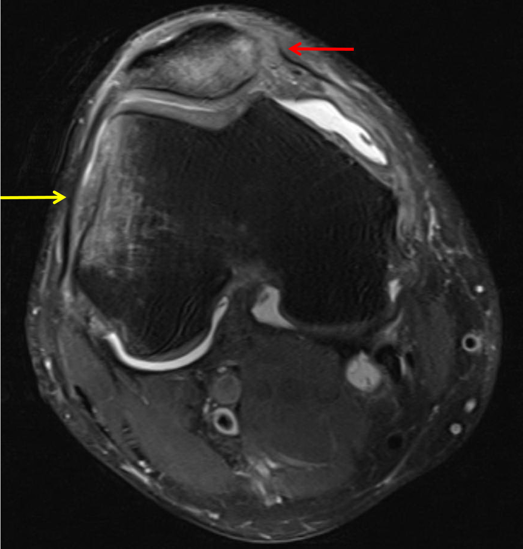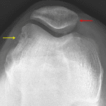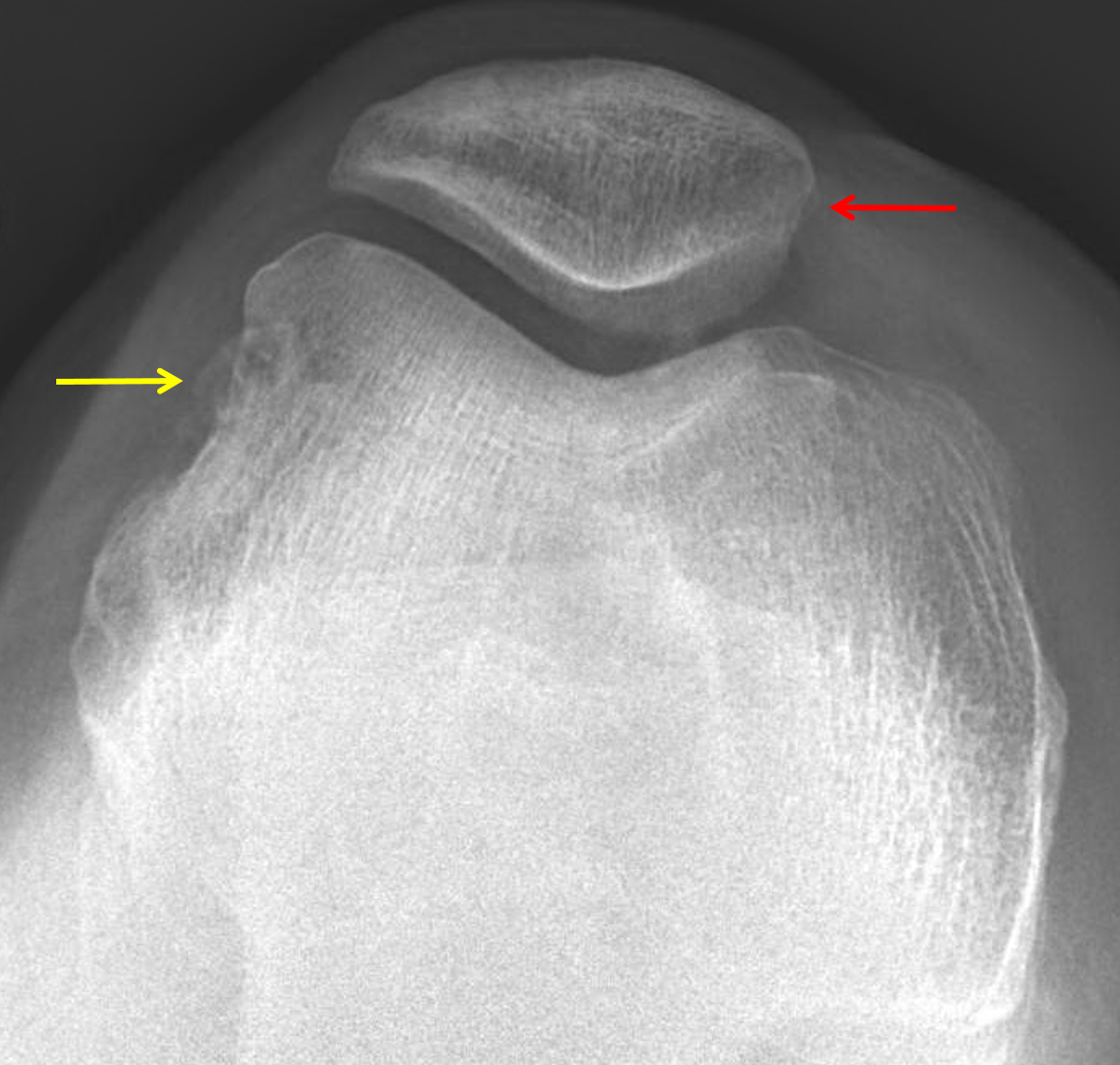 Sample ReportCortical irregularity along the medial margin of the patella and along the lateral margin of the lateral femoral condyle concerning for impaction fractures related to transient lateral patellar dislocation. An avulsion fracture from the medial patella is also a consideration.