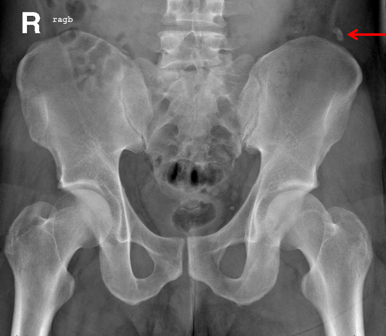 Sample ReportAge-indeterminate mildly displaced avulsion fracture from the left iliac crest measuring 1.4 cm.