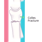 Sample ReportAcute transverse fracture of the distal radial metaphysis with extension into the radioulnar joint as well as 2 mm dorsal displacement and mild dorsal angulation. Surrounding soft tissue swelling.