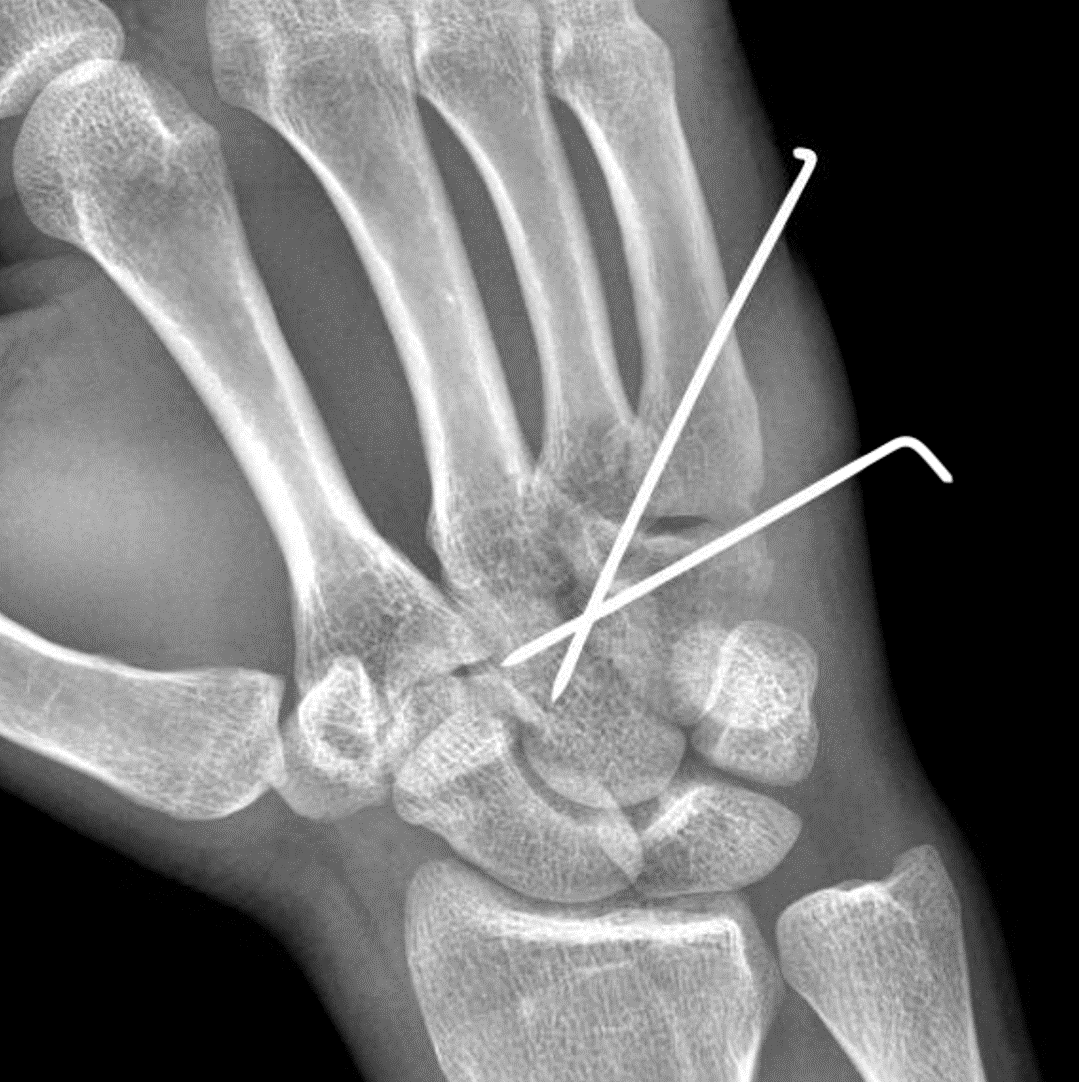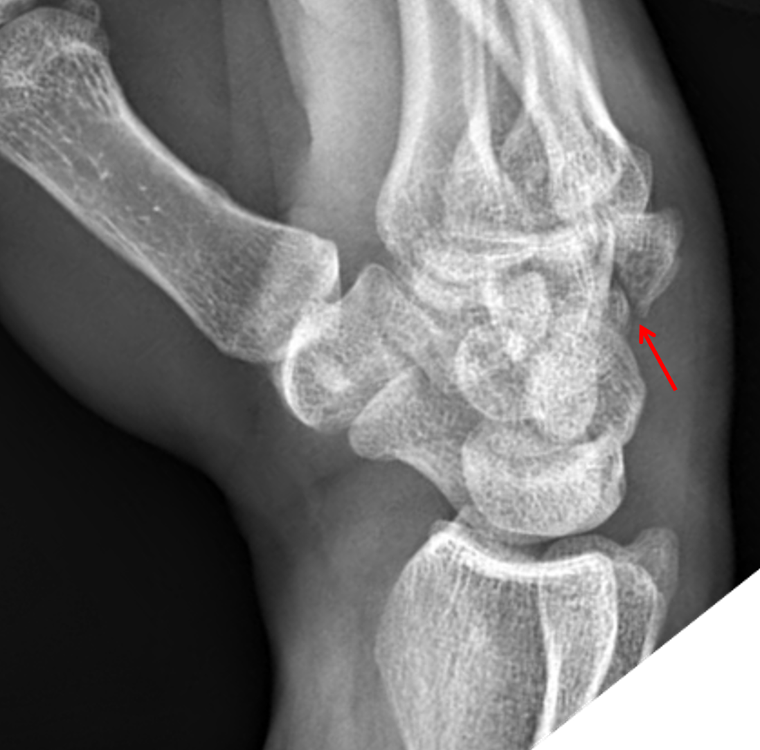 Sample ReportAcute fifth carpometacarpal (CMC) joint fracture/dislocation with an acute intraarticular fracture of the distal hamate with dorsal displacement and dorsal dislocation of the fifth metacarpal with the fracture fragment.