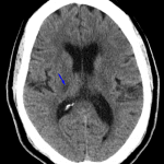 • Asymmetrically hyperdense appearance of the right internal carotid artery terminus and proximal right MCA