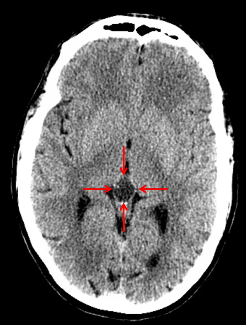 Peripherally calcified low density lesion in the pineal gland measuring x by x. Recommend nonemergent brain MRI with and without contrast for further evaluation.